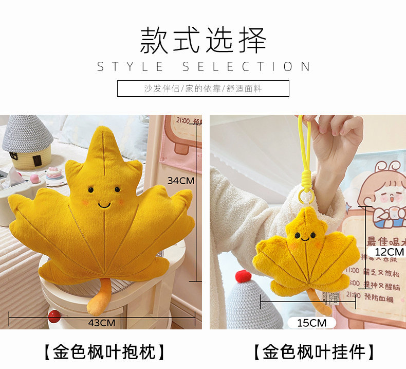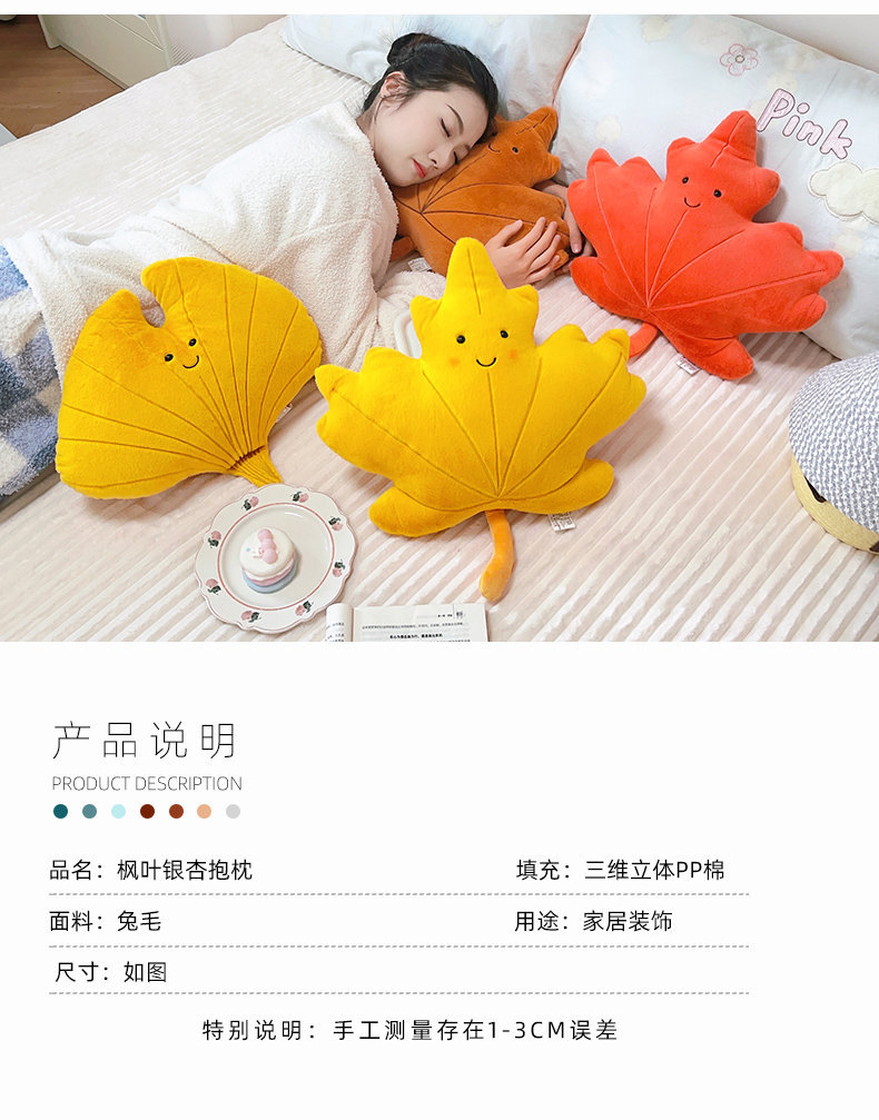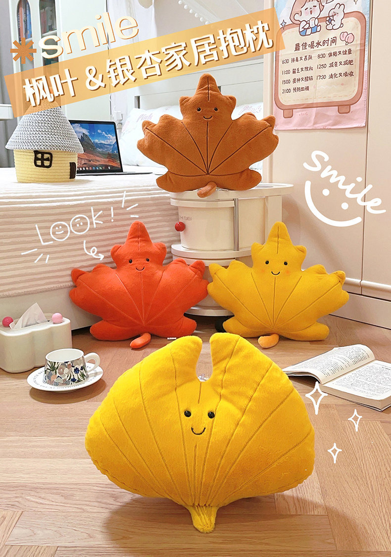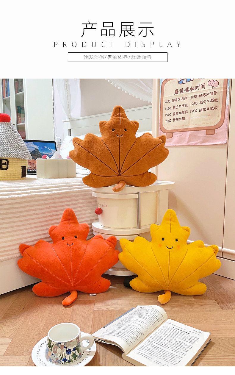 Cute caricatura ins viento hoja de arce almohada juguetes de peluche sofá cojín almohada colgante decoración de sofá doméstico