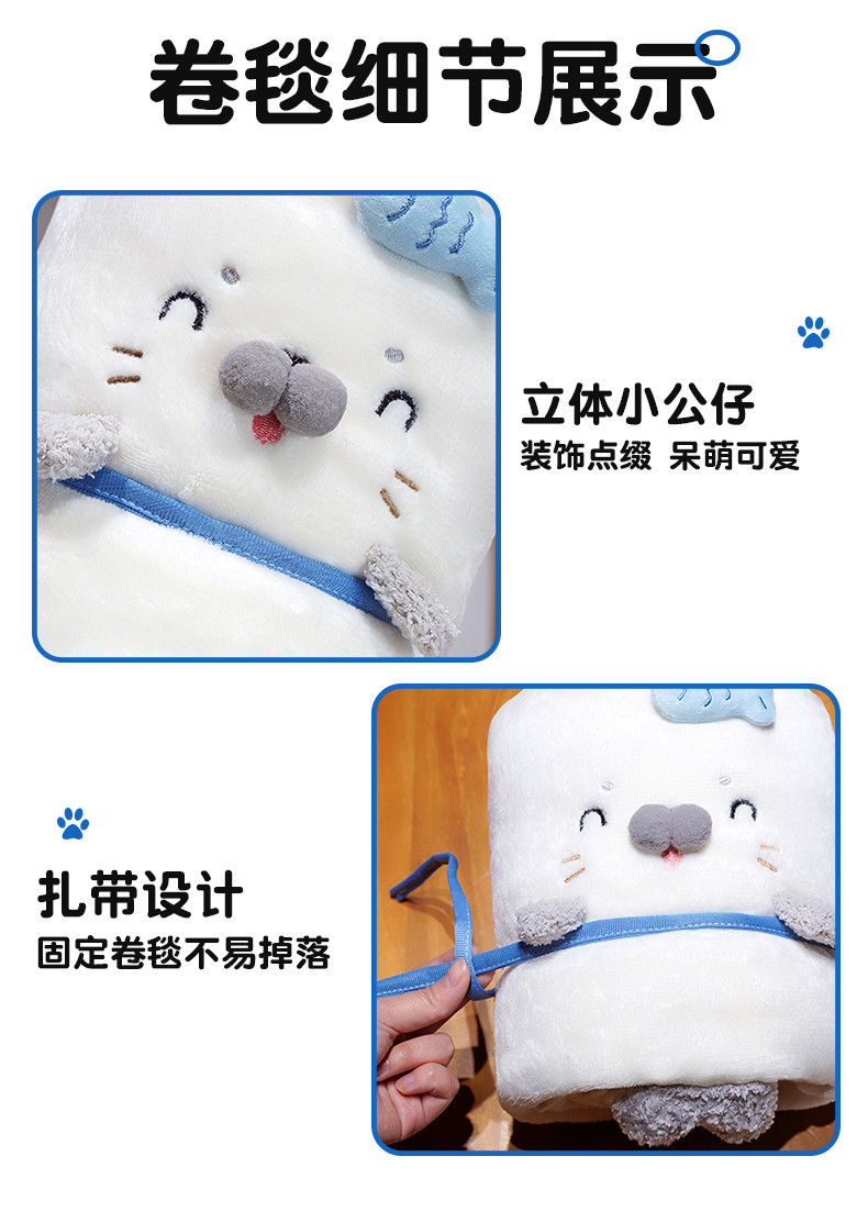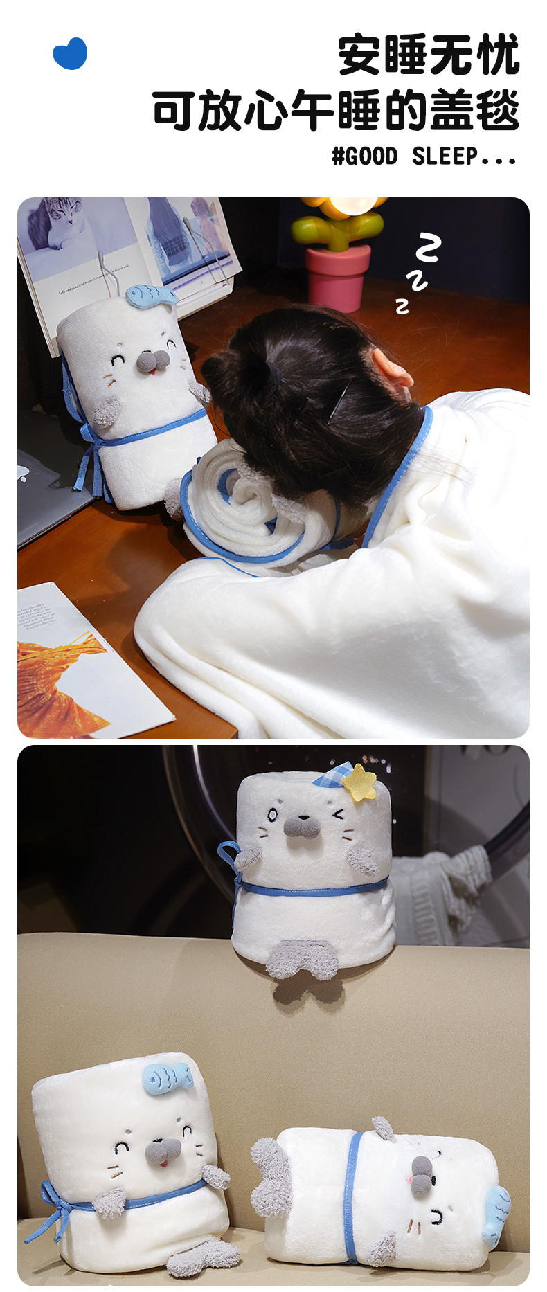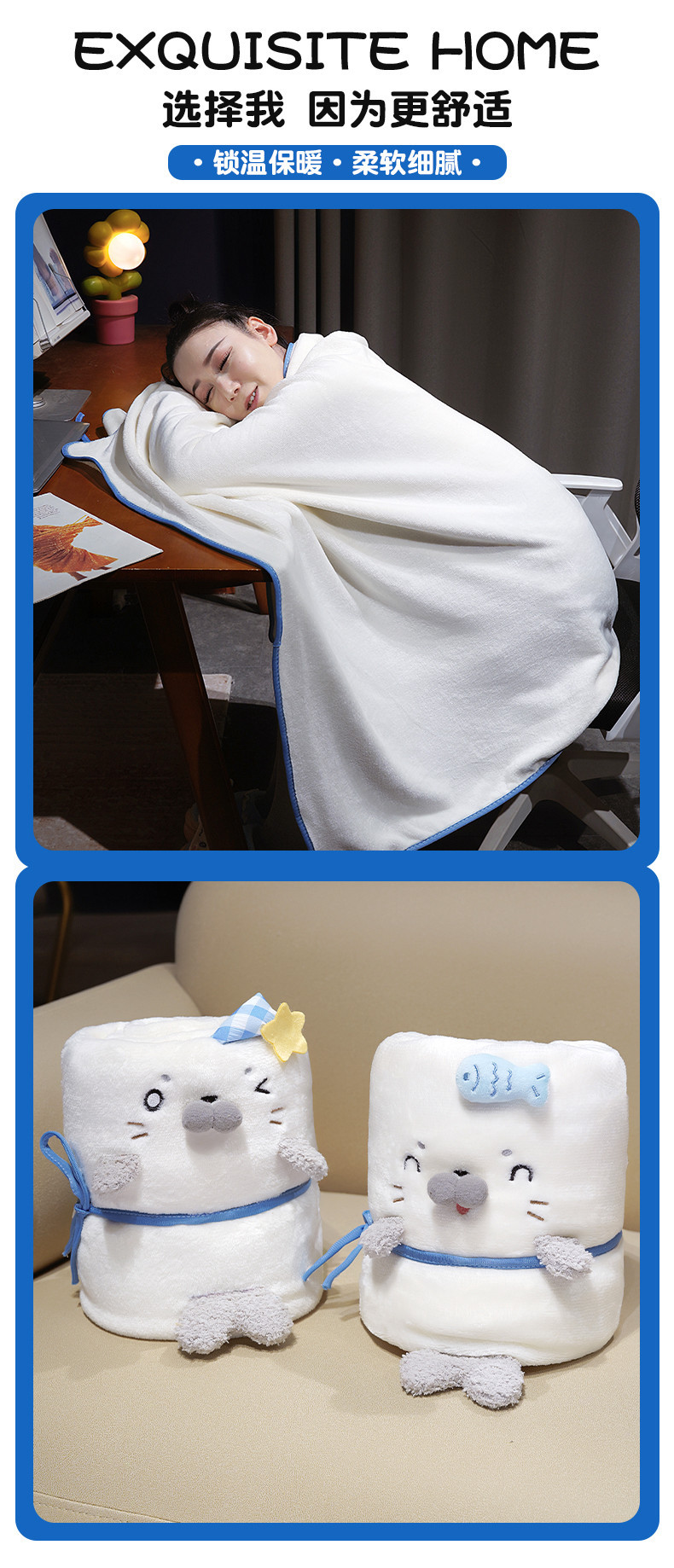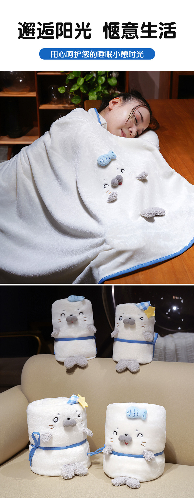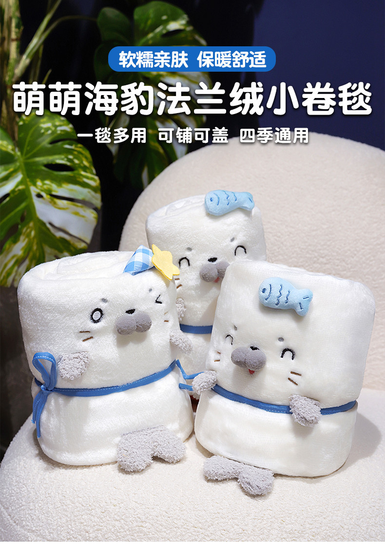 Caricatura encantadora foca alfombra de rollo de oficina almuerzo para dormir cubierta de piernas cubierta estudiantes siesta cubierta portátil cubierta de coche
