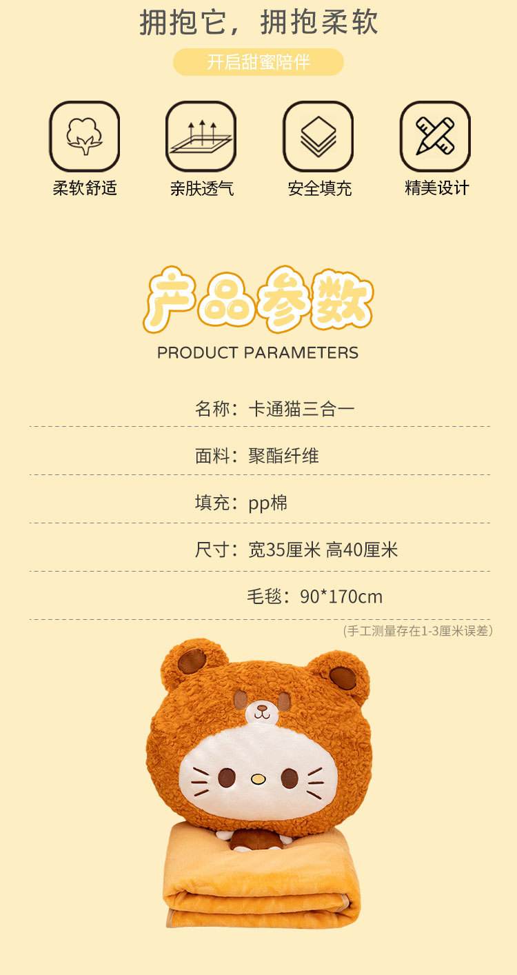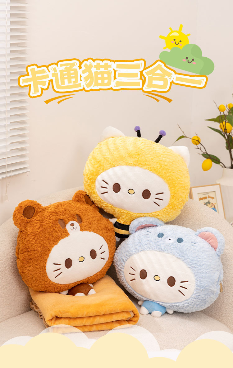Círculos animados gatos 3 - en - 1 almohada almohada de oficina almohada siesta almohada acostada para dormir almohada de coche invierno mano