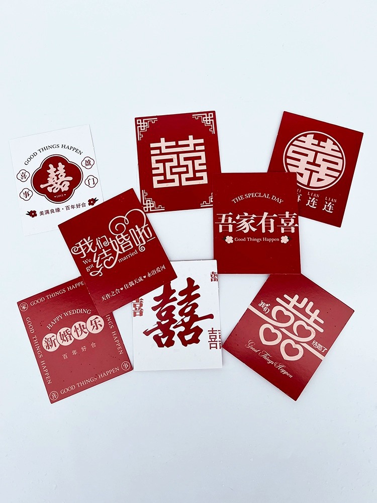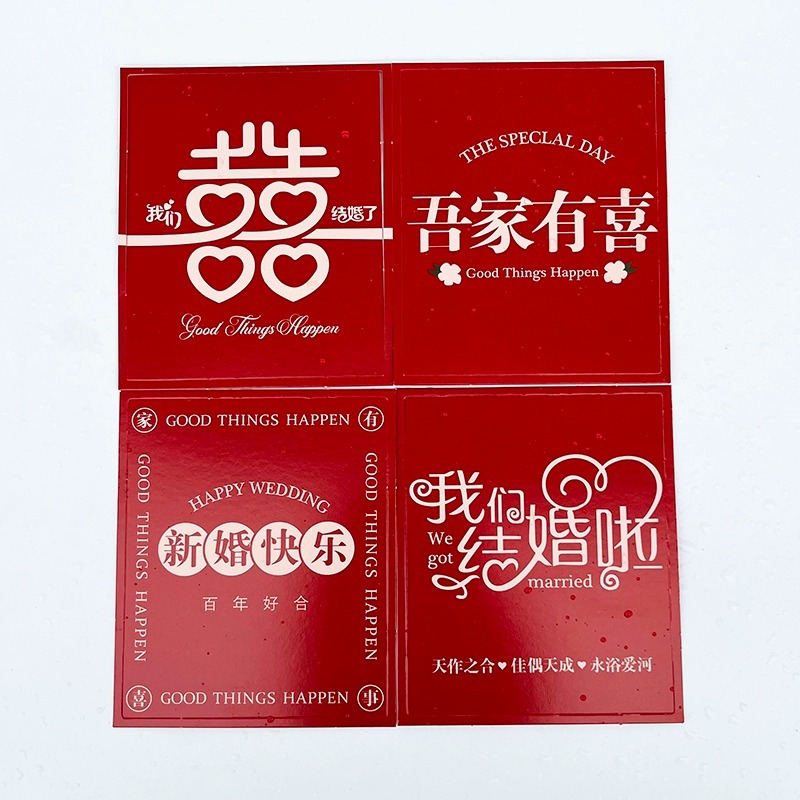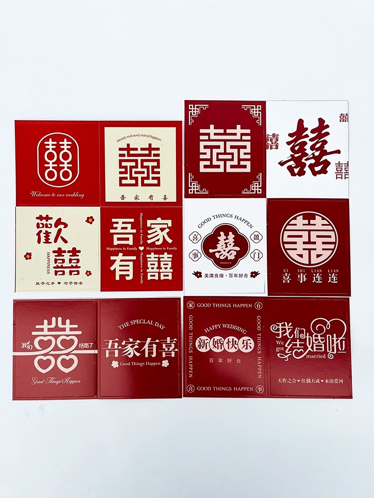| Especificaciones | 3 tarjetas de palabras Xi, cada paquete tiene 48 piezas en total,16 Xi tarjetas de carácter 8,5*8,5 [estamos casados],16 Xi tarjetas de palabras 8,5*8,5 [Mi familia es feliz],16 Xi tarjetas de carácter 8,5*8,5 [eventos felices] |