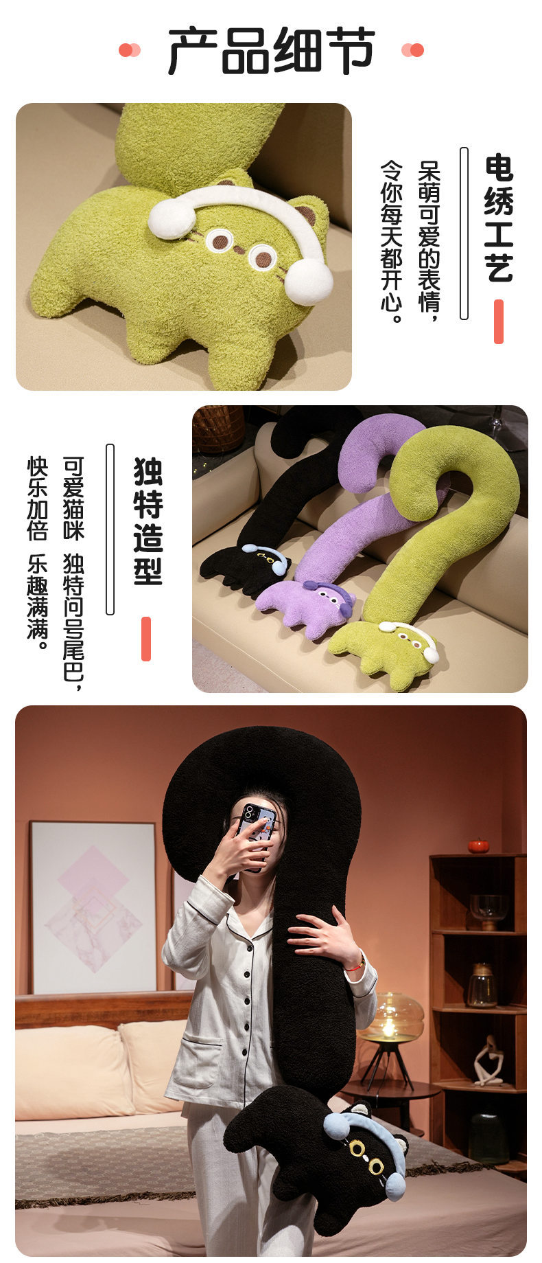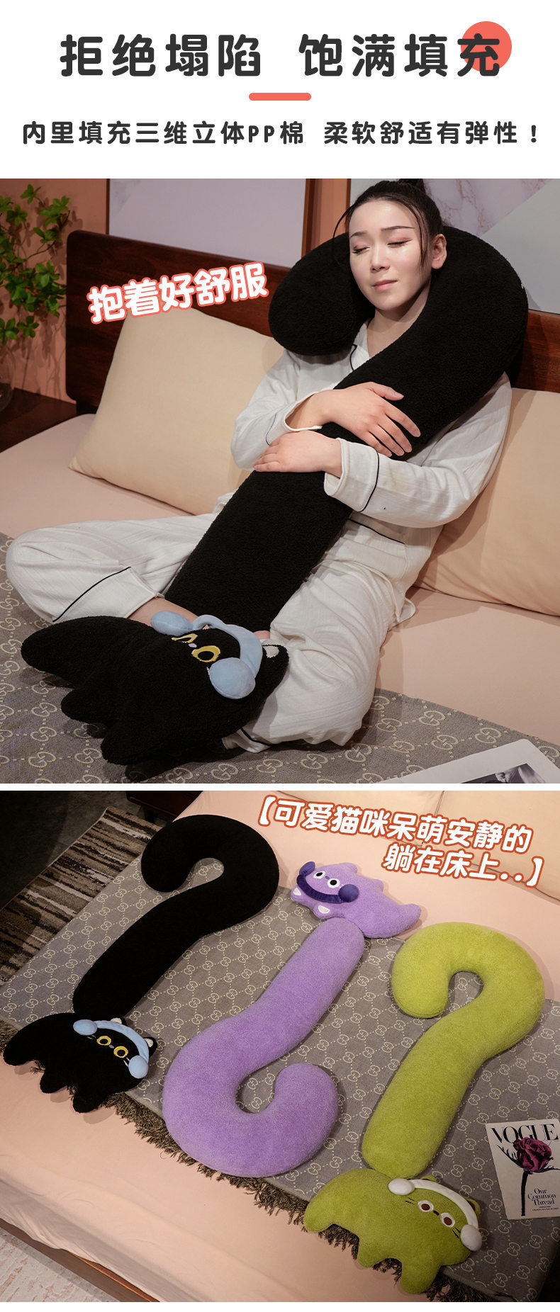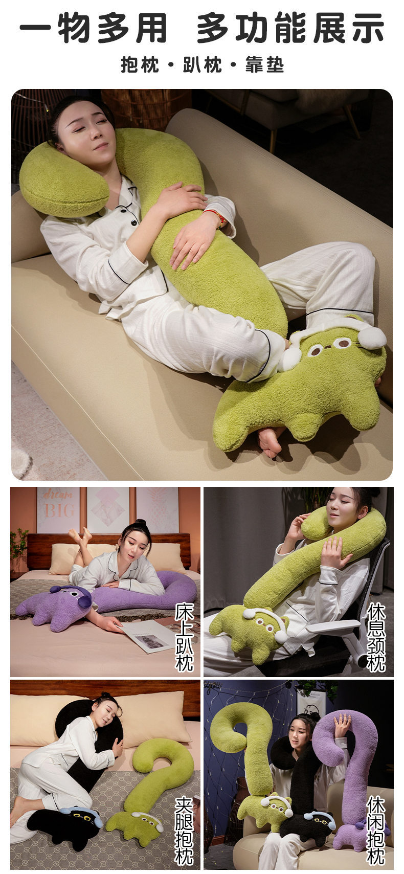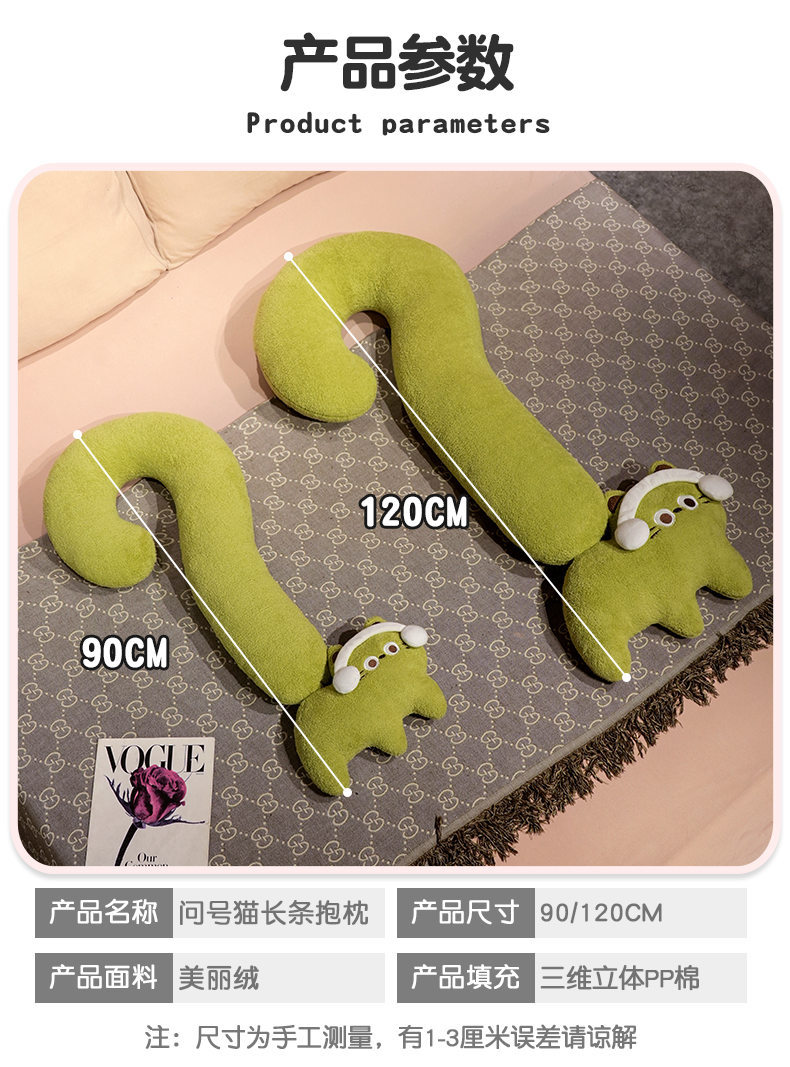 INS viento punto de interrogación felino almohada de brazo largo almohada de pierna almohada de dopamina almohada de cabecera nueva almohada de sueño fábrica directa