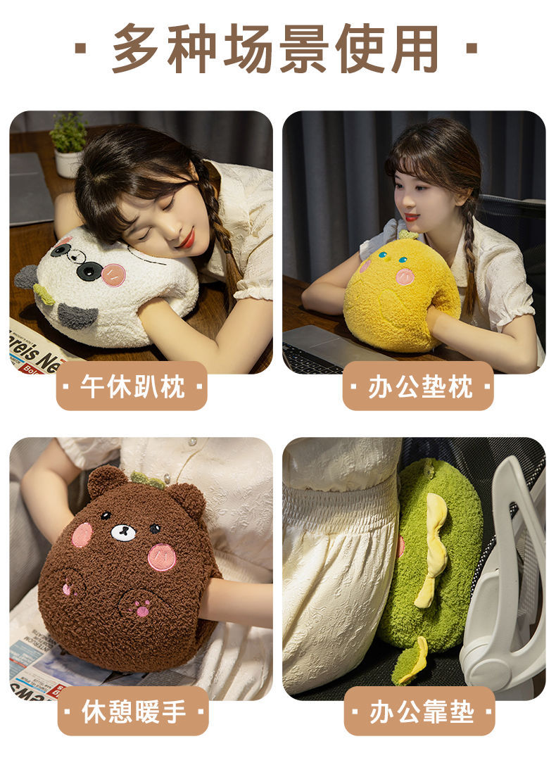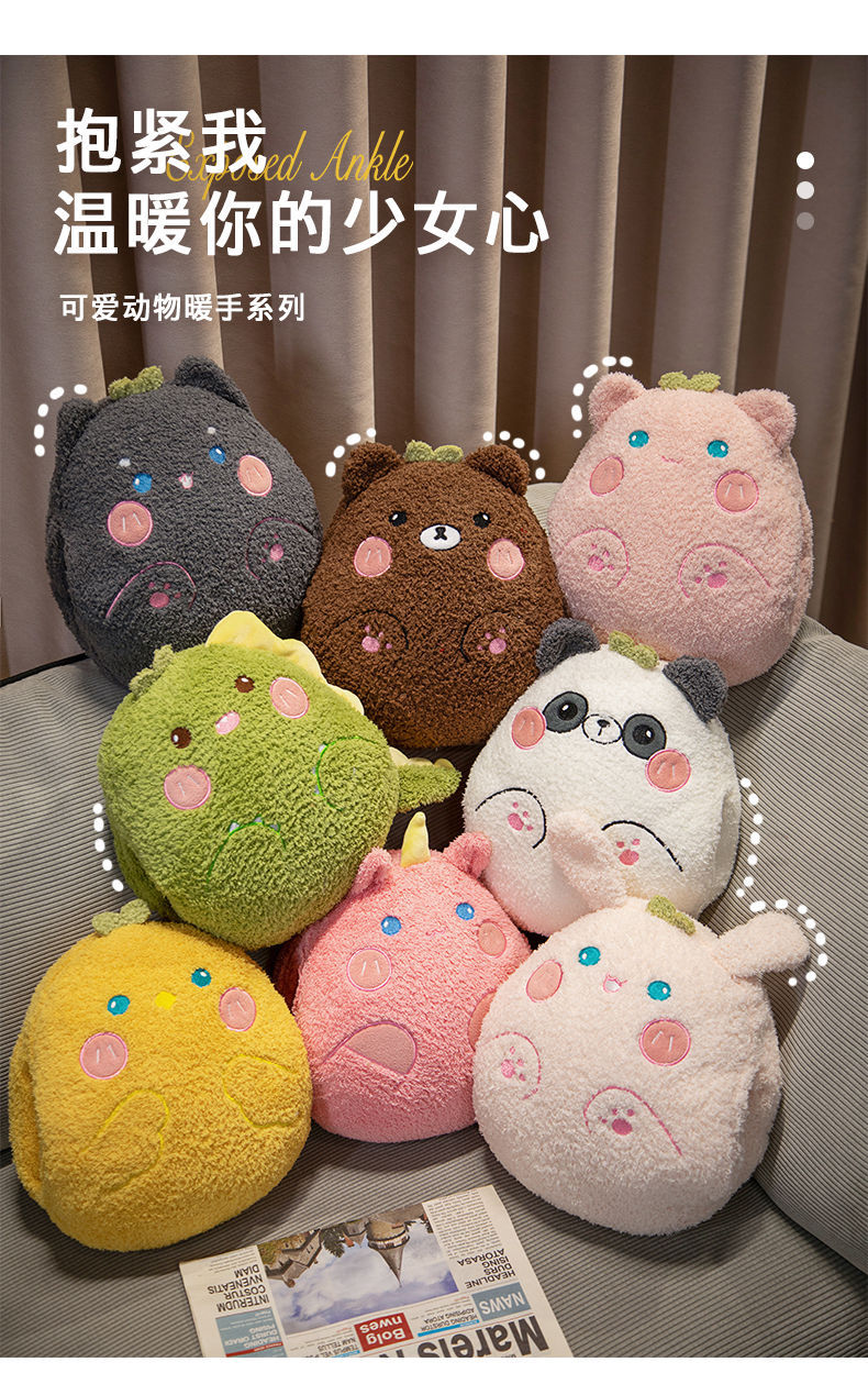 Animales de dibujos animados de invierno almohada de mano caliente juguetes de peluche invierno muñecas de mano caliente muñecas estudiantes cubierta de mano