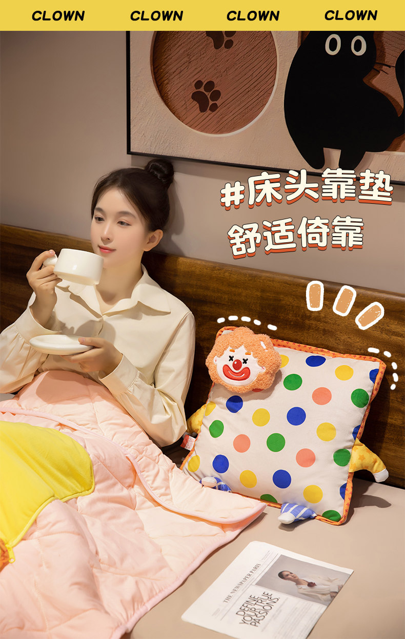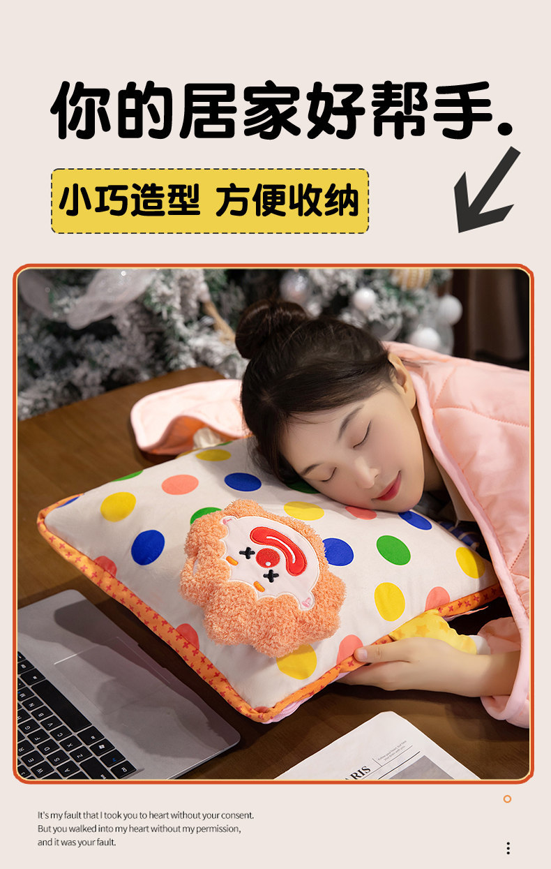 Caricatura de dibujos animados, cojín de aire acondicionado de dos en un sofá cojín de almuerzo en casa mantas almohada mayorista