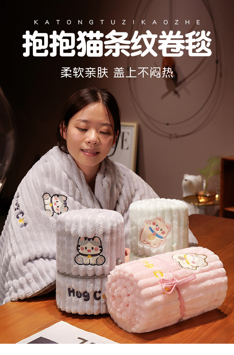 abrazar gatos estriados mantas de coral mantas de peluche correa de oficina portátil estudiantes de clase siesta mantas al por mayor