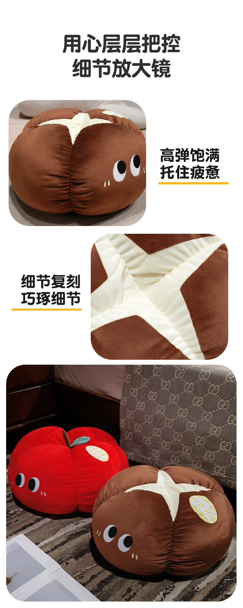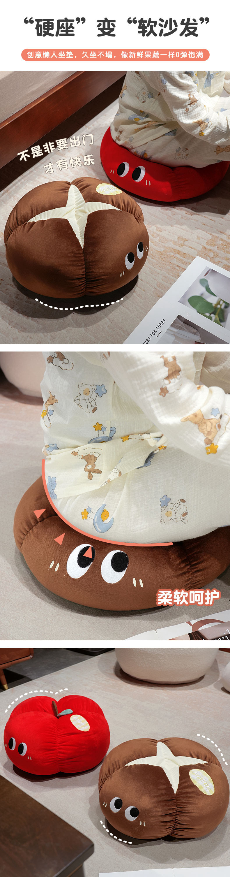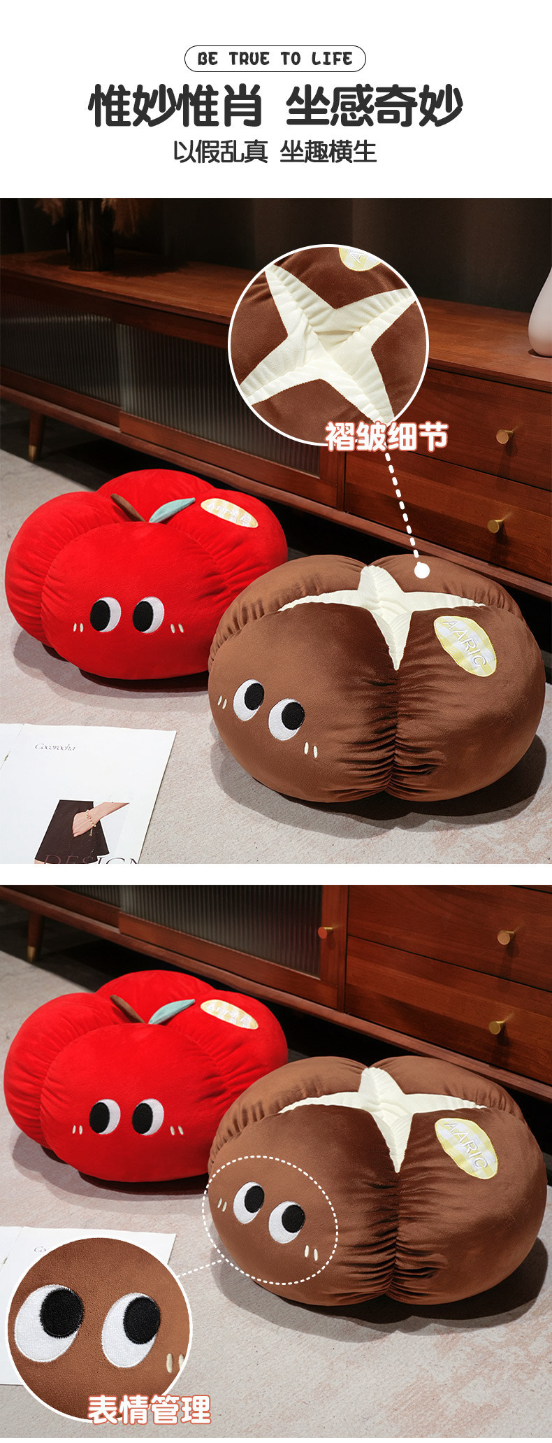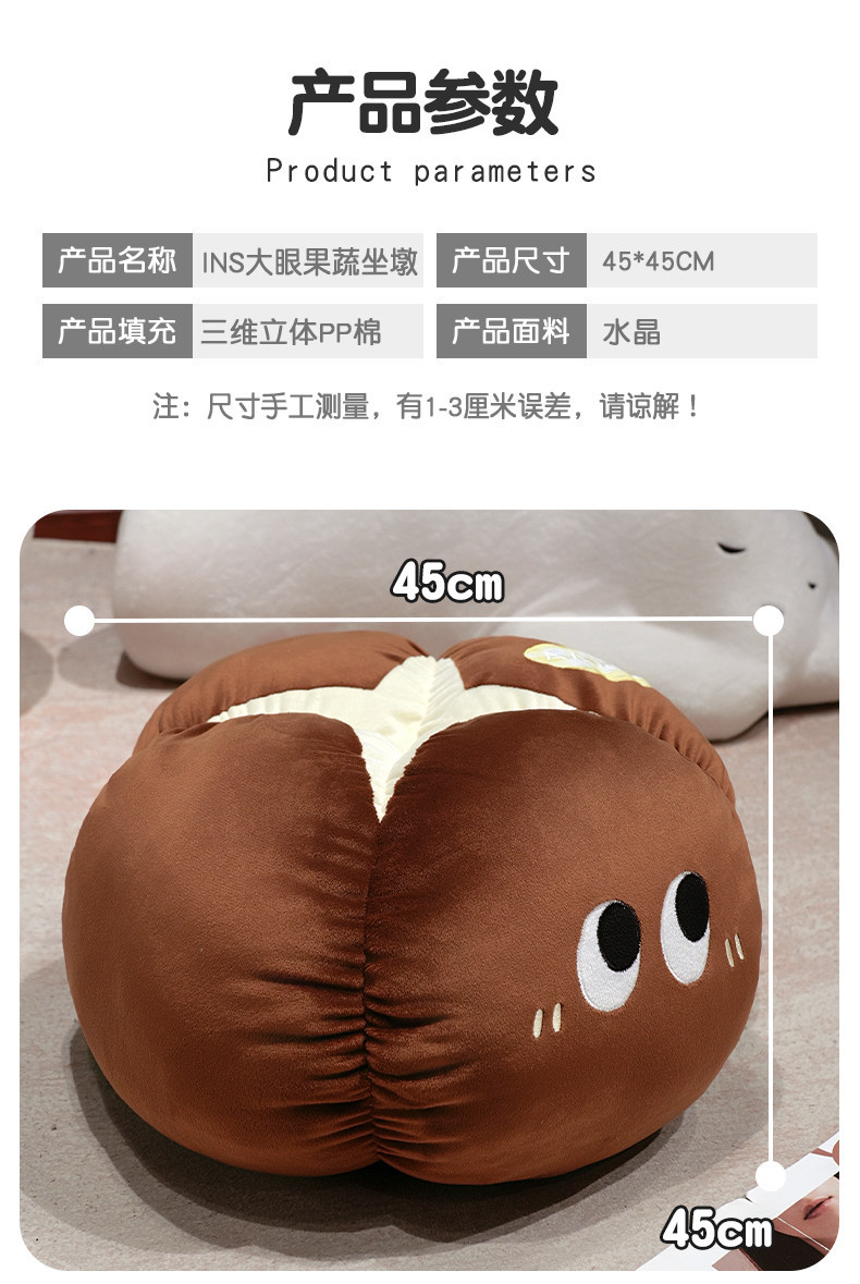 Manzana roja almohada almohada muñeca de peluche hongos de ojos grandes frutas y verduras en la cama en línea dormitorio rojo