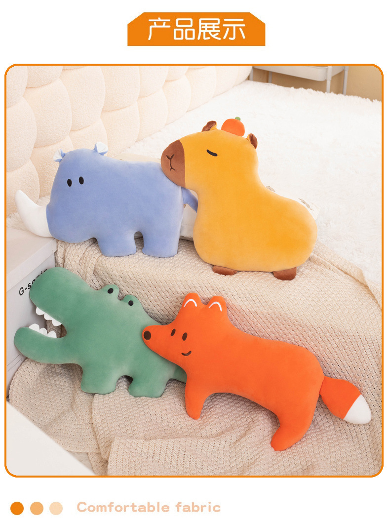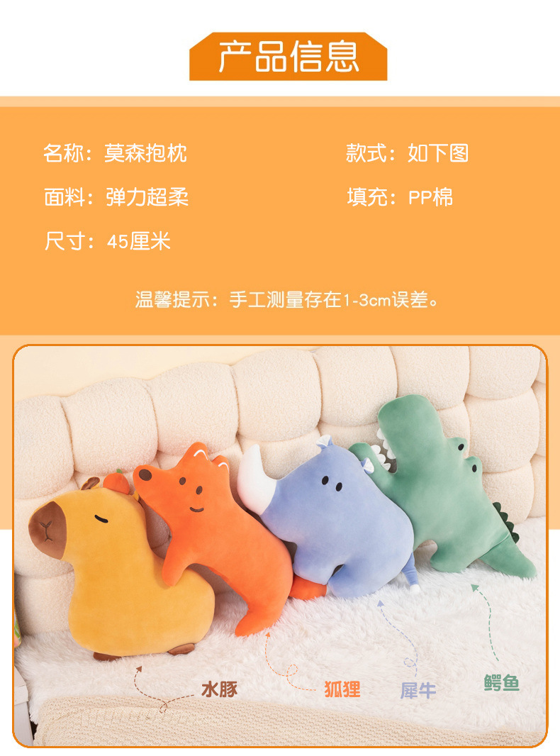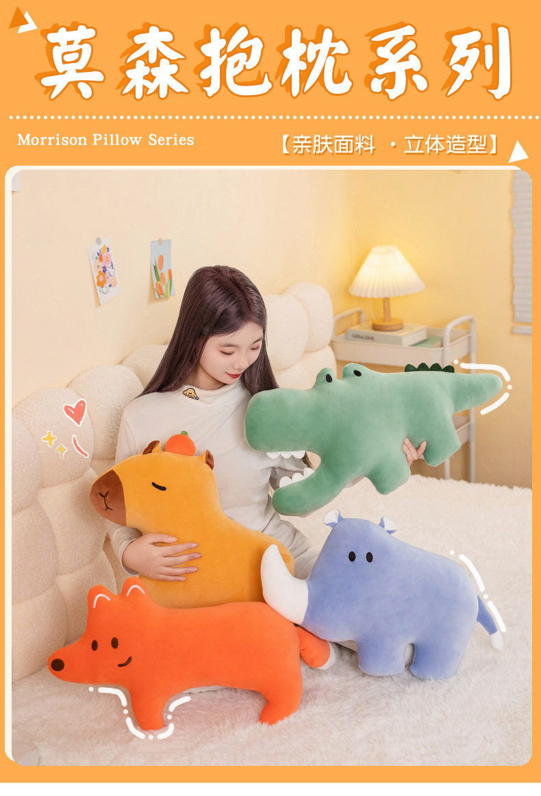 Dibujos animados Mohson almohada animal lindo rinoceronte cocodrilo zorro Kapibala muñeco de peluche sofá cojín de sala de estar