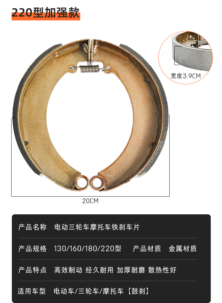 | Especificaciones del producto | 130 bloque de freno de hierro/1 pago (clásico),130 bloque de freno de hierro/1 pago (mejorado),160 bloque de freno de hierro/1 pago (mejorado),180 bloque de freno de hierro/1 pago (mejorado),220 bloque de freno de hierro/1 pago (mejorado) |