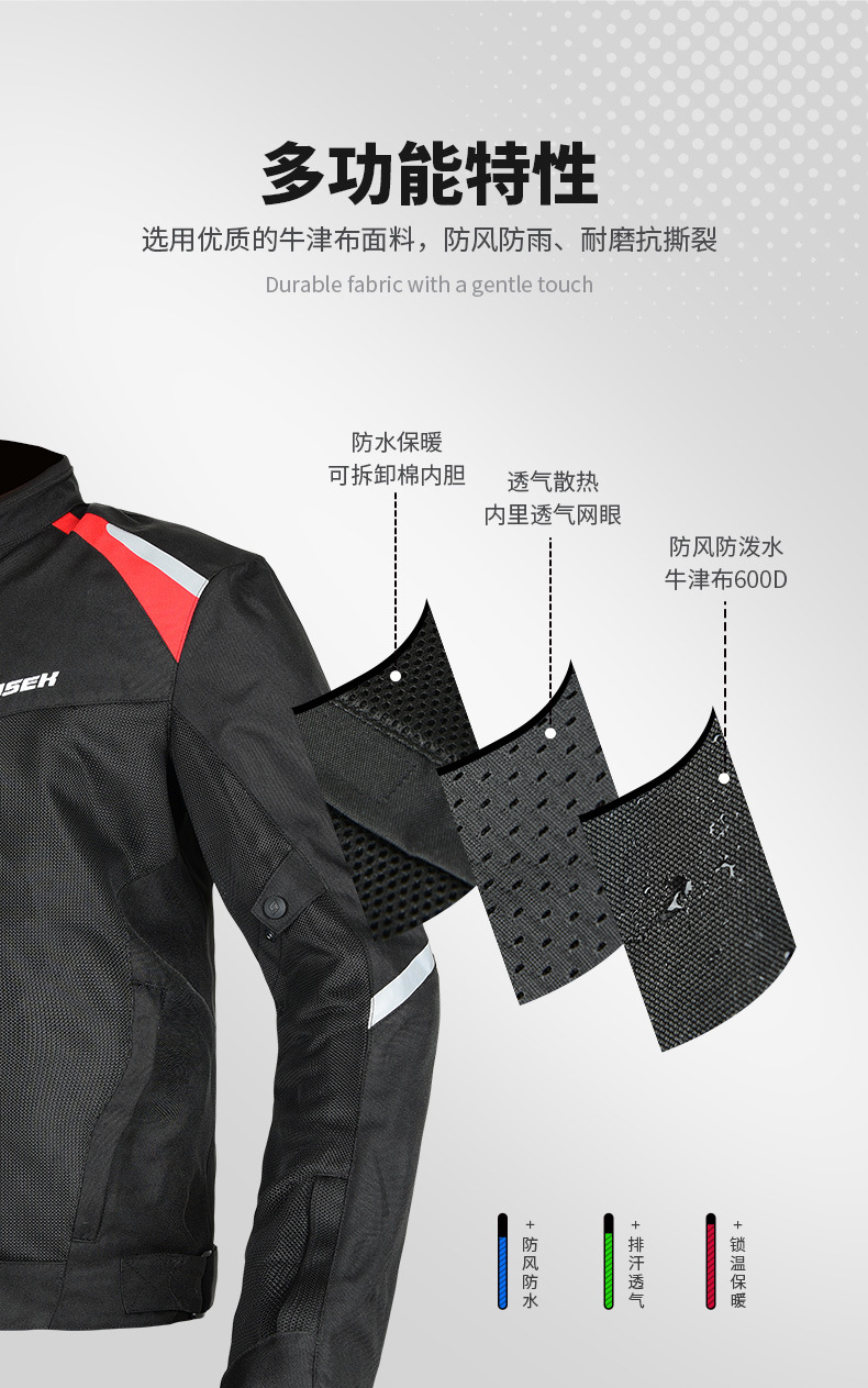 | Colores | Top negro y rojo (anti-caída y transpirable/equipo de protección CE2),Pantalones negros y rojos (anti-caída y transpirable/equipo de protección CE2) |