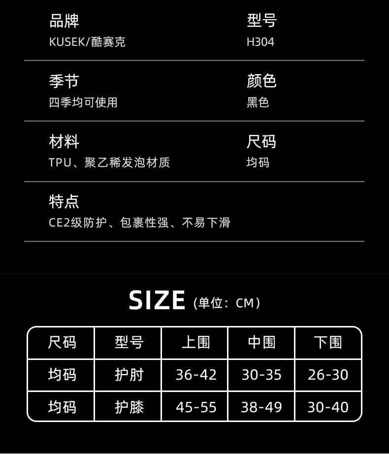 | Color | Rodillas negras (certificación CE2 larga / ancho contra caídas laterales), codo negro (certificación CE2 larga / ancho contra caídas laterales), rodillas y codo conjunto de cuatro piezas (certificación CE2 larga / ancho contra caídas laterales), bloque de calentamiento de invierno H304 |
