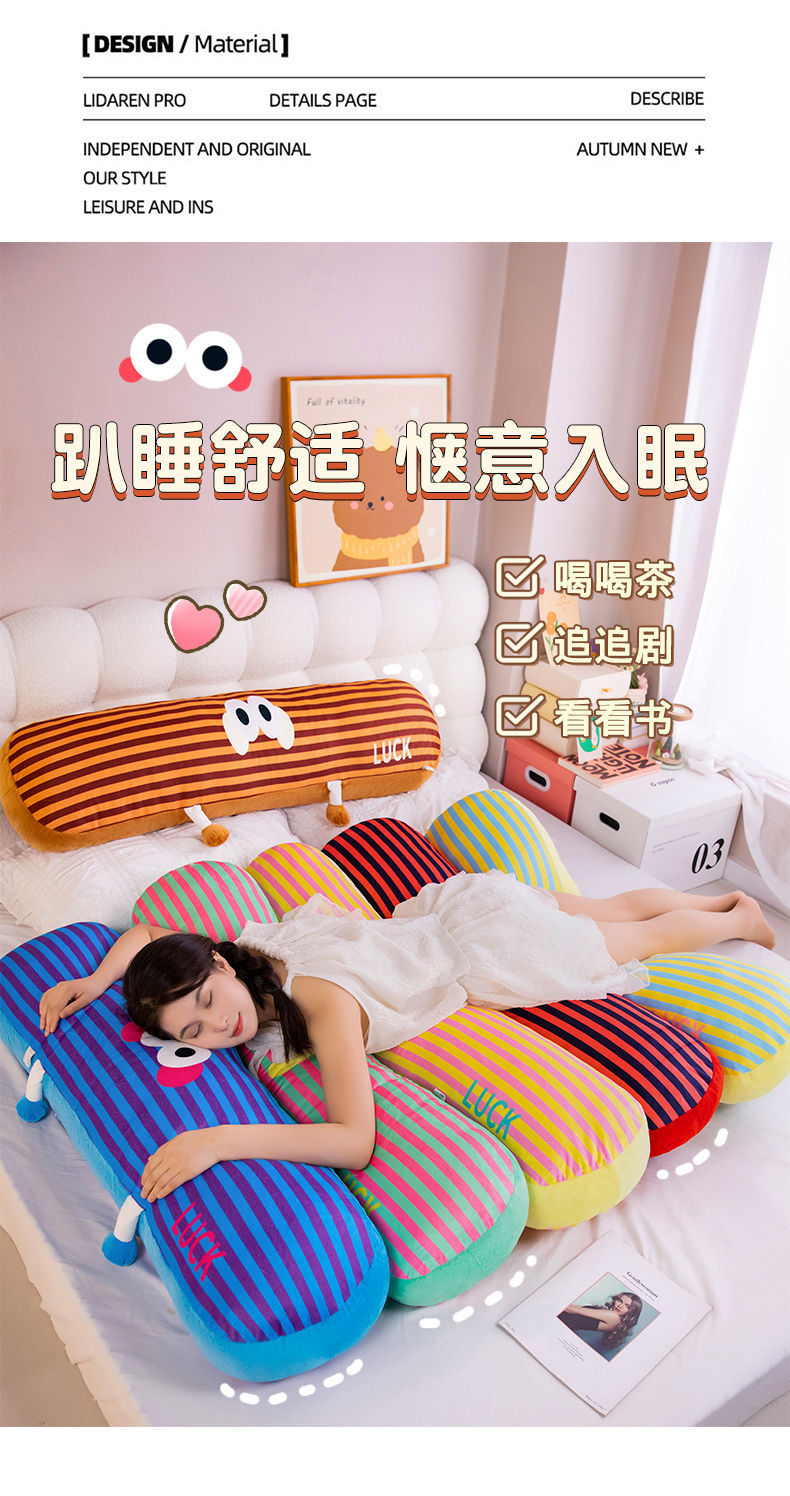 almohada de abrazo larga de alto valor facial rayas de dopamina súper lindas niñas dormir sofá sala de estar cumpleaños almohada de cabeza peluche