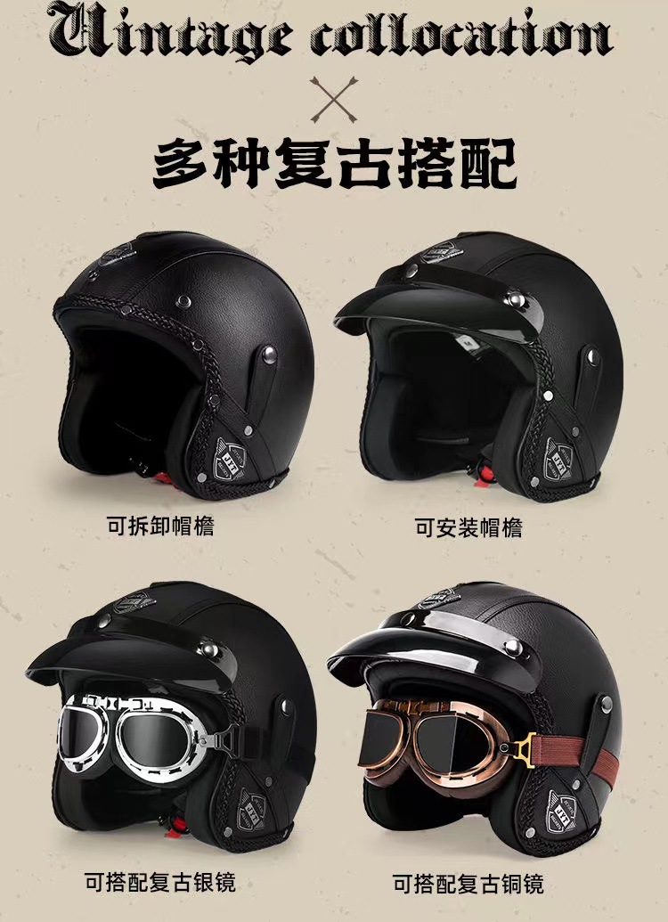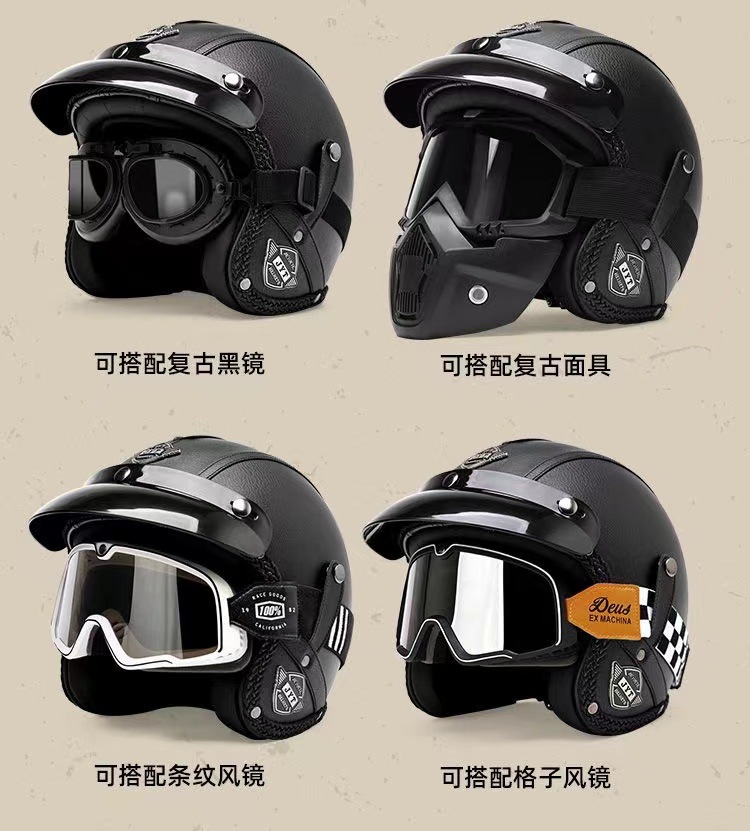 [Personalización] Casco retro transfronterizo personalizado casco de motocicleta de crucero casco de coche eléctrico cuatro estaciones unisex