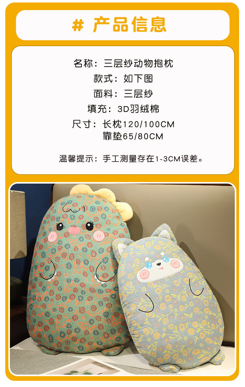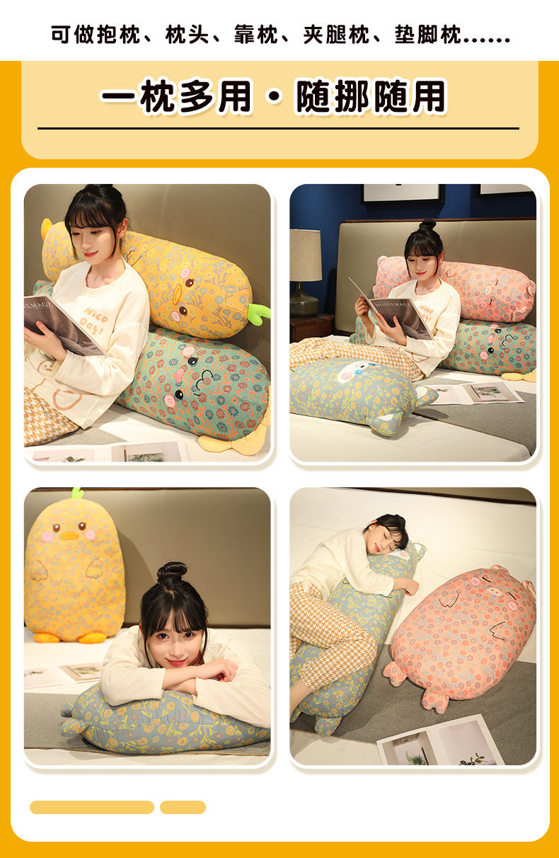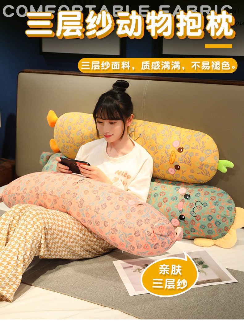 Tres camadas de hilos almohada de animales almohada larga almohada de niñas almohada de pierna lateral almohada dormitorio almohada de cama grande almohada de cabecera
