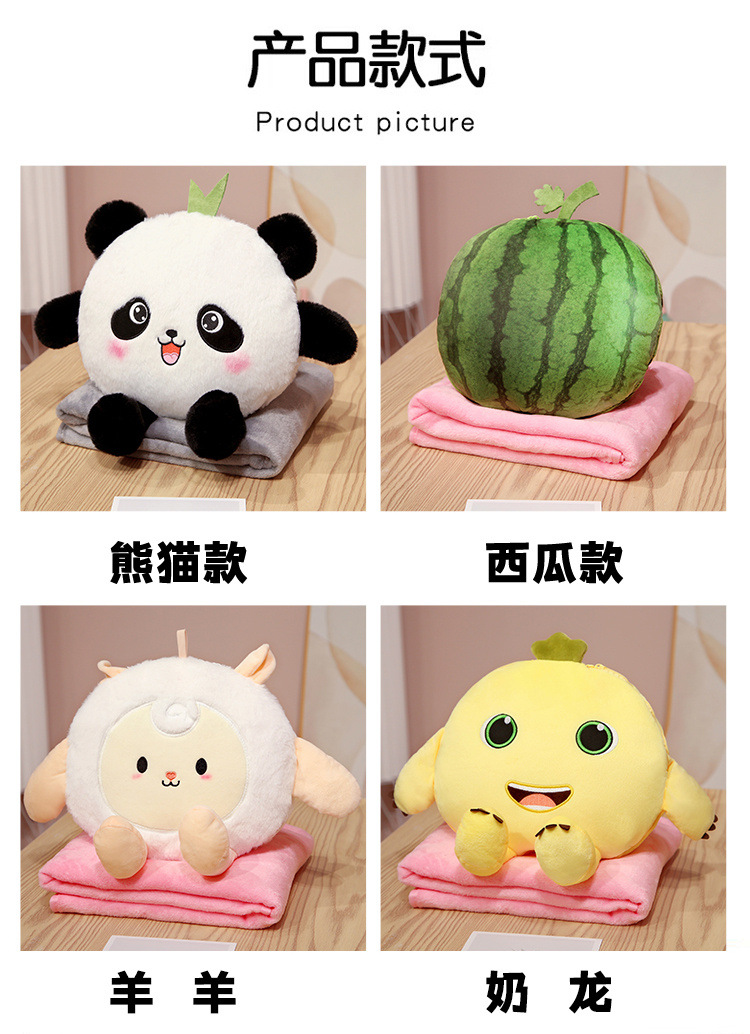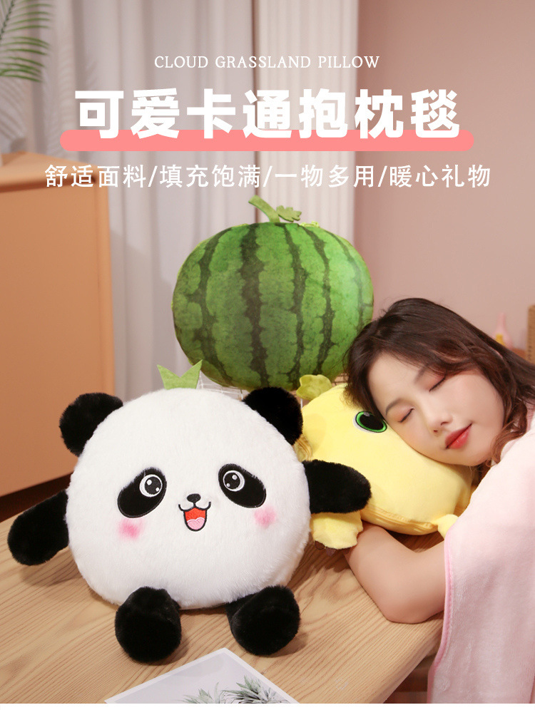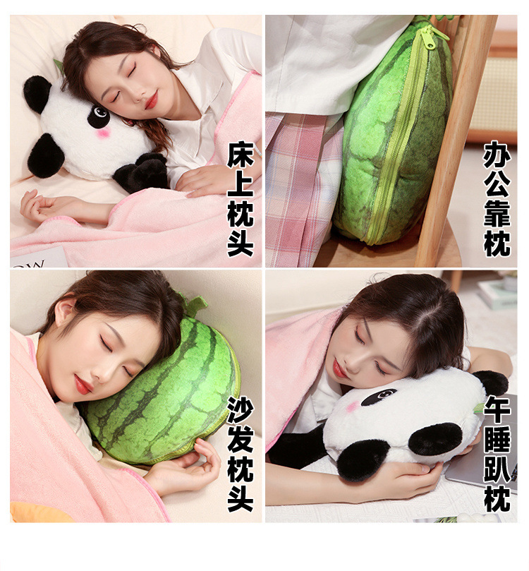 Sofá de Panda lindo edredón de almohada ajustable de doble uso dos en uno cojín de sandía almohada siesta de oficina Manta