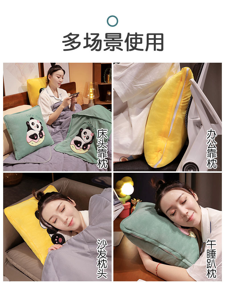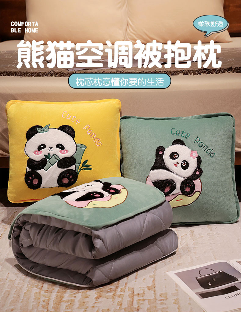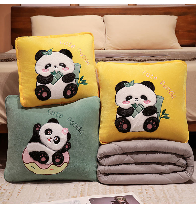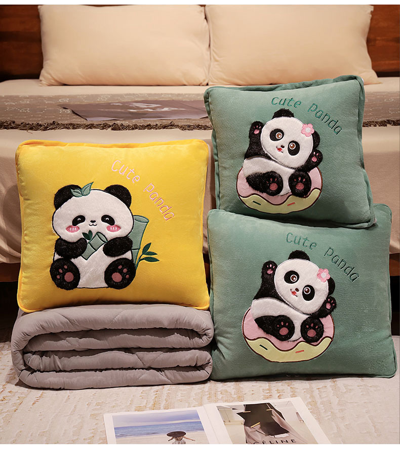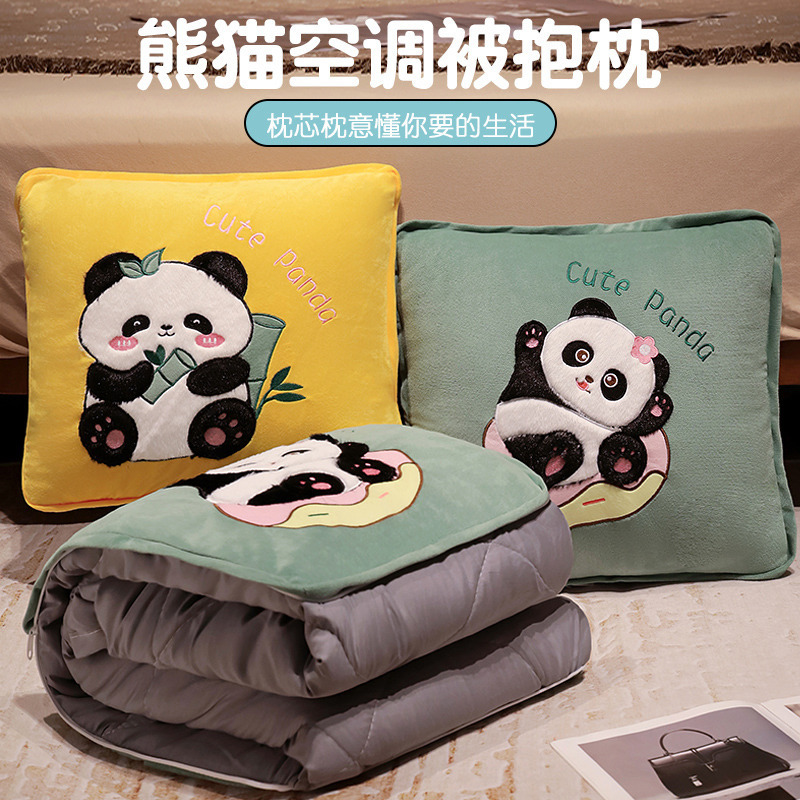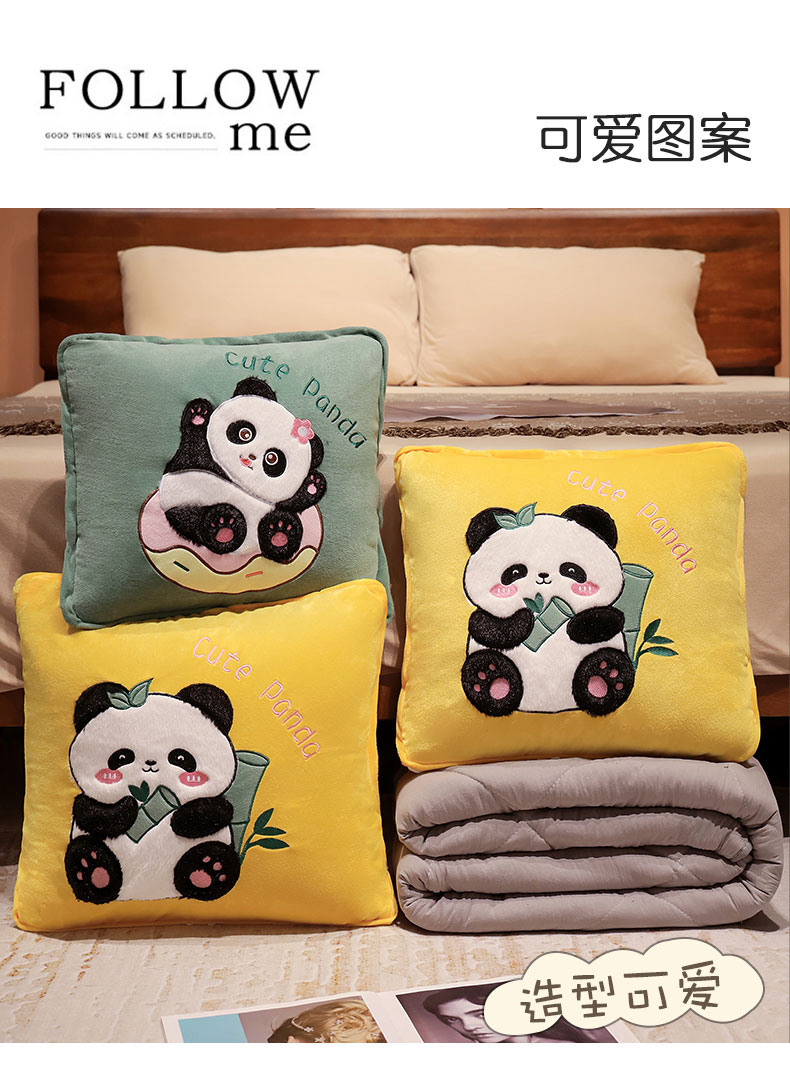 Panda almohada edredón Oficina de doble uso engrosada siesta plegable de aire acondicionado manta de dos en uno almohada de coche