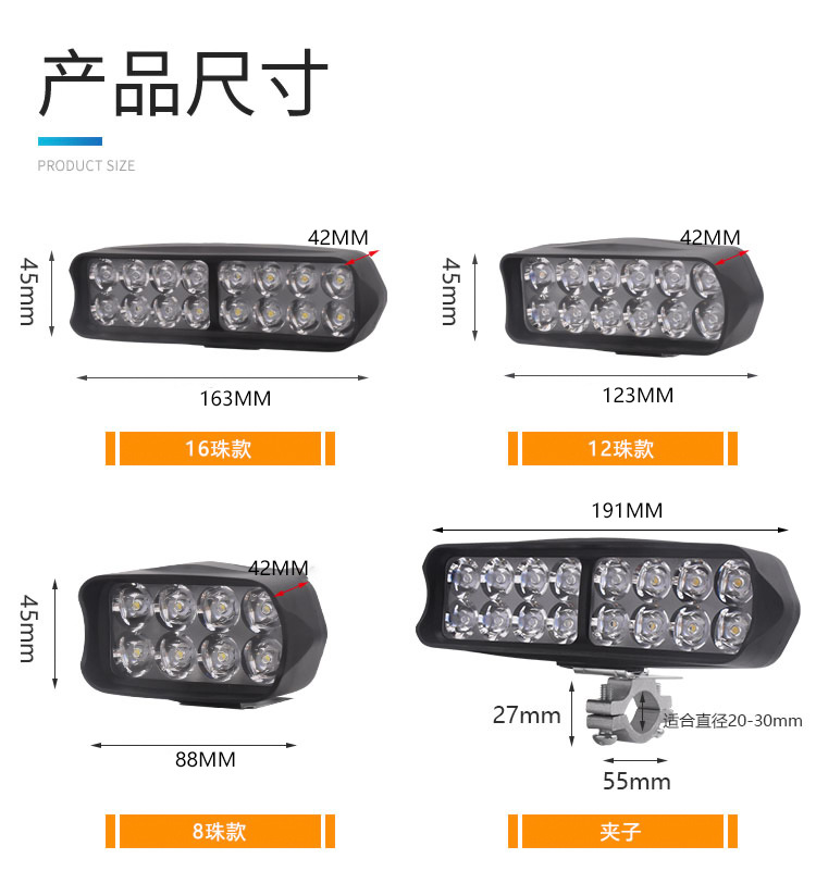 | Especificaciones de embalaje | Lente 8 perlas de luz + tornillo, lente 8 perlas de luz + tornillo + abrazadera de tubo, lente 8 perlas de luz + tornillo + abrazadera de tubo + interruptor + línea de extensión de 2 metros, lente 12 perlas de luz + tornillo, lente 12 perlas de luz + tornillo + abrazadera de tubo, lente 12 perlas de luz + tornillo + abrazadera de tubo + interruptor + línea de extensión de 2 metros, lente 16 perlas de luz + tornillo + abrazadera de tubo, lente 16 perlas de luz + tornillo + abrazadera de tubo + interruptor + línea de extensión de 2 metros, Lente de 30 perlas + tornillo, lente de 30 perlas + tornillo + clip de tubo, lente de 30 perlas + tornillo + clip de tubo + interruptor + cable de extensión de 2 metros |