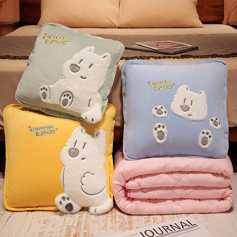 Panda almohada edredón Oficina de doble uso engrosada siesta plegable de aire acondicionado manta de dos en uno almohada de coche
