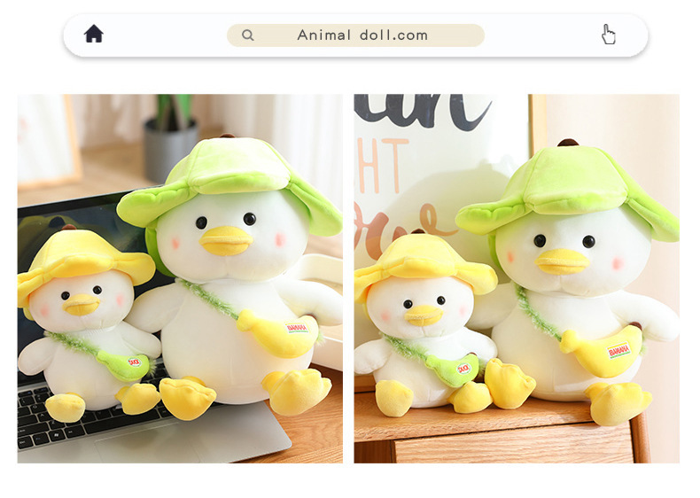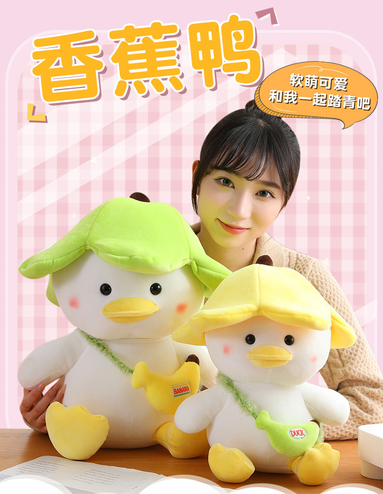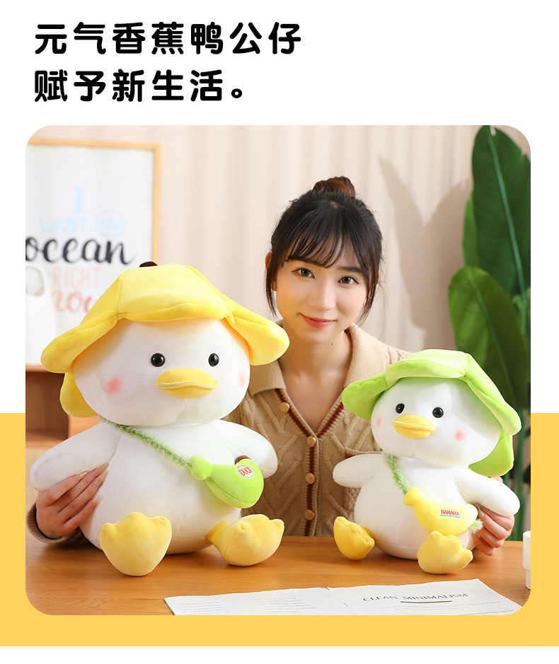 Pequeño pato muñeca peluche juguete plátano pato trapo muñeca niños dormir almohada regalo de cumpleaños para las niñas