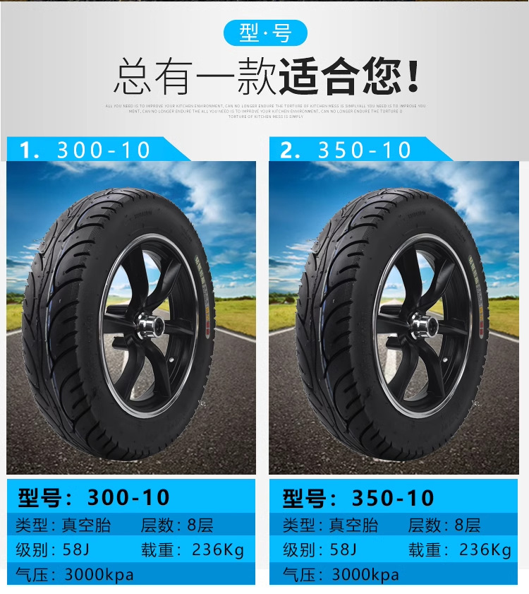 Venta directa de fábrica de vehículos eléctricos neumáticos de vacío scooter neumáticos de 6 capas 300-10/3.50-10 accesorios para neumáticos
