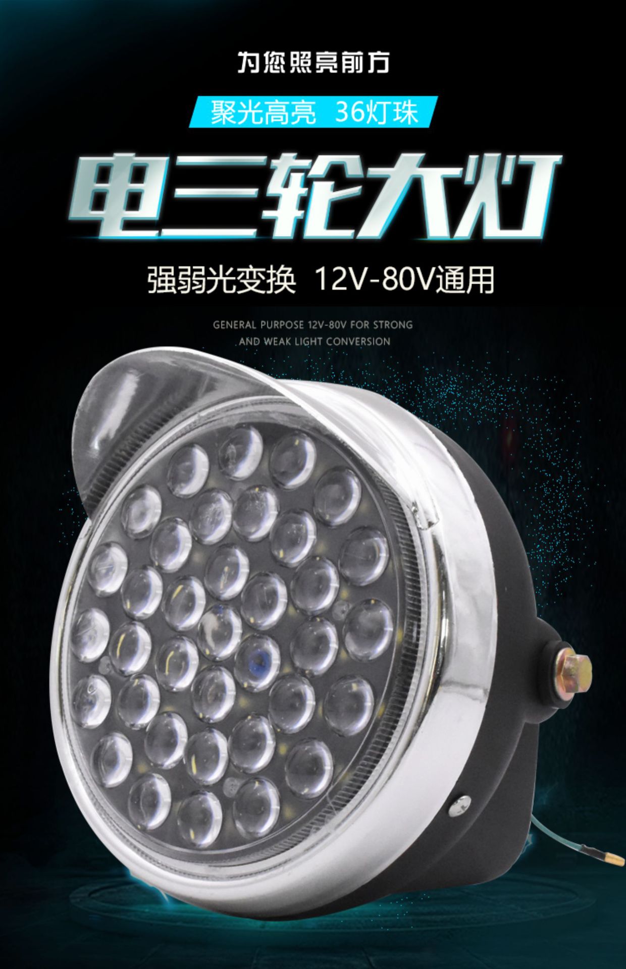 Conjunto de faros de triciclo de cuentas 12-80V36