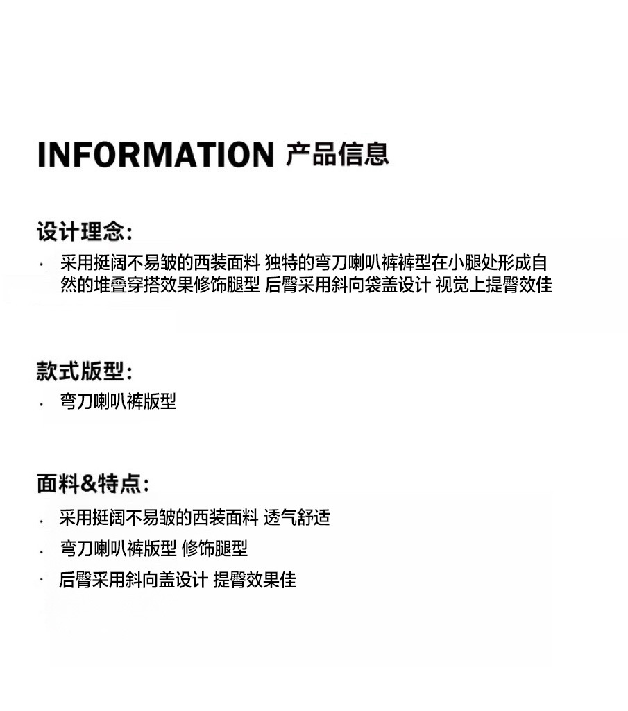| Categoría del producto | Pantalones de traje / pantalones de vestir |