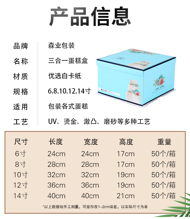 | Especificaciones y modelos | 爱享一生纸盒5套-6寸24*24*17CM,爱享一生纸盒5套-8寸28*28*17CM,爱享一生纸盒5套-12寸36*36*19CM,爱享一生纸盒25套-6寸24*24*17CM,爱享一生纸盒25套-10寸32*32*19CM,爱享一生纸盒25套-12寸36*36*19CM,典雅之蓝纸盒5套-6寸24*24*17CM,典雅之蓝纸盒5套-8寸28*28*17CM,典雅之蓝纸盒5套-10寸32*32*19CM,典雅之蓝纸盒5套-12寸36*36*19CM,典雅之蓝纸盒5套-14寸40*40*21CM,典雅之蓝纸盒25套-6寸24*24*17CM,典雅之蓝纸盒25套-8寸28*28*17CM,典雅之蓝纸盒25套-10寸32*32*19CM,典雅之蓝纸盒25套-12寸36*36*19CM,典雅之蓝纸盒25套-14寸40*40*21CM,粉花蕾方纸盒5套-6寸24*24*17CM,粉花蕾方纸盒5套-8寸28*28*17CM,粉花蕾方纸盒5套-10寸32*32*19CM,粉花蕾方纸盒5套-12寸36*36*19CM,粉花蕾方纸盒5套-14寸40*40*21CM,粉花蕾方纸盒25套-6寸24*24*17CM,粉花蕾方纸盒25套-8寸28*28*17CM,粉花蕾方纸盒25套-10寸32*32*19CM,粉花蕾方纸盒25套-12寸36*36*19CM,粉花蕾方纸盒25套-14寸40*40*21CM,蓝花蕾方纸盒5套-6寸24*24*17CM,蓝花蕾方纸盒5套-8寸28*28*17CM,蓝花蕾方纸盒5套-10寸32*32*19CM,蓝花蕾方纸盒5套-12寸36*36*19CM,蓝花蕾方纸盒5套-14寸40*40*21CM,蓝花蕾方纸盒25套-6寸24*24*17CM,蓝花蕾方纸盒25套-8寸28*28*17CM,蓝花蕾方纸盒25套-10寸32*32*19CM,蓝花蕾方纸盒25套-12寸36*36*19CM,蓝花蕾方纸盒25套-14寸40*40*21CM,粉蓝方纸盒5套-6寸24*24*17CM,粉蓝方纸盒5套-8寸28*28*17CM,粉蓝方纸盒5套-10寸32*32*19CM,粉蓝方纸盒25套-6寸24*24*17CM,粉蓝方纸盒25套-8寸28*28*17CM,粉蓝方纸盒25套-10寸32*32*19CM,粉蓝方纸盒25套-12寸36*36*19CM,告白气球纸盒5套-8寸28*28*17CM,告白气球纸盒5套-10寸32*32*19CM,告白气球纸盒5套-12寸36*36*19CM,告白气球纸盒25套-8寸28*28*17CM,告白气球纸盒25套-10寸32*32*19CM,告白气球纸盒25套-12寸36*36*19CM,格兰印象纸盒5套-6寸24*24*17CM,格兰印象纸盒5套-8寸28*28*17CM,格兰印象纸盒5套-10寸32*32*19CM,格兰印象纸盒5套-12寸36*36*19CM,格兰印象纸盒25套-6寸24*24*17CM,格兰印象纸盒25套-8寸28*28*17CM,格兰印象纸盒25套-10寸32*32*19CM,格兰印象纸盒25套-12寸36*36*19CM,红色经典纸盒5套-6寸24*24*17CM,红色经典纸盒5套-10寸32*32*19CM,红色经典纸盒5套-12寸36*36*19CM,红色经典纸盒25套-6寸24*24*17CM,红色经典纸盒25套-10寸32*32*19CM,红色经典纸盒25套-12寸36*36*19CM,渐变色纸盒5套-6寸24*24*17CM,渐变色纸盒5套-8寸28*28*17CM,渐变色纸盒5套-10寸32*32*19CM,渐变色纸盒5套-12寸36*36*19CM,渐变色纸盒25套-6寸24*24*17CM,渐变色纸盒25套-8寸28*28*17CM,渐变色纸盒25套-10寸32*32*19CM,渐变色纸盒25套-12寸36*36*19CM,渐变色纸盒25套-14寸40*40*21CM,蓝书本纸盒5套-6寸24*24*17CM,蓝书本纸盒5套-10寸32*32*19CM,蓝书本纸盒5套-12寸36*36*19CM,蓝书本纸盒5套-14寸40*40*21CM,蓝书本纸盒25套-6寸24*24*17CM,蓝书本纸盒25套-10寸32*32*19CM,蓝书本纸盒25套-12寸36*36*19CM,蓝书本纸盒25套-14寸40*40*21CM,流金岁月纸盒5套-6寸24*24*17CM,流金岁月纸盒5套-8寸28*28*17CM,流金岁月纸盒5套-14寸40*40*21CM,流金岁月纸盒25套-6寸24*24*17CM,流金岁月纸盒25套-8寸28*28*17CM,流金岁月纸盒25套-14寸40*40*21CM,天鹅之恋纸盒5套-14寸40*40*21CM,天鹅之恋纸盒25套-14寸40*40*21CM,天际之蓝纸盒5套-6寸24*24*17CM,天际之蓝纸盒5套-8寸28*28*17CM,天际之蓝纸盒5套-10寸32*32*19CM,天际之蓝纸盒5套-12寸36*36*19CM,天际之蓝纸盒25套-6寸24*24*17CM,天际之蓝纸盒25套-8寸28*28*17CM,天际之蓝纸盒25套-10寸32*32*19CM,天际之蓝纸盒25套-12寸36*36*19CM,幸福时光纸盒5套-6寸24*24*17CM,幸福时光纸盒5套-10寸32*32*19CM,幸福时光纸盒5套-14寸40*40*21CM,幸福时光纸盒25套-6寸24*24*17CM,幸福时光纸盒25套-8寸28*28*17CM,幸福时光纸盒25套-10寸32*32*19CM,幸福时光纸盒25套-14寸40*40*21CM,一路有你纸盒5套-6寸24*24*17CM,一路有你纸盒5套-8寸28*28*17CM,一路有你纸盒5套-10寸32*32*19CM,一路有你纸盒5套-12寸36*36*19CM,一路有你纸盒25套-6寸24*24*17CM,一路有你纸盒25套-8寸28*28*17CM,一路有你纸盒25套-10寸32*32*19CM,一路有你纸盒25套-12寸36*36*19CM,云裳方纸盒25套-8寸28*28*17CM,地中海纸盒5套-10寸32*32*19CM,甜蜜派对纸盒5套-6寸24*24*17CM,甜蜜派对纸盒5套-8寸28*28*17CM,甜蜜派对纸盒5套-10寸32*32*19CM,甜蜜派对纸盒5套-12寸36*36*19CM,甜蜜派对纸盒5套-14寸40*40*21CM,甜蜜派对纸盒25套-6寸24*24*17CM,甜蜜派对纸盒25套-8寸28*28*17CM,甜蜜派对纸盒25套-10寸32*32*19CM,甜蜜派对纸盒25套-12寸36*36*19CM,甜蜜派对纸盒25套-14寸40*40*21CM,爱的小屋纸盒5套-6寸24*24*17CM,爱的小屋纸盒5套-8寸28*28*17CM,爱的小屋纸盒5套-10寸32*32*19CM,爱的小屋纸盒5套-12寸36*36*19CM,爱的小屋纸盒5套-14寸40*40*21CM,爱的小屋纸盒25套-6寸24*24*17CM,爱的小屋纸盒25套-8寸28*28*17CM,爱的小屋纸盒25套-10寸32*32*19CM,爱的小屋纸盒25套-12寸36*36*19CM,爱的小屋纸盒25套-14寸40*40*21CM,粉花蕾圆纸盒5套-6寸24*24*17CM,粉花蕾圆纸盒5套-8寸28*28*17CM,粉花蕾圆纸盒5套-10寸32*32*19CM,粉花蕾圆纸盒5套-12寸36*36*19CM,粉花蕾圆纸盒5套-14寸40*40*21CM,粉花蕾圆纸盒25套-6寸24*24*17CM,粉花蕾圆纸盒25套-8寸28*28*17CM,粉花蕾圆纸盒25套-10寸32*32*19CM,粉花蕾圆纸盒25套-12寸36*36*19CM,粉花蕾圆纸盒25套-14寸40*40*21CM,蓝花蕾圆纸盒5套-6寸24*24*17CM,蓝花蕾圆纸盒5套-8寸28*28*17CM,蓝花蕾圆纸盒5套-10寸32*32*19CM,蓝花蕾圆纸盒5套-12寸36*36*19CM,蓝花蕾圆纸盒5套-14寸40*40*21CM,蓝花蕾圆纸盒25套-6寸24*24*17CM,蓝花蕾圆纸盒25套-8寸28*28*17CM,蓝花蕾圆纸盒25套-10寸32*32*19CM,蓝花蕾圆纸盒25套-12寸36*36*19CM,蓝花蕾圆纸盒25套-14寸40*40*21CM,红欢乐圆纸盒5套-6寸24*24*17CM,红欢乐圆纸盒5套-8寸28