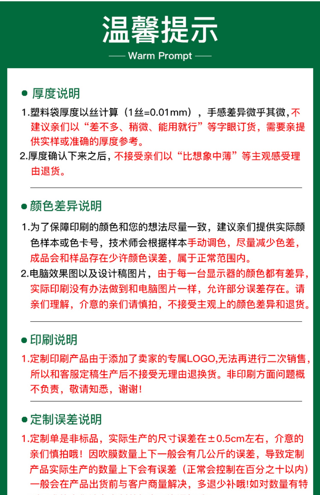 | Especificaciones y modelos | 50只-14*20-透明【双层8丝】,100只-14*20-透明【双层8丝】,500只-14*20-透明【双层8丝】,50只-20*25-透明【双层8丝】,100只-20*25-透明【双层8丝】,500只-20*25-透明【双层8丝】,50只-20*30-透明【双层8丝】,100只-20*30-透明【双层8丝】,500只-20*30-透明【双层8丝】,50只-25*30-透明【双层8丝】,100只-25*30-透明【双层8丝】,500只-25*30-透明【双层8丝】,50只-27*35-透明【双层8丝】,100只-27*35-透明【双层8丝】,500只-27*35-透明【双层8丝】,50只-30*40-透明【双层8丝】,100只-30*40-透明【双层8丝】,500只-30*40-透明【双层8丝】,50只-35*45-透明【双层8丝】,100只-35*45-透明【双层8丝】,500只-35*45-透明【双层8丝】,50只-40*50-透明【双层8丝】,100只-40*50-透明【双层8丝】,500只-40*50-透明【双层8丝】,50只-45*55-透明【双层8丝】,100只-45*55-透明【双层8丝】,500只-45*55-透明【双层8丝】,50只-45*60-透明【双层8丝】,100只-45*60-透明【双层8丝】,500只-45*60-透明【双层8丝】,50只-14*20-透明【双层12丝】,100只-14*20-透明【双层12丝】,500只-14*20-透明【双层12丝】,50只-20*25-透明【双层12丝】,100只-20*25-透明【双层12丝】,500只-20*25-透明【双层12丝】,50只-20*30-透明【双层12丝】,100只-20*30-透明【双层12丝】,500只-20*30-透明【双层12丝】,50只-25*30-透明【双层12丝】,100只-25*30-透明【双层12丝】,500只-25*30-透明【双层12丝】,50只-27*35-透明【双层12丝】,100只-27*35-透明【双层12丝】,500只-27*35-透明【双层12丝】,50只-30*40-透明【双层12丝】,500只-30*40-透明【双层12丝】,50只-35*45-透明【双层12丝】,100只-35*45-透明【双层12丝】,500只-35*45-透明【双层12丝】,50只-40*50-透明【双层12丝】,100只-40*50-透明【双层12丝】,500只-40*50-透明【双层12丝】,50只-45*55-透明【双层12丝】,100只-45*55-透明【双层12丝】,500只-45*55-透明【双层12丝】,50只-45*60-透明【双层12丝】,100只-45*60-透明【双层12丝】,500只-45*60-透明【双层12丝】,50只-14*20-磨砂【双层14丝】,100只-14*20-磨砂【双层14丝】,500只-14*20-磨砂【双层14丝】,50只-20*25-磨砂【双层14丝】,100只-20*25-磨砂【双层14丝】,500只-20*25-磨砂【双层14丝】,50只-20*30-磨砂【双层14丝】,100只-20*30-磨砂【双层14丝】,500只-20*30-磨砂【双层14丝】,50只-25*30-磨砂【双层14丝】,100只-25*30-磨砂【双层14丝】,500只-25*30-磨砂【双层14丝】,50只-27*35-磨砂【双层14丝】,100只-27*35-磨砂【双层14丝】,500只-27*35-磨砂【双层14丝】,50只-30*40-磨砂【双层14丝】,100只-30*40-磨砂【双层14丝】,500只-30*40-磨砂【双层14丝】,50只-35*45-磨砂【双层14丝】,100只-35*45-磨砂【双层14丝】,500只-35*45-磨砂【双层14丝】,50只-40*50-磨砂【双层14丝】,100只-40*50-磨砂【双层14丝】,500只-40*50-磨砂【双层14丝】,50只-45*55-磨砂【双层14丝】,100只-45*55-磨砂【双层14丝】,500只-45*55-磨砂【双层14丝】,50只-45*60-磨砂【双层14丝】,100只-45*60-磨砂【双层14丝】,500只-45*60-磨砂【双层14丝】,50只-14*20-磨砂警示语【双层14丝】,100只-14*20-磨砂警示语【双层14丝】,500只-14*20-磨砂警示语【双层14丝】,50只-20*30-磨砂警示语【双层14丝】,100只-20*30-磨砂警示语【双层14丝】,500只-20*30-磨砂警示语【双层14丝】,50只-30*40-磨砂警示语【双层14丝】,100只-30*40-磨砂警示语【双层14丝】,500只-30*40-磨砂警示语【双层14丝】,50只-35*45-磨砂警示语【双层14丝】,100只-35*45-磨砂警示语【双层14丝】,500只-35*45-磨砂警示语【双层14丝】,50只-40*50-磨砂警示语【双层14丝】,100只-40*50-磨砂警示语【双层14丝】,500只-40*50-磨砂警示语【双层14丝】,50只-45*60-磨砂警示语【双层14丝】,100只-45*60-磨砂警示语【双层14丝】,500只-45*60-磨砂警示语【双层14丝】 |