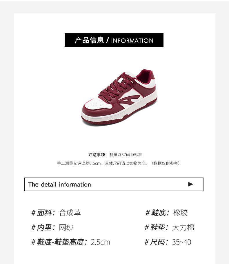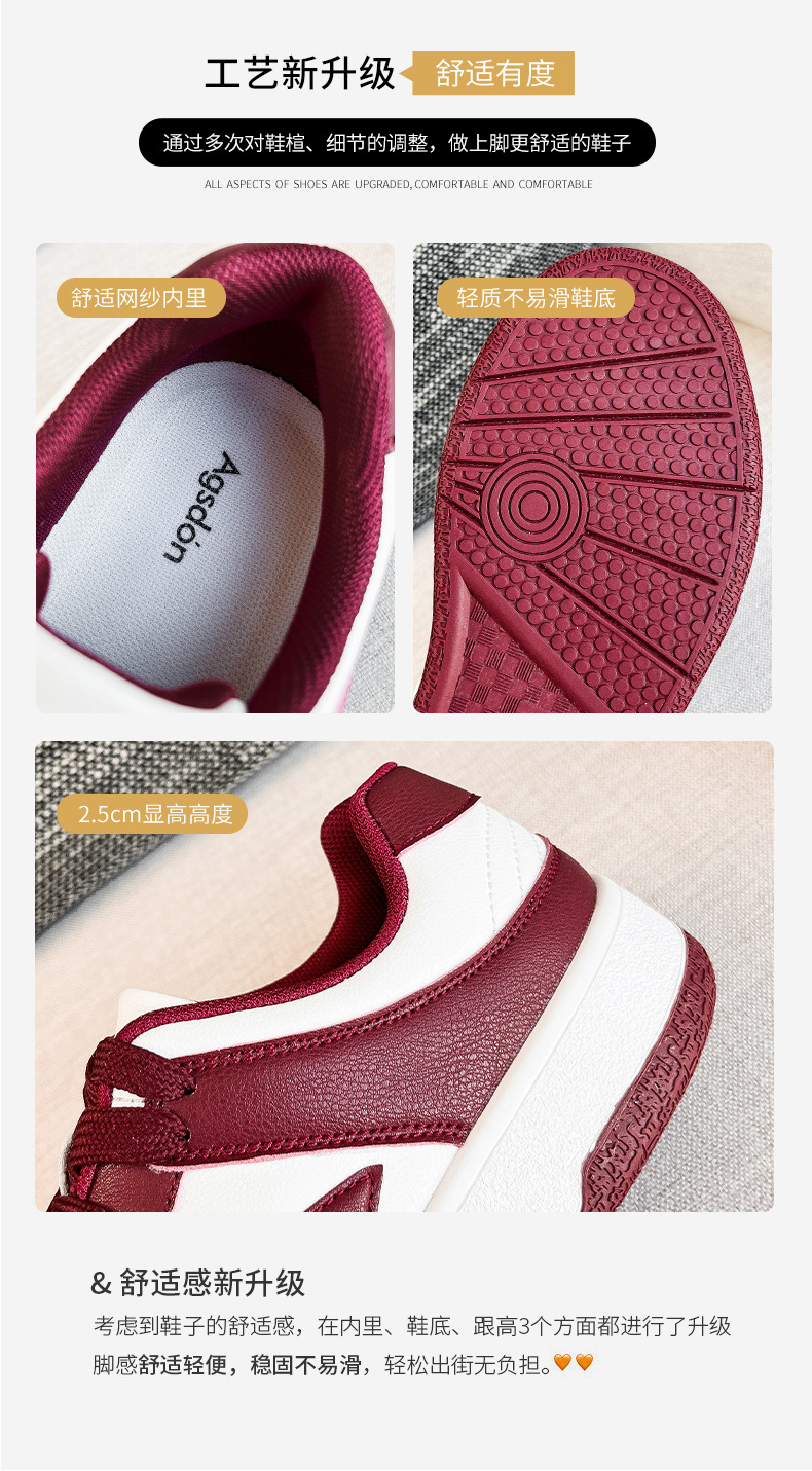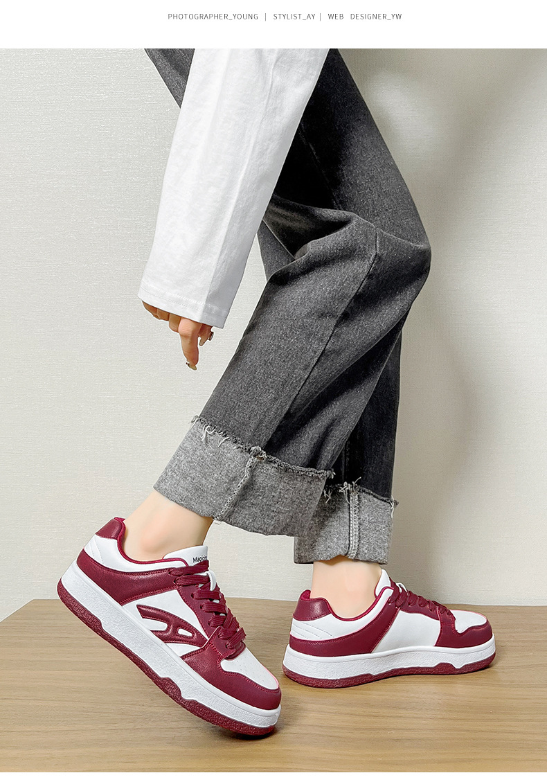 Zapatillas deportivas para mujer Augusden, nueva colección primavera 2026, estilo americano, color rojo, informales, deportivas, con suela gruesa, blancas.