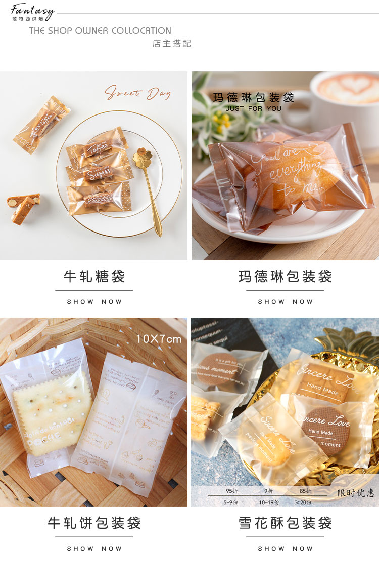 Bolsa de embalaje de copo de nieve, galletas, nougat, leche, dulces, bolsas selladas por máquina, bolsas de embalaje pequeñas, bolsas auto-selladas para hornear