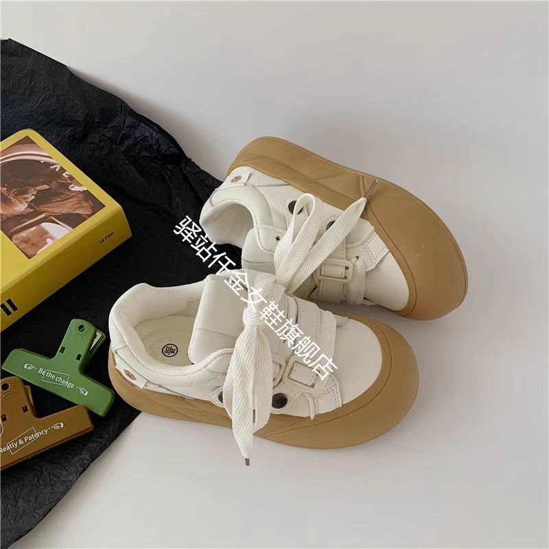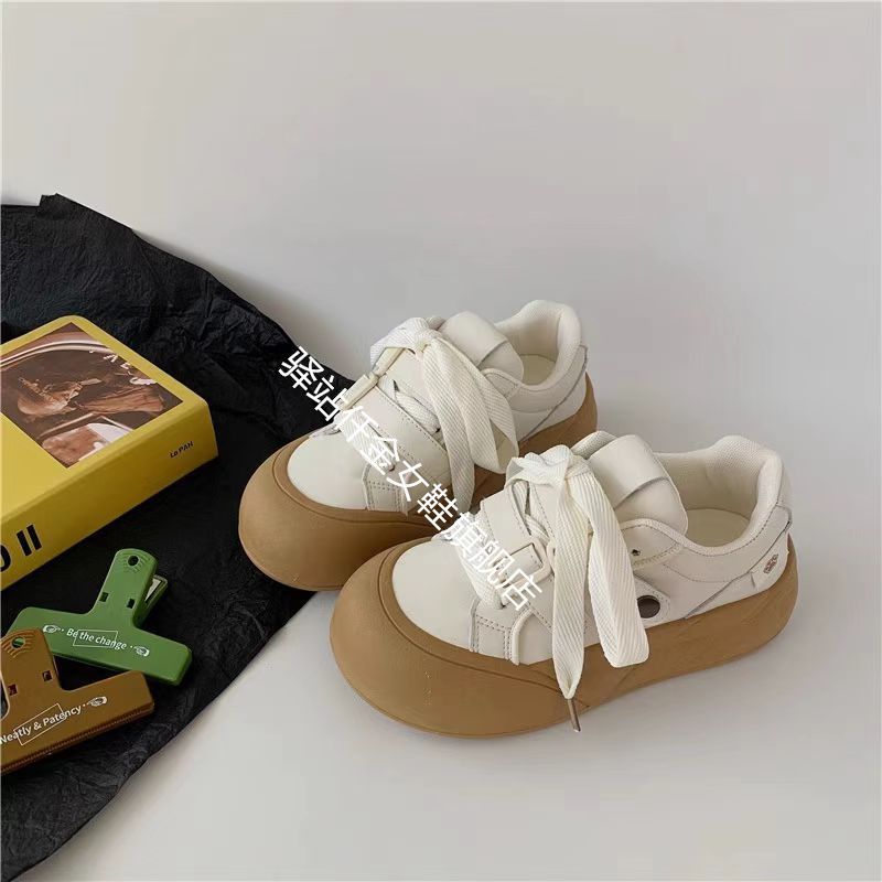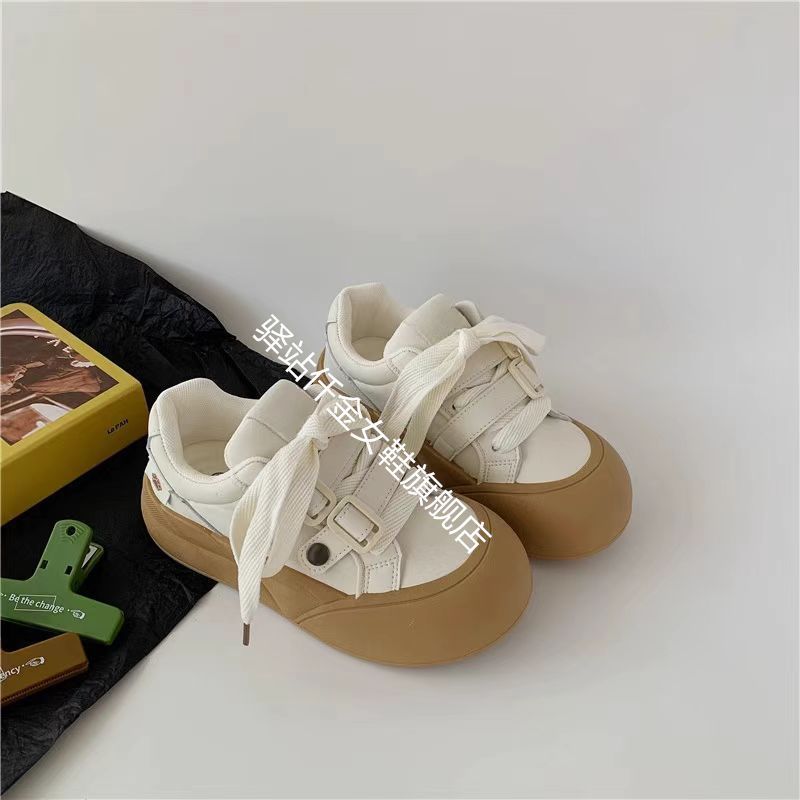 Augu Shi Deng zapatos blancos de suela gruesa para mujeres 2025 nuevos zapatos de skate de otoño estudiantes zapatos casuales ligeros de suela suave