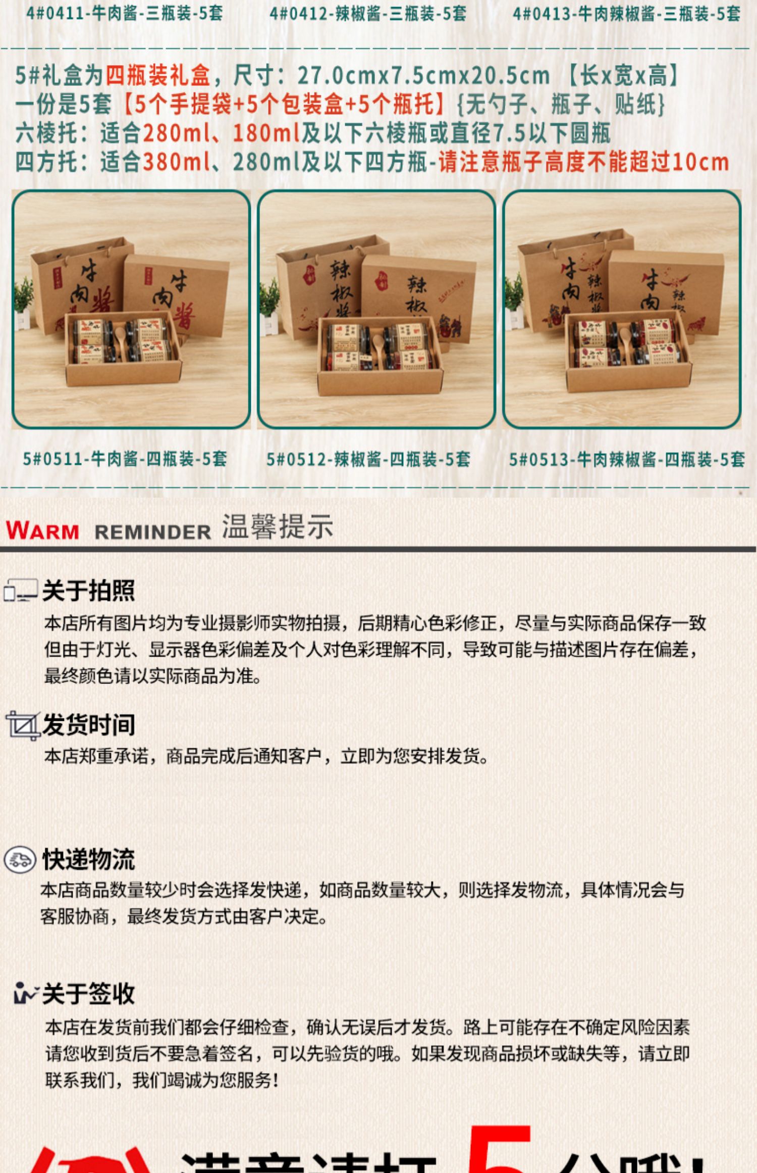 | Especificaciones y modelos | Personalización privada - servicio al cliente de consulta, 1 # 0111 - salsa de carne de res + seis bordes - 10 juegos, 1 # 0111 - salsa de carne de res + cuatro bordes - 10 juegos, 1 # 0112 - salsa de chile + seis bordes - 10 juegos, 1 # 0112 - salsa de chile + cuatro bordes - 10 juegos, 1 # 0113 - salsa de carne de res + seis bordes - 10 juegos, 1 # 0113 - salsa de carne de res + cuatro bordes - 10 juegos, 2 # 0211 - salsa de carne de res + seis bordes - 10 juegos, 2#0211 - salsa de carne de res + cuadrangular - 10 juegos, 2#0212 - salsa de chile + seis bordes - 10 juegos, 2#0212 - salsa de chile + cuadrangular - 10 juegos, 2#0213 - salsa de carne de res + seis bordes - 10 juegos, 2#0213 - salsa de carne de res + cuadrangular - 10 juegos, 3#0311 - salsa de carne de res + seis bordes - 10 juegos, 3#0311 - salsa de carne de res + cuatro bordes - 10 juegos, 3#0312 - salsa de chile + seis bordes - 10 juegos, 3#0312 - salsa de chile + cuatro bordes - 10 juegos, 8#0811 - salsa de carne de res + seis bordes - 10 juegos, 8#0812 - salsa de chile + seis bordes - 10 juegos, 8#0813 - salsa de carne de res + seis bordes - 10 juegos, 4#0411 - salsa de carne de res - 6 botellas - 10 juegos, 4#0412 - salsa de chile - 6 botellas - 10 juegos 9#0911 - Salsa de carne de res - 6 botellas - 10 juegos, 9#0912 - Salsa de chile - 6 botellas - 10 juegos, blanco lechoso, gris oscuro, gris pálido, plateado, caqui, amarillo brillante, almendro, verde militar, verde oscuro, verde |