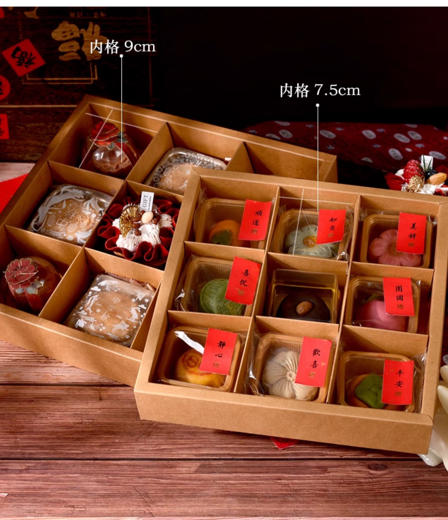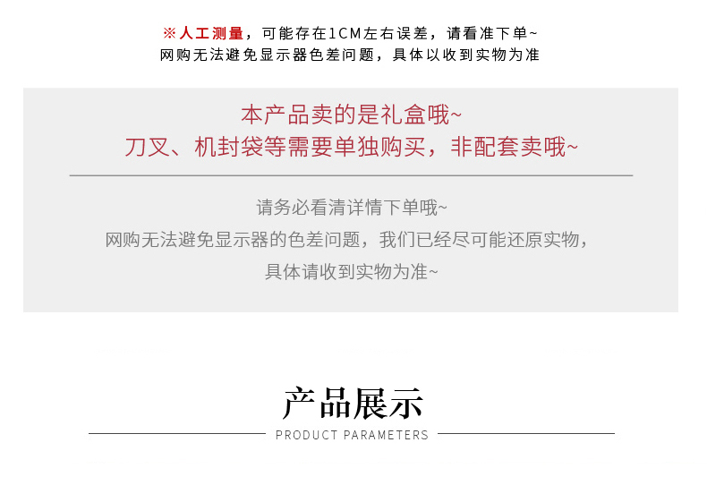 | Especificaciones y modelos | 5套-300克牛卡礼盒+礼袋-见图,5套-500克牛卡礼盒+礼袋-见图,5套-1000克牛卡礼盒+礼袋-见图,5个大号-天地盖四宫内格9cm-见图,5个大号-天地盖六宫内格9cm-见图,5个大号-天地盖九宫内格9cm-见图,5个小号-天地盖二宫内格7.5cm-见图,5个小号-天地盖四宫内格7.5cm-见图,5个小号-天地盖六宫内格7.5cm-见图,5个小号-天地盖九宫内格7.5cm-见图,5套-牛卡天地盖17.5*17.5*5-见图,5套-牛卡天地盖20.5*20.5*5.5-见图,5套-牛卡天地盖25*25*5-见图,5套-牛卡天地盖29.3*29.3*5.5-见图,5个竖版纸袋27*19*7cm-见图,5个竖版纸袋28*26*6(匹配小号九格)-见图,5个竖版纸袋33*31*7(匹配大号九格)-见图,10套-红色纸袋30.5*30.5*13cm(匹配大小号九宫格)-见图,50套-牛卡天地盖17.5*17.5*5-见图,50套-牛卡天地盖20.5*20.5*5.5-见图,50套-牛卡天地盖25*25*5-见图,50套-牛卡天地盖29.3*29.3*5.5-见图,50套-300克牛卡礼盒+礼袋-见图,50套-500克牛卡礼盒+礼袋-见图,50套-1000克牛卡礼盒+礼袋-见图,100个大号-天地盖四宫内格9cm-见图,100个大号-天地盖六宫内格9cm-见图,100个大号-天地盖九宫内格9cm-见图,100个小号-天地盖四宫内格7.5cm-见图,100个小号-天地盖六宫内格7.5cm-见图,100个小号-天地盖九宫内格7.5cm-见图,5条-酒红流苏-见图,酒红色绒皮绳100米-见图,麻绳(100米)-见图,纸绳(100米)-见图,10张-好事发生洒金贴纸-见图,10张-小号喜洒金贴纸-见图,10张-大号喜洒金贴纸-见图,10张-花好月圆洒金贴纸-见图,10张-平安喜乐洒金贴纸-见图,10张-手作月饼触感白牛贴纸-见图,10张-长款喜乐中秋洒金纸贴纸-见图,10张-方款喜乐中秋洒金纸贴纸-见图,10张-中秋有礼洒金贴纸-见图,20张-小号中秋月饼贴纸(共160枚)-见图,10张-中号中秋月饼触感白牛贴纸(共60枚)-见图,20张-大号中秋月饼贴纸-见图,10张-大吉大利洒金贴纸-见图,10张-福洒金贴纸-见图,10张-月来越好洒金贴纸-见图,10张-心意手作洒金贴纸-见图,10张-中秋快乐洒金贴纸-见图,10张-吾家有喜洒金贴纸-见图,10张-长安宁多喜乐洒金贴纸-见图,10张-财源滚滚洒金贴纸-见图,10张-中式洒金贴纸(共130枚)-见图,10张-平安团圆洒金贴纸-见图,10张新年吊牌-共120枚-见图,10张-扇子卡片(共60枚)-见图,20张-大号中秋盖纸插画4款混发(不带胶)-见图,10张-恭喜发财洒金贴纸-见图,10张-大号年味洒金贴纸-见图,10张-年货书写纸不干胶(共40枚)-见图,10张-小号中国年牛皮纸贴纸-见图,10张-大号中国年洒金贴纸-见图 |