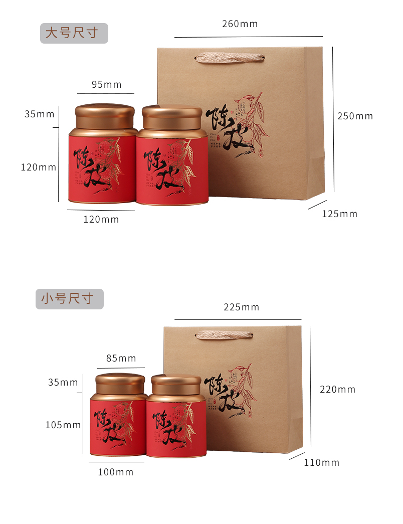 | Especificaciones y modelos | Dos latas rojas pequeñas una lata de naranja GY008, dos latas naranjas pequeñas una lata de naranja GY008, dos latas amarillas pequeñas una lata de naranja GY008, dos latas negras pequeñas una lata de naranja GY008, dos latas rojas grandes una lata de naranja GY009, dos latas naranjas grandes una lata de naranja GY009, dos latas amarillas grandes una lata de naranja GY009, dos latas negras grandes una lata de naranja GY009, una lata baja una lata de naranja, una lata de naranja baja, una lata de naranja alta, Gran lata de naranja GY009, gran lata de naranja amarilla GY009, gran lata de naranja negra GY009, pequeña bolsa kraft naranja Una lata, bolso kraft naranja grande Una lata, pequeña naranja kraft bolsa Dos latas, bolso kraft de naranja grande Dos latas, latas de naranja roja 165 (caja vacía) de aproximadamente 250 g, latas de naranja naranja 165 (caja vacía) de aproximadamente 250 g, latas de naranja roja 190 (caja vacía) de aproximadamente 500 g, latas de naranja naranja 190 (caja vacía) de aproximadamente 500 g, latas de naranja roja Yunzang pequeña (caja vacía) de aproximadamente 100 g, latas de naranja negra Yunzang pequeña (caja vacía) de aproximadamente 100 g, latas de naranja roja Yunzang grande (caja vacía) de aproximadamente 250 g, 250 g de cáscara de naranja negra grande (caja vacía), 250 g de cáscara de naranja roja grande (caja vacía), 250 g de cáscara de naranja negra grande (caja vacía) y 250 g de cáscara de naranja blanca grande (caja vacía) |