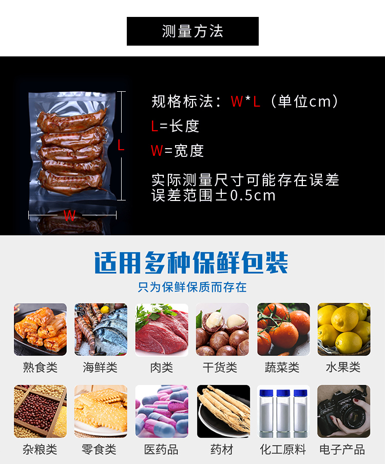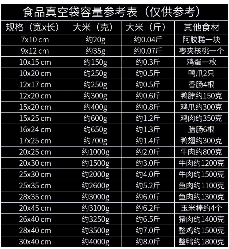 | Especificaciones y modelos | 16丝尼龙真空袋-7*10【100只】,16丝尼龙真空袋-8*12【100只】,16丝尼龙真空袋-9*13【100只】,16丝尼龙真空袋-10*15【100只】,16丝尼龙真空袋-12*17【100只】,16丝尼龙真空袋-13*18【100只】,16丝尼龙真空袋-14*20【100只】,16丝尼龙真空袋-15*20【100只】,16丝尼龙真空袋-15*22【100只】,16丝尼龙真空袋-16*24【100只】,16丝尼龙真空袋-17*25【100只】,16丝尼龙真空袋-18*26【100只】,16丝尼龙真空袋-白色 18*28【100只】,16丝尼龙真空袋-20*25【100只】,16丝尼龙真空袋-20*30【100只】,16丝尼龙真空袋-20*40【100只】,16丝尼龙真空袋-22*32【100只】,16丝尼龙真空袋-26*38【100只】,16丝尼龙真空袋-米白色 28*38【100只】,16丝尼龙真空袋-30*40【100只】,16丝尼龙真空袋-30*50【100只】,16丝尼龙真空袋-32*45【100只】,16丝尼龙真空袋-35*50【100只】,16丝尼龙真空袋-40*50【100只】,16丝尼龙真空袋-乳白色 40*60【100只】,20丝尼龙真空袋-7*10【100只】,20丝尼龙真空袋-8*12【100只】,20丝尼龙真空袋-9*13【100只】,20丝尼龙真空袋-10*15【100只】,20丝尼龙真空袋-12*17【100只】,20丝尼龙真空袋-14*20【100只】,20丝尼龙真空袋-15*20【100只】,20丝尼龙真空袋-15*22【100只】,20丝尼龙真空袋-16*24【100只】,20丝尼龙真空袋-17*25【100只】,20丝尼龙真空袋-18*26【100只】,20丝尼龙真空袋-白色 18*28【100只】,20丝尼龙真空袋-20*25【100只】,20丝尼龙真空袋-20*30【100只】,20丝尼龙真空袋-22*32【100只】,20丝尼龙真空袋-26*38【100只】,20丝尼龙真空袋-30*40【100只】,20丝尼龙真空袋-30*50【100只】,20丝尼龙真空袋-32*45【100只】,20丝尼龙真空袋-35*50【100只】,20丝尼龙真空袋-40*50【100只】,20丝尼龙真空袋-乳白色 40*60【100只】,20丝尼龙真空袋-22*30【100只】 |