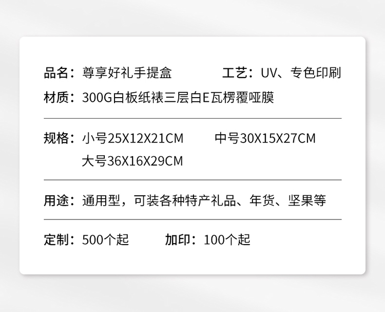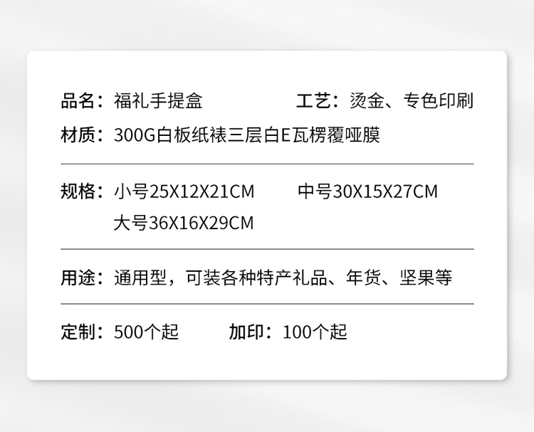 | Especificaciones y modelos | El regalo del corazón - 25x12x21cm, el regalo del corazón - 30x15x27cm, el regalo del corazón - 36x16x29cm, el regalo privilegiado - 30x15x27cm, el regalo privilegiado - 36x16x29cm, el regalo privilegiado - 36x12x21cm, el regalo privilegiado - 30x15x27cm, el regalo privilegiado - 36x16x29cm, el regalo privilegiado - 36x16x29cm, la familia - 31x16x23cm, la familia - 36x20x27cm, la familia - 40x20x32cm, la caja de regalo roja pura - 25x12x21cm, la caja de regalo roja pura - 30x15x27cm, Caja de regalo rojo puro - 36x16x29cm, regalo de broca - 36x16x29cm, regalo de broca - 40x20x32cm, regalo rojo - 30x12x25cm, regalo rojo - 36x13x28cm, regalo verde - 30x12x25cm, regalo verde - 36x13x28cm |