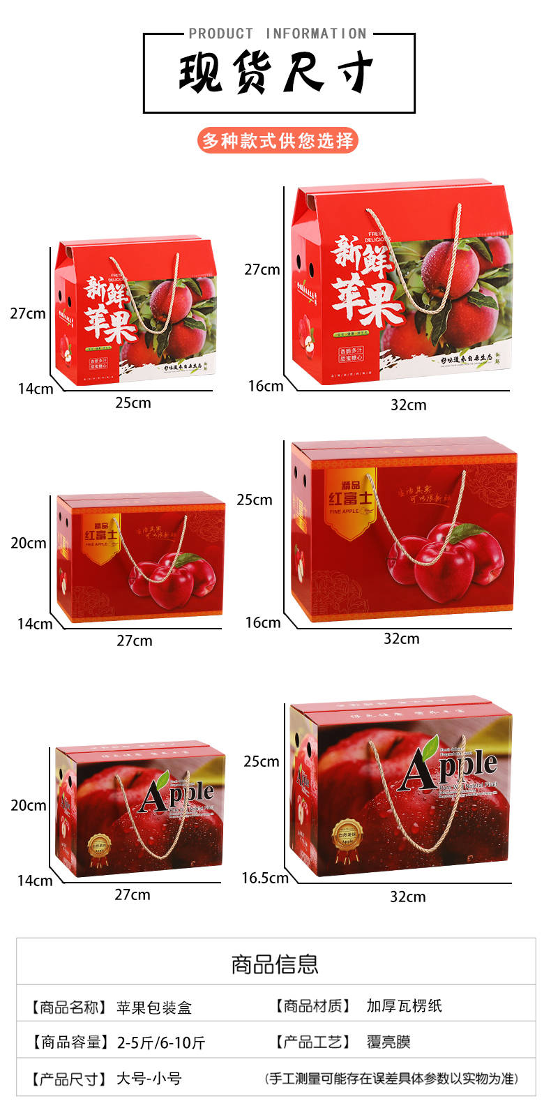 Caja de manzana caja de regalo vacía caja general 5 kg 10 kg caja de regalo de caramelo rojo Fuji personalizada