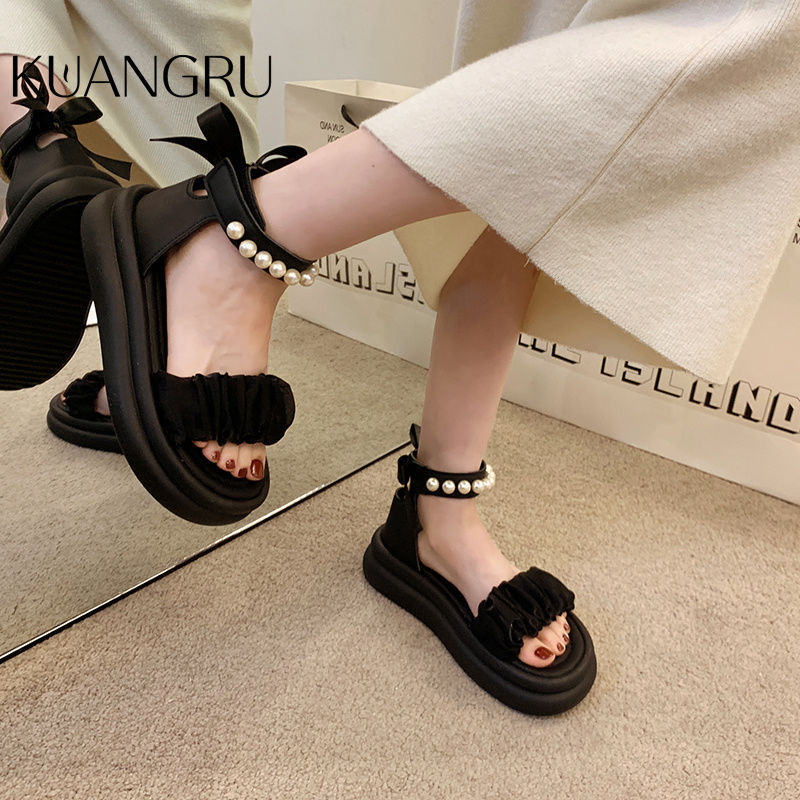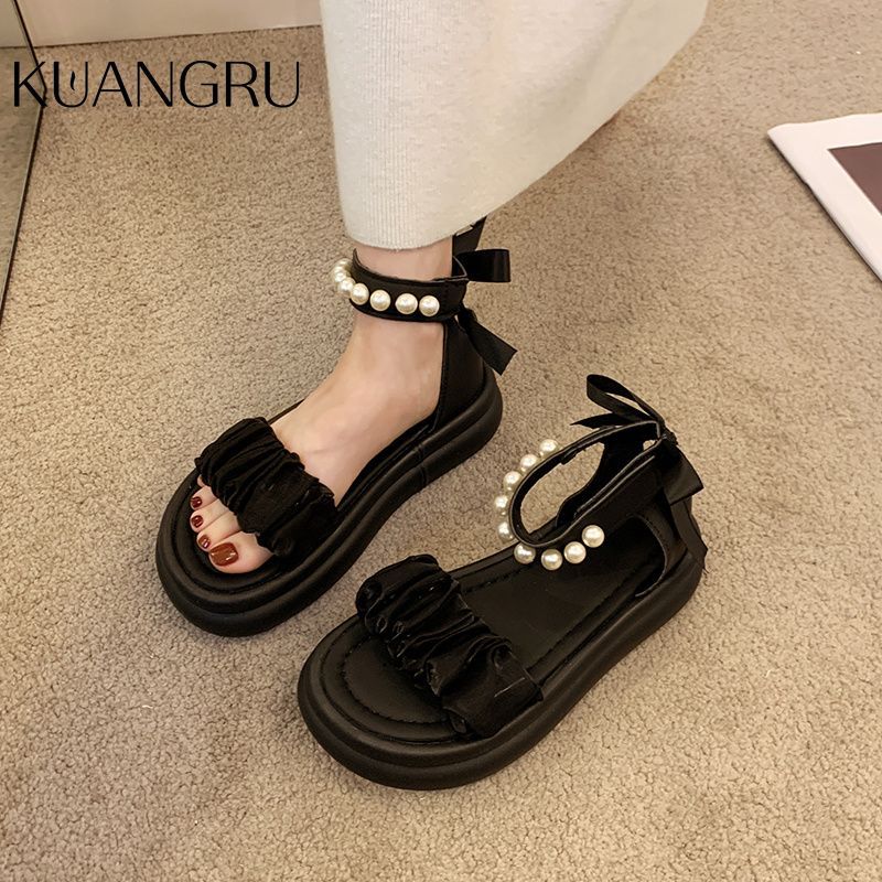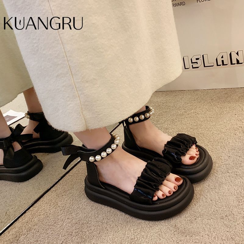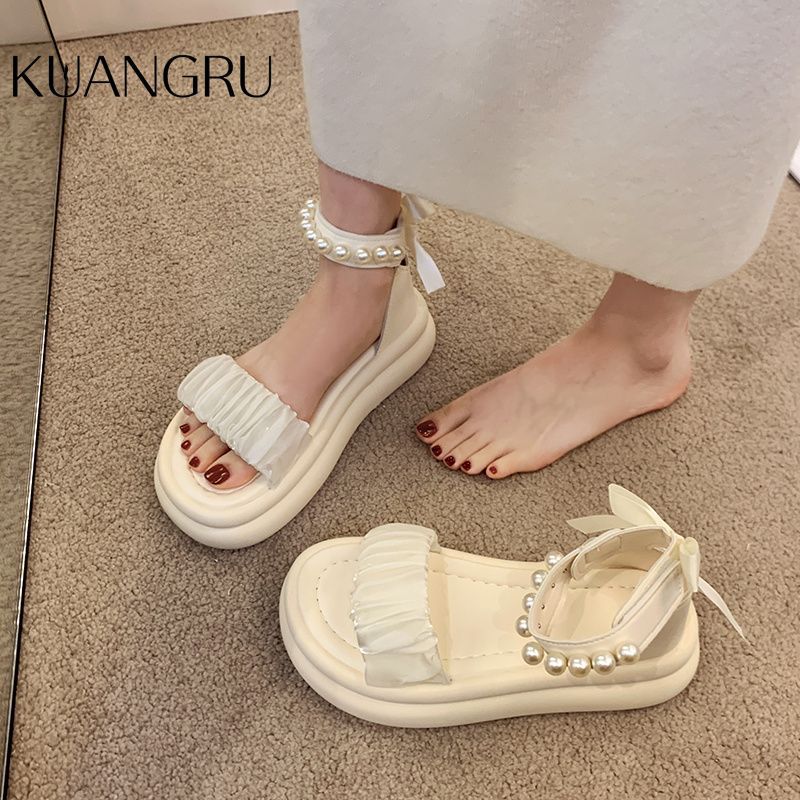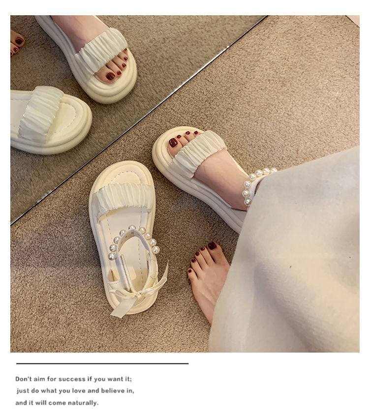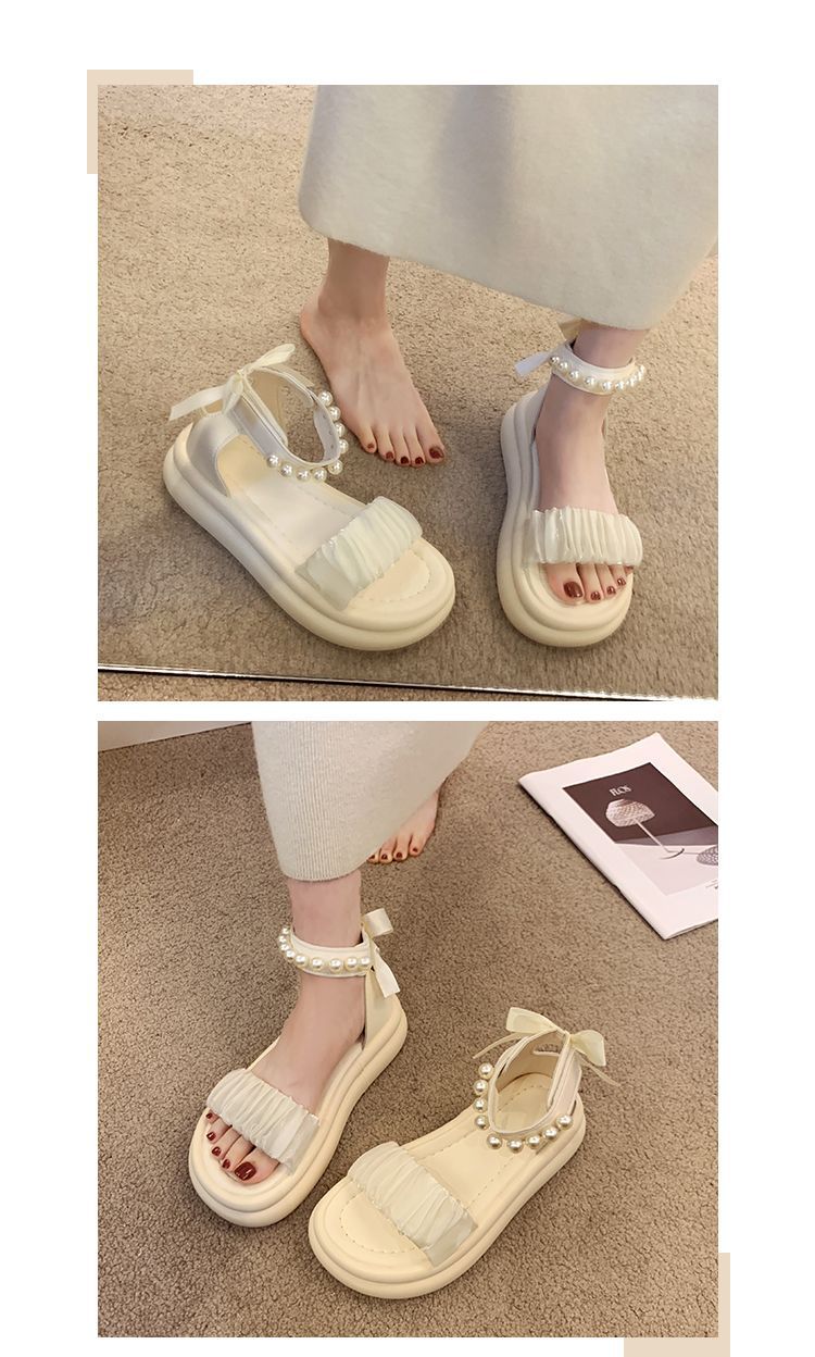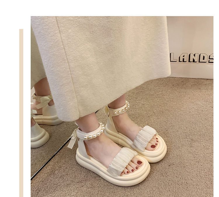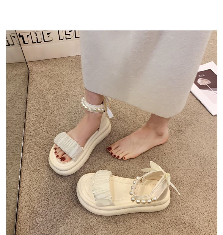 Sandalias antiguas para mujeres 2025, nuevo estilo de verano de fondo grueso de perlas de hadas con sandalias