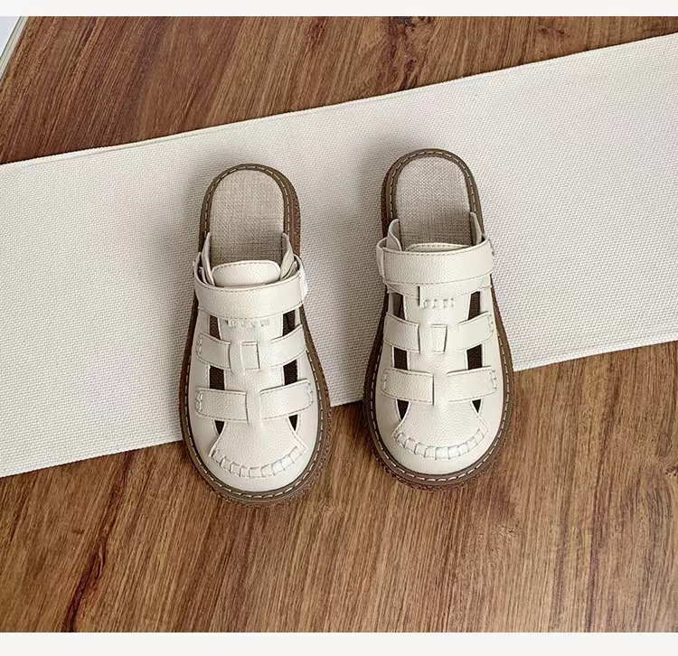 Dos sandalias de cabeza hueca para mujeres 2024 verano nuevo DongDongSen zapatos romanos zapatillas de mitad de suela gruesa para mujeres