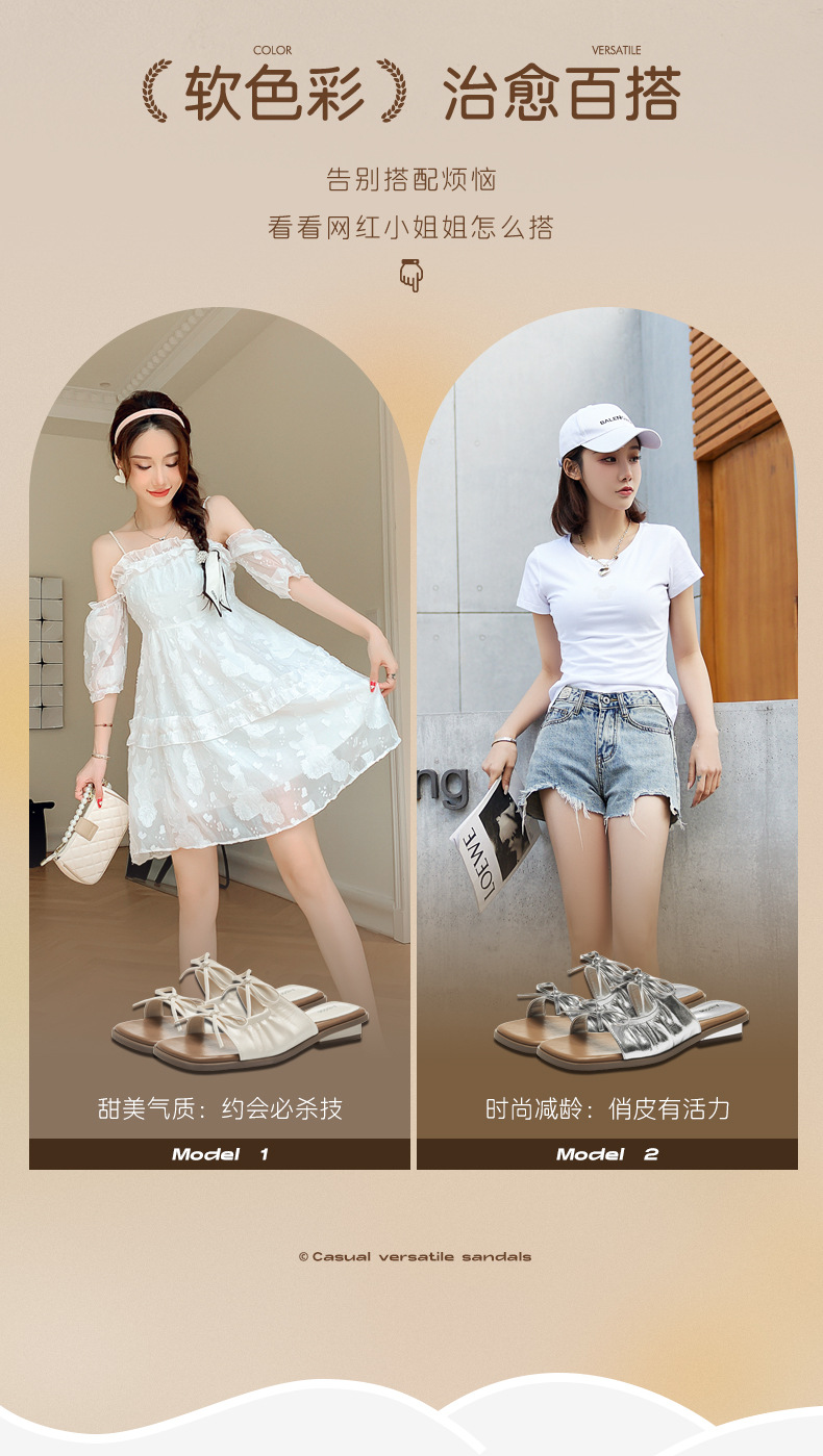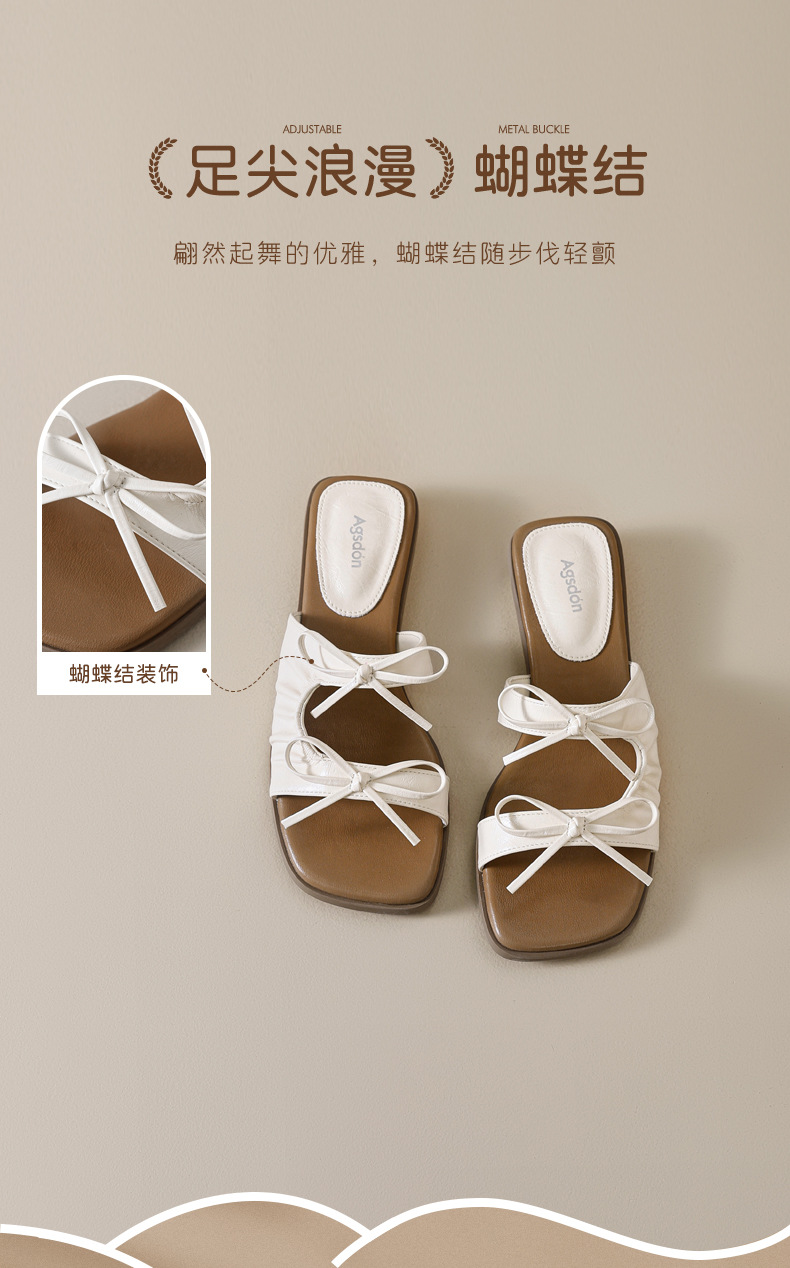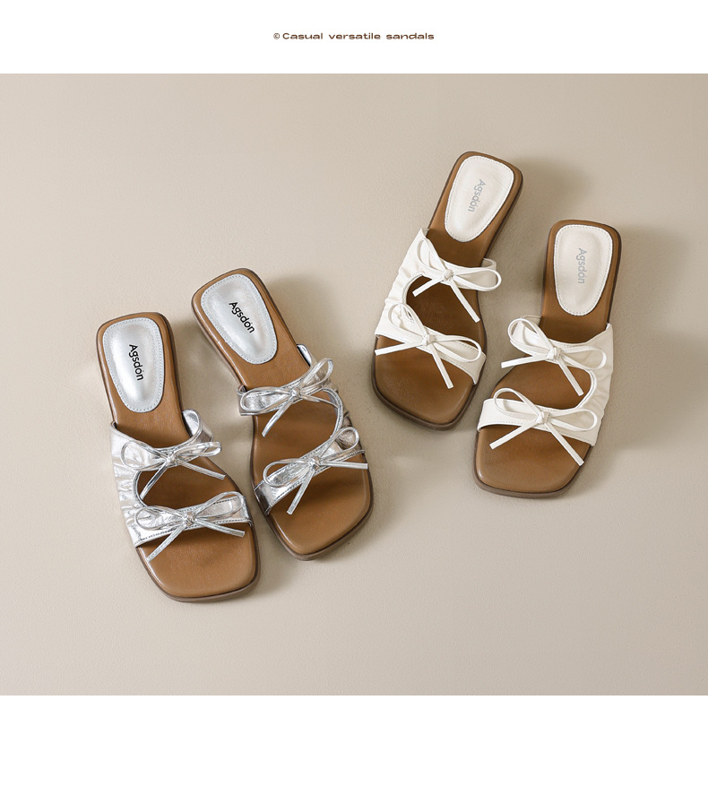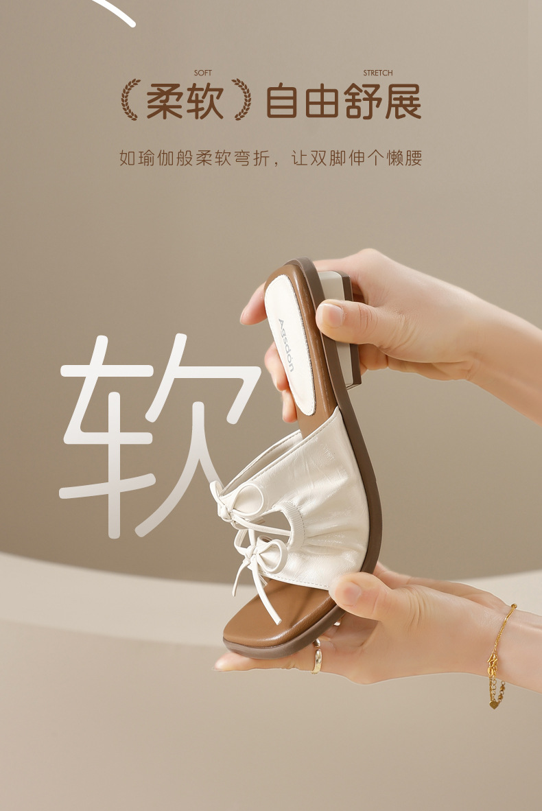 Augustion zapatillas francesas para mujer en verano 2025 nuevo estilo lazo de tacón bajo con falda sandalias de playa de fondo suave