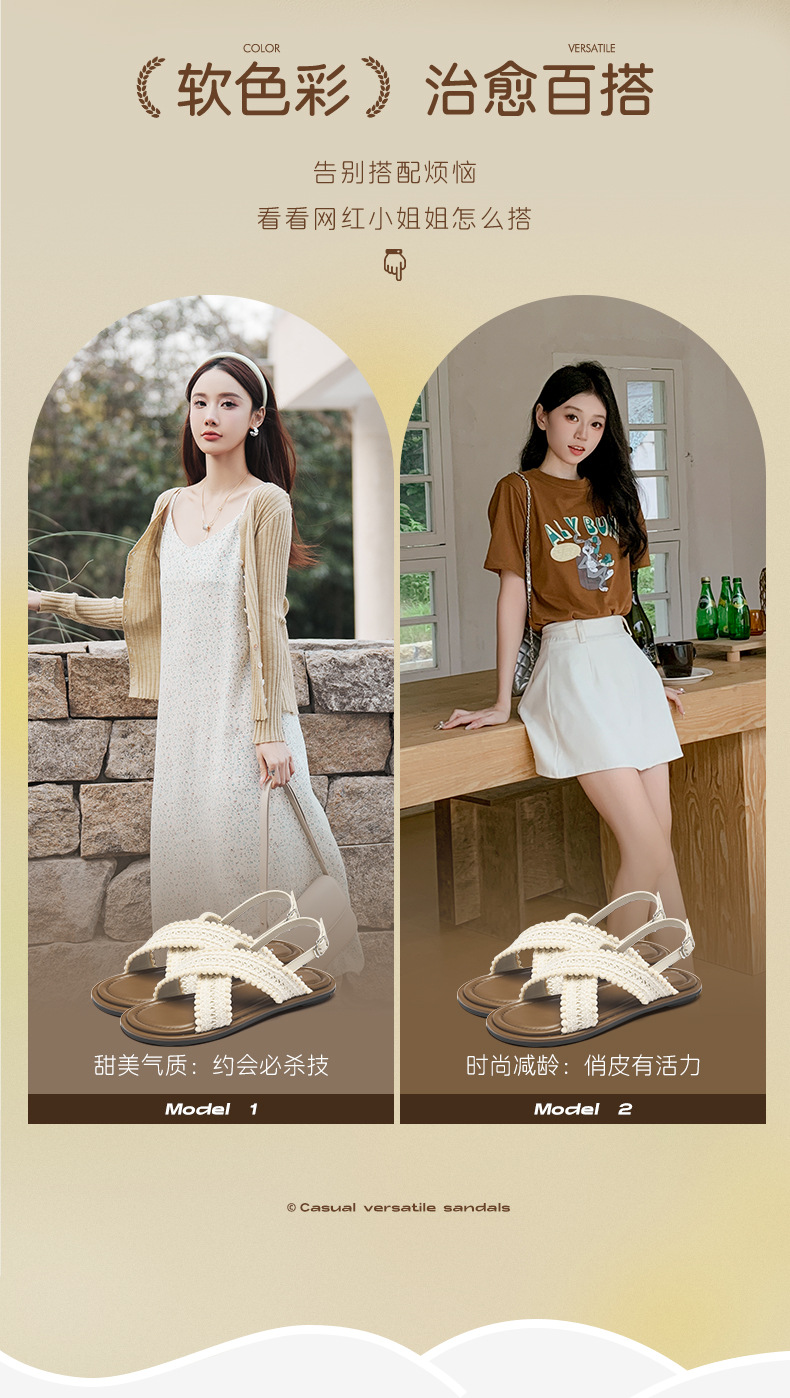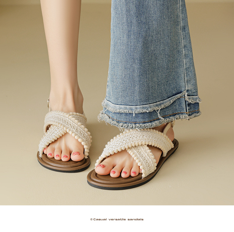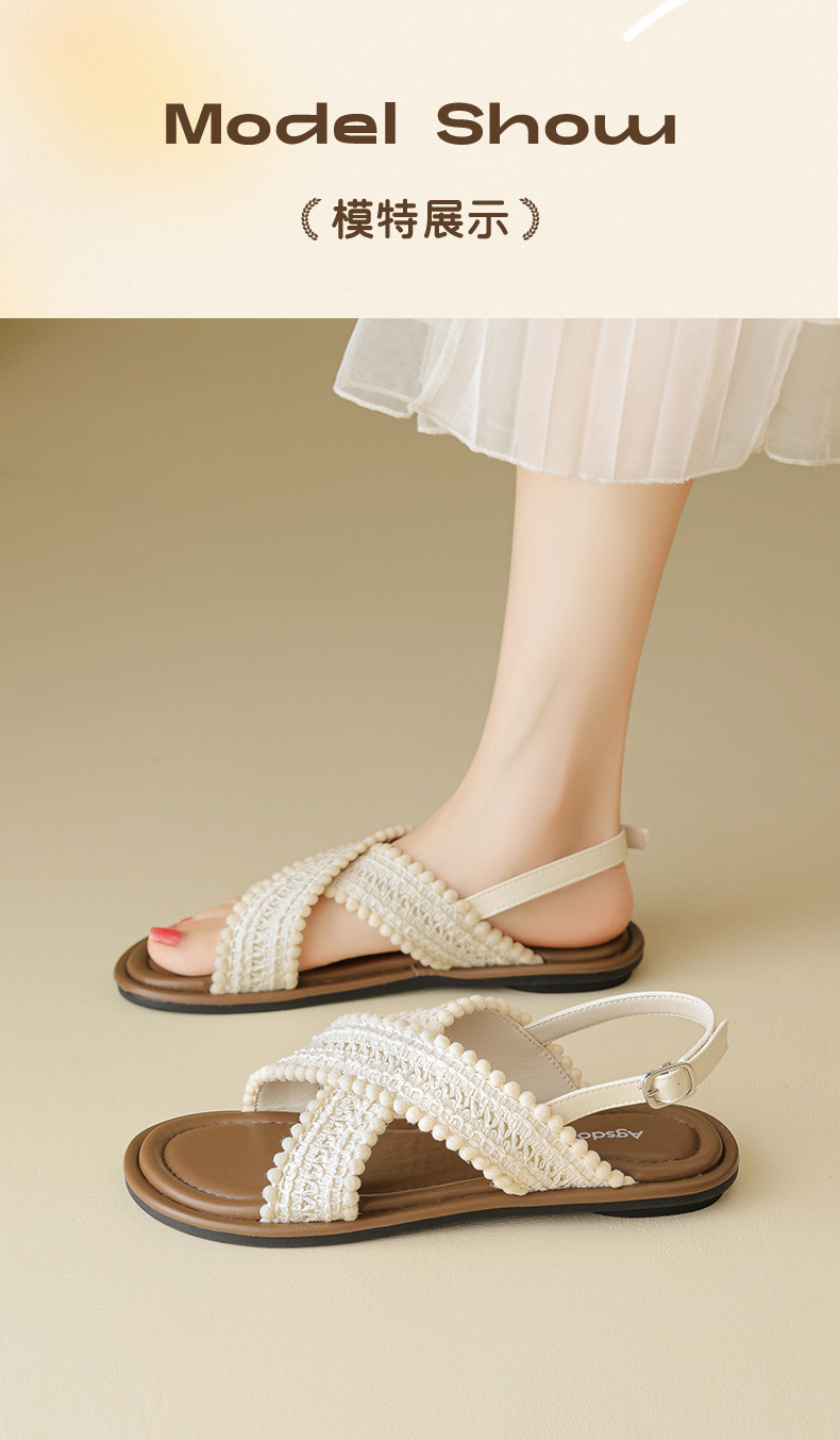 Augustion sandalias planas mujer 2025 nuevo estilo verano con falda sandalias de playa francesa