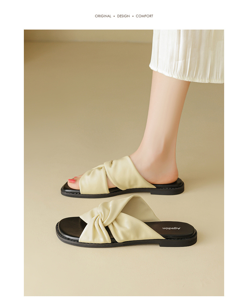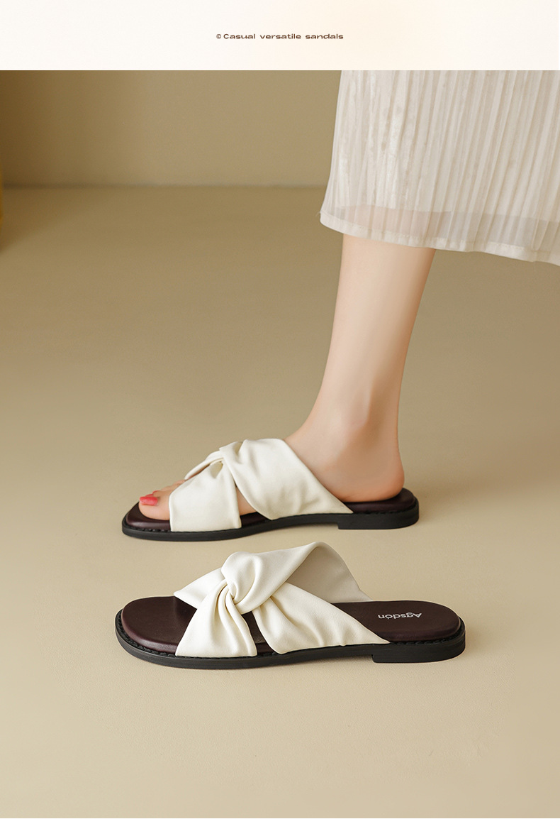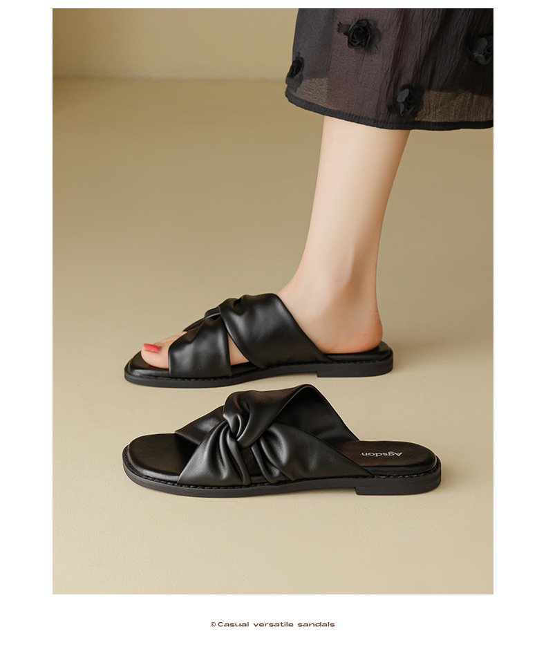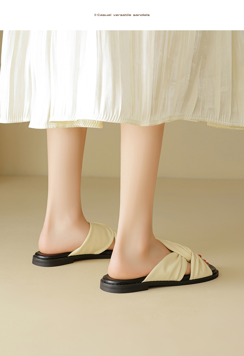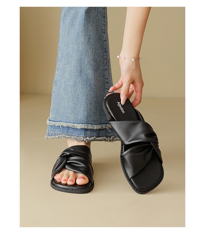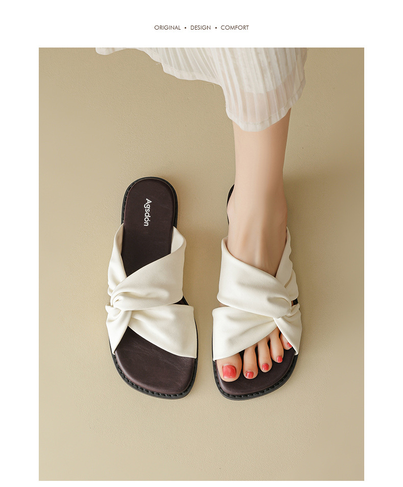 Augustion pantuflas mujeres verano 2025 nuevo estilo francés fondo plano hermoso estilo pequeño fragancia fondo suave sandalias y pantuflas casuales