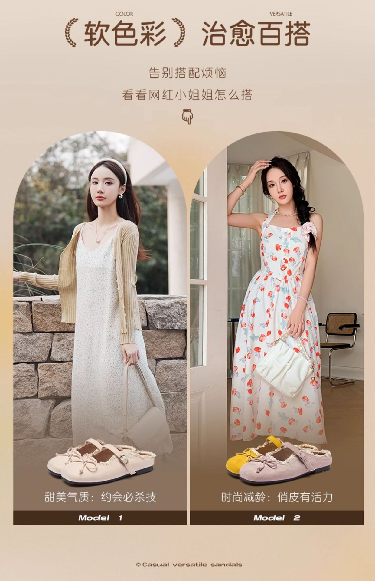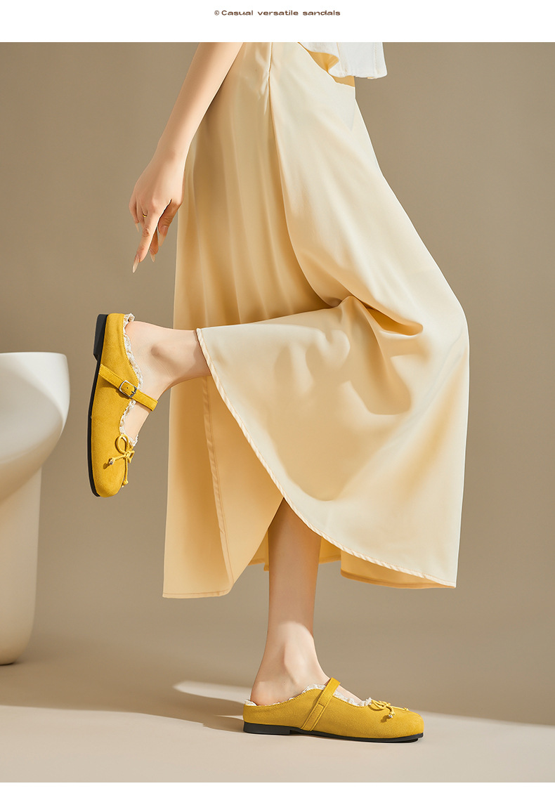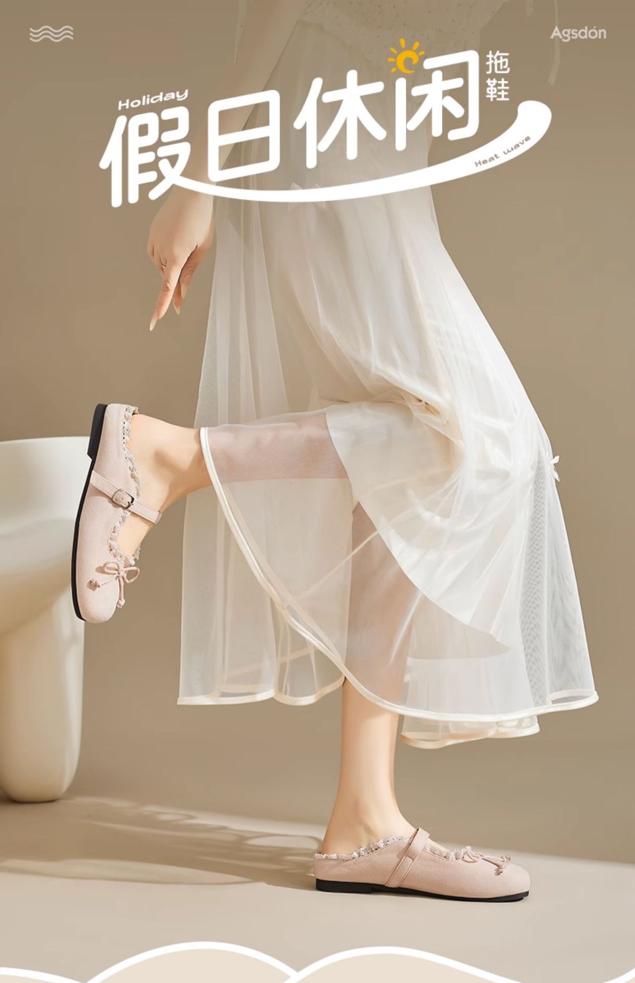 Zapatillas de fondo plano en línea de verano para mujeres 2025, nuevo estilo francés con falda de playa fría