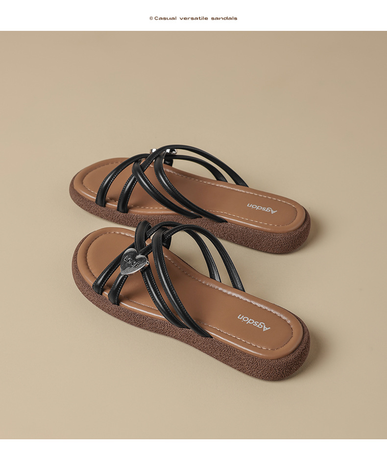 Sandalias planas romanas de verano 2025 con diseño de espiga negra y puntera abierta para mujer, transpirables, estilo INS