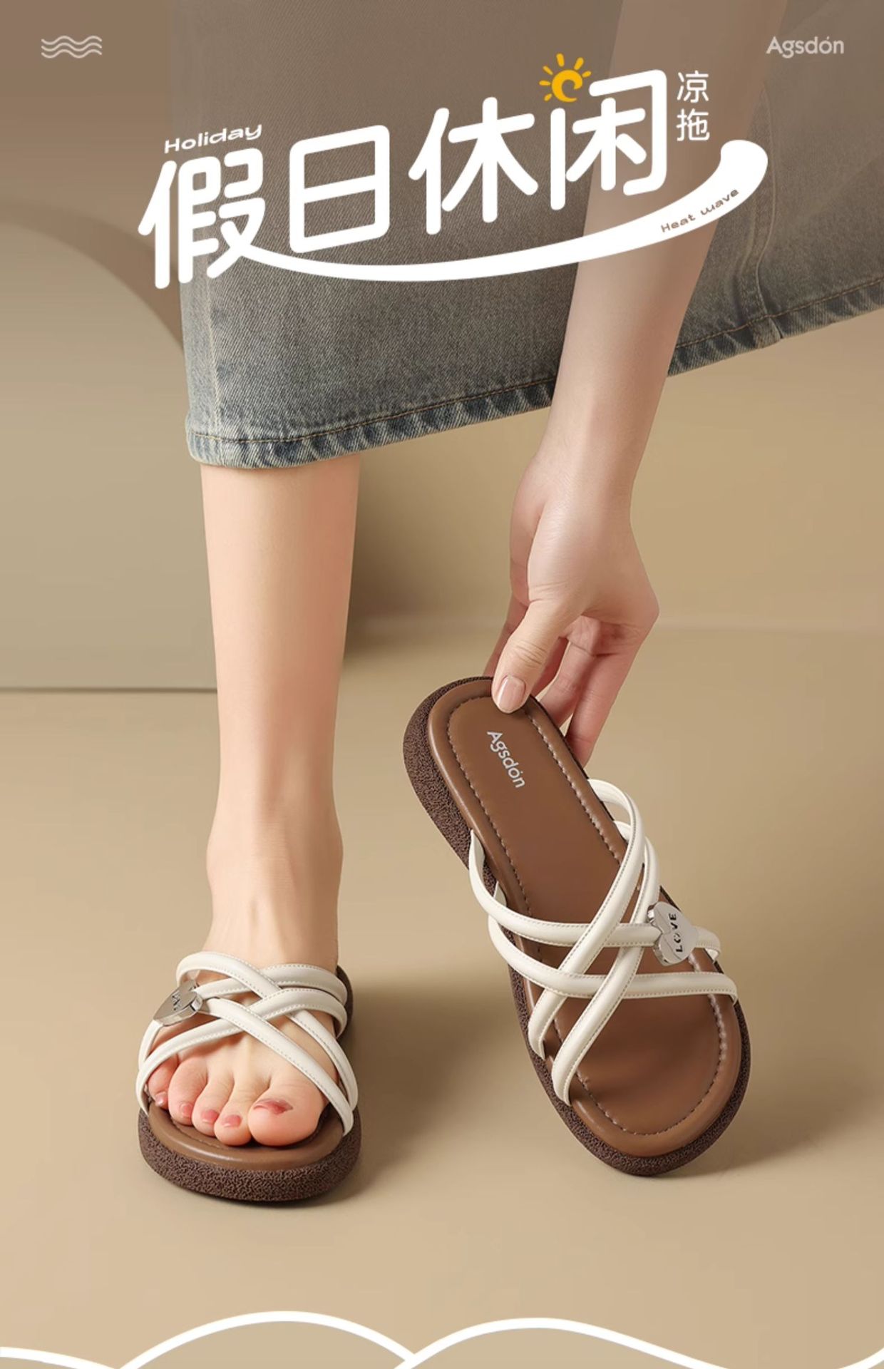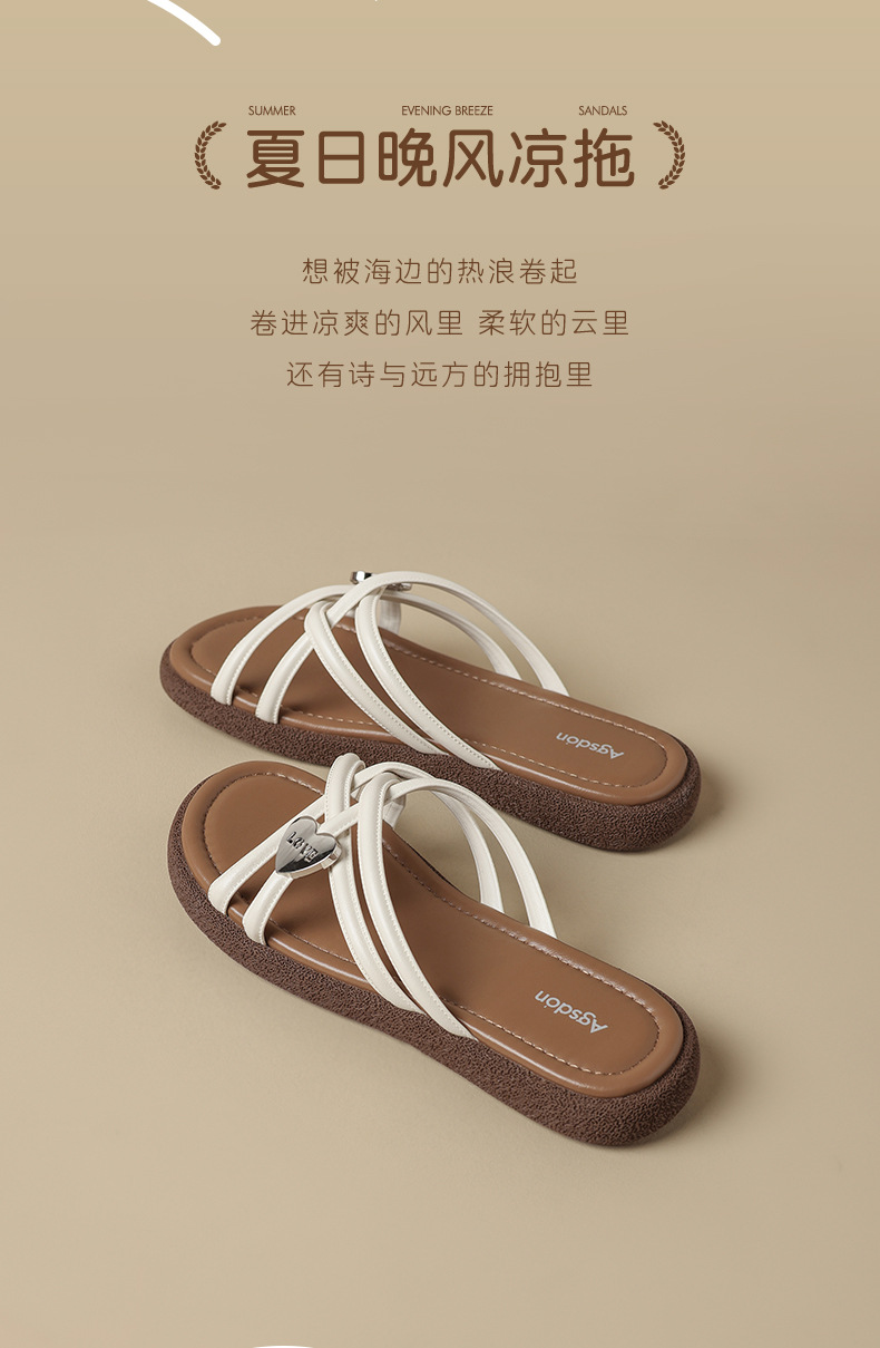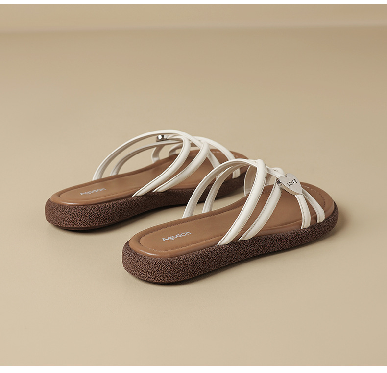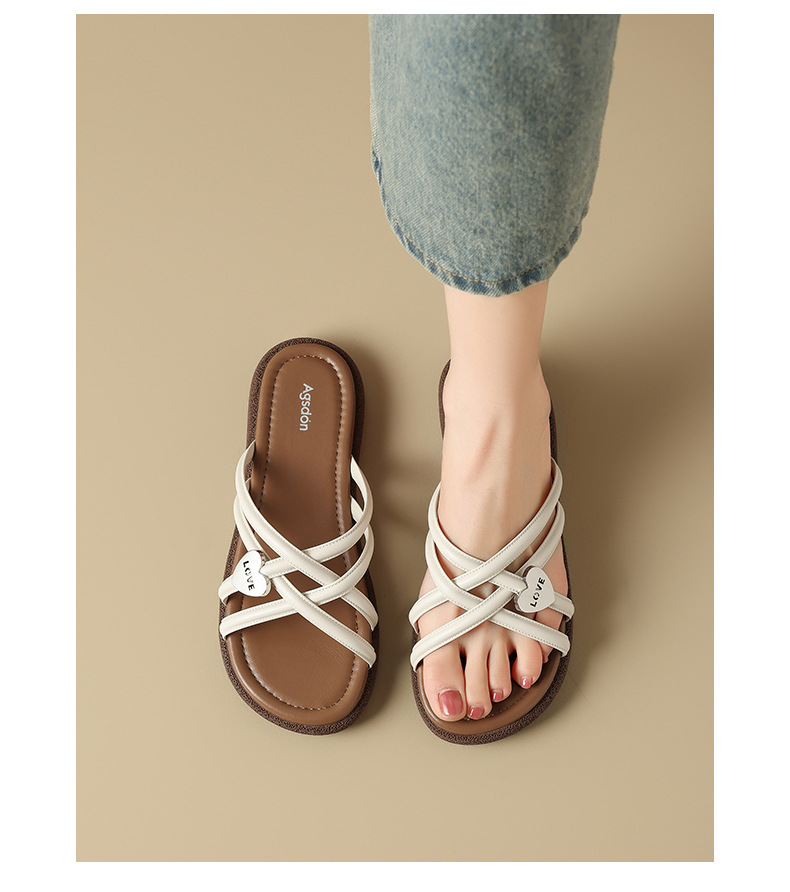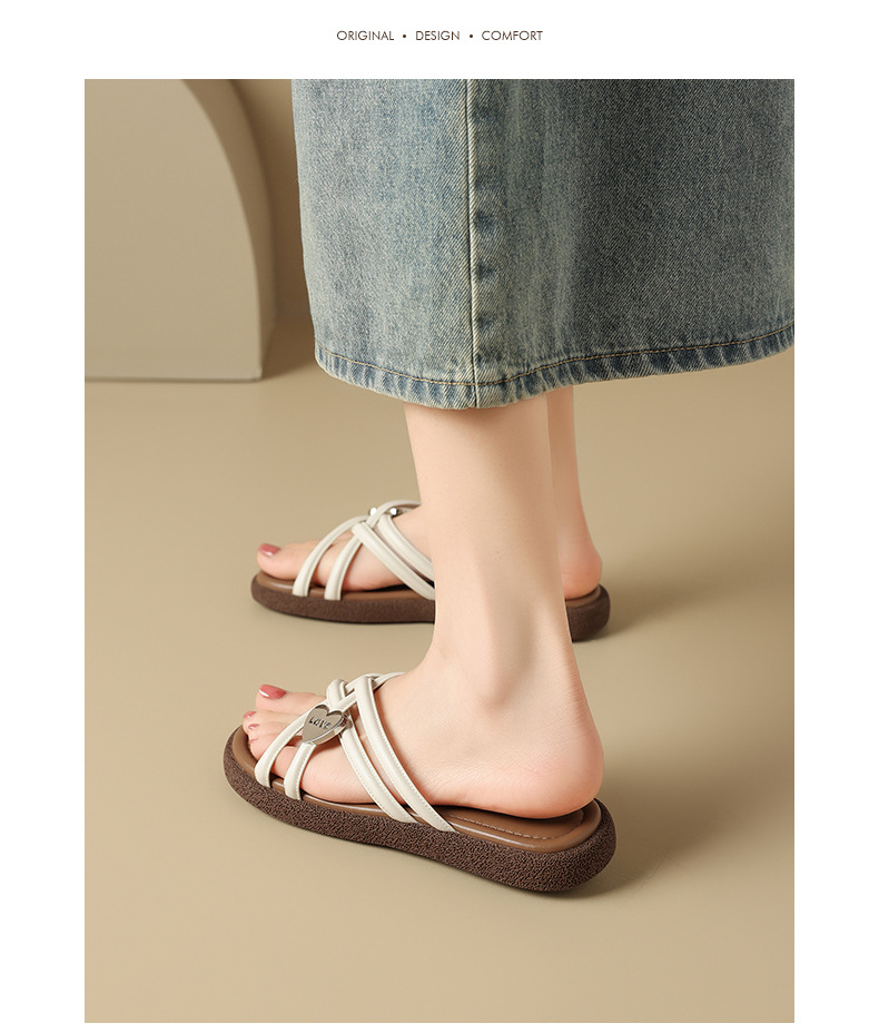 Comercio exterior TB hogar 2024 zapatillas planas huecas desgaste exterior de las mujeres Sandalias de tacón alto de moda Zapatos de una sola capa de piel de oveja alta de una línea