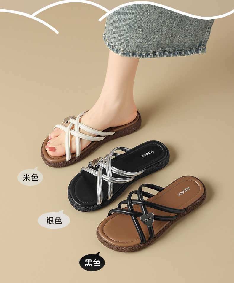 2025 verano nuevo estilo temperamento de cuero pequeño fragancia rombo hebilla de metal fondo plano con sandalias casuales de punta abierta mujer