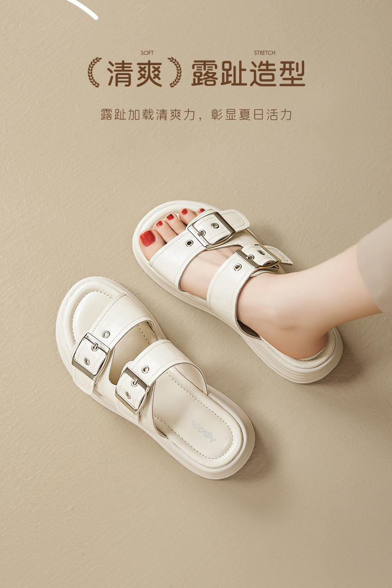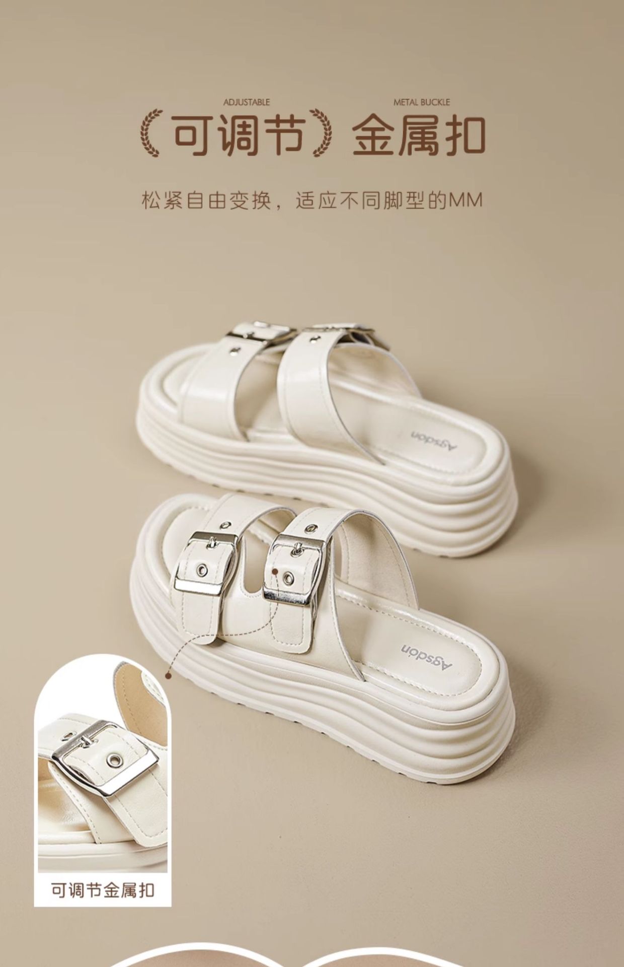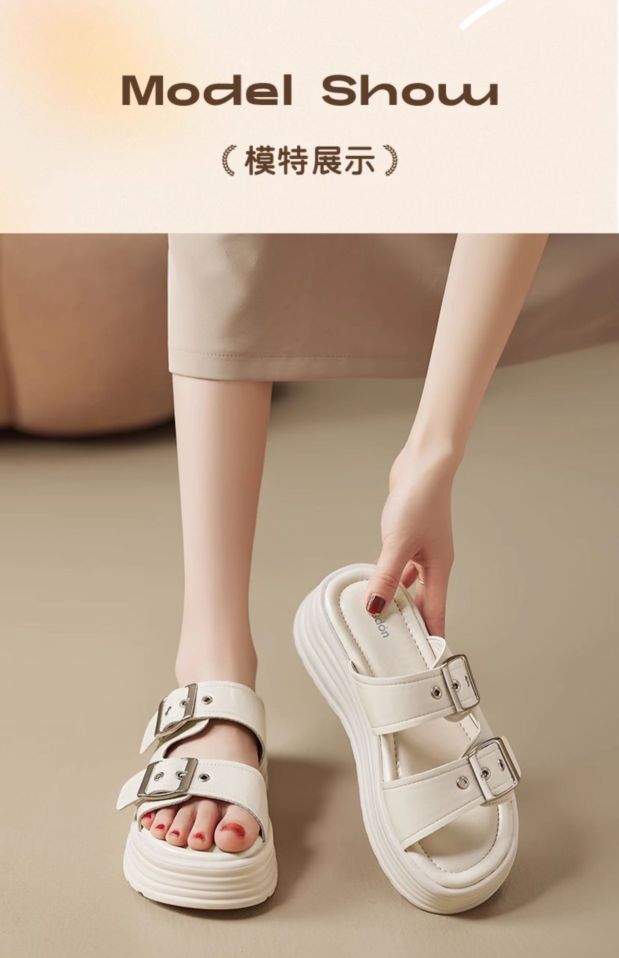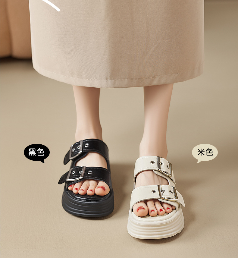 Augustion zapatillas de suela gruesa para mujer en verano 2025 nuevo estilo casual bizcocho playa de fondo suave con falda sandalias
