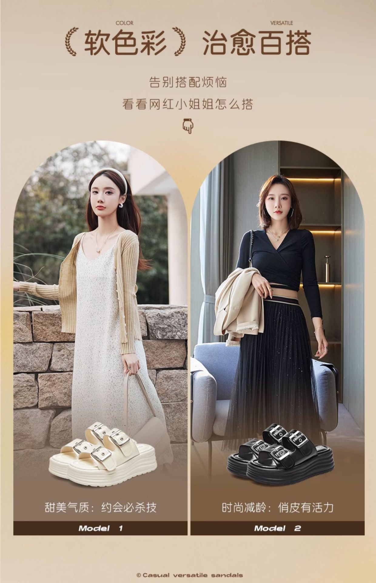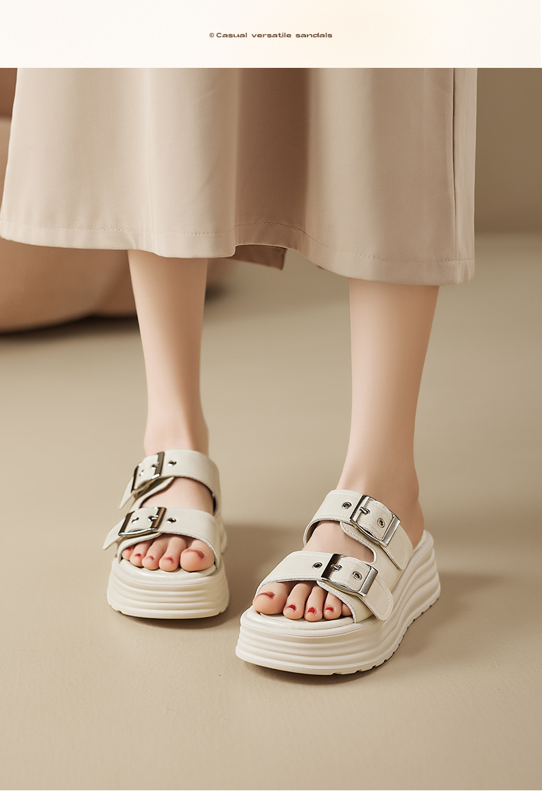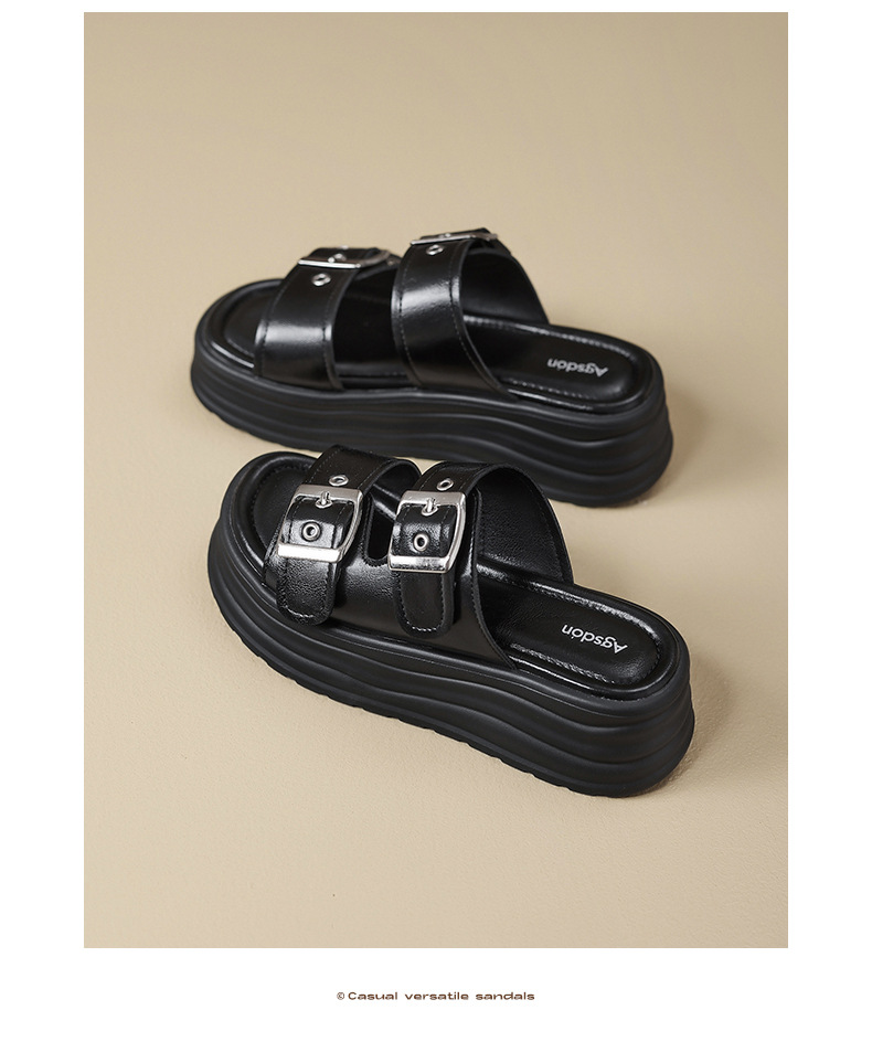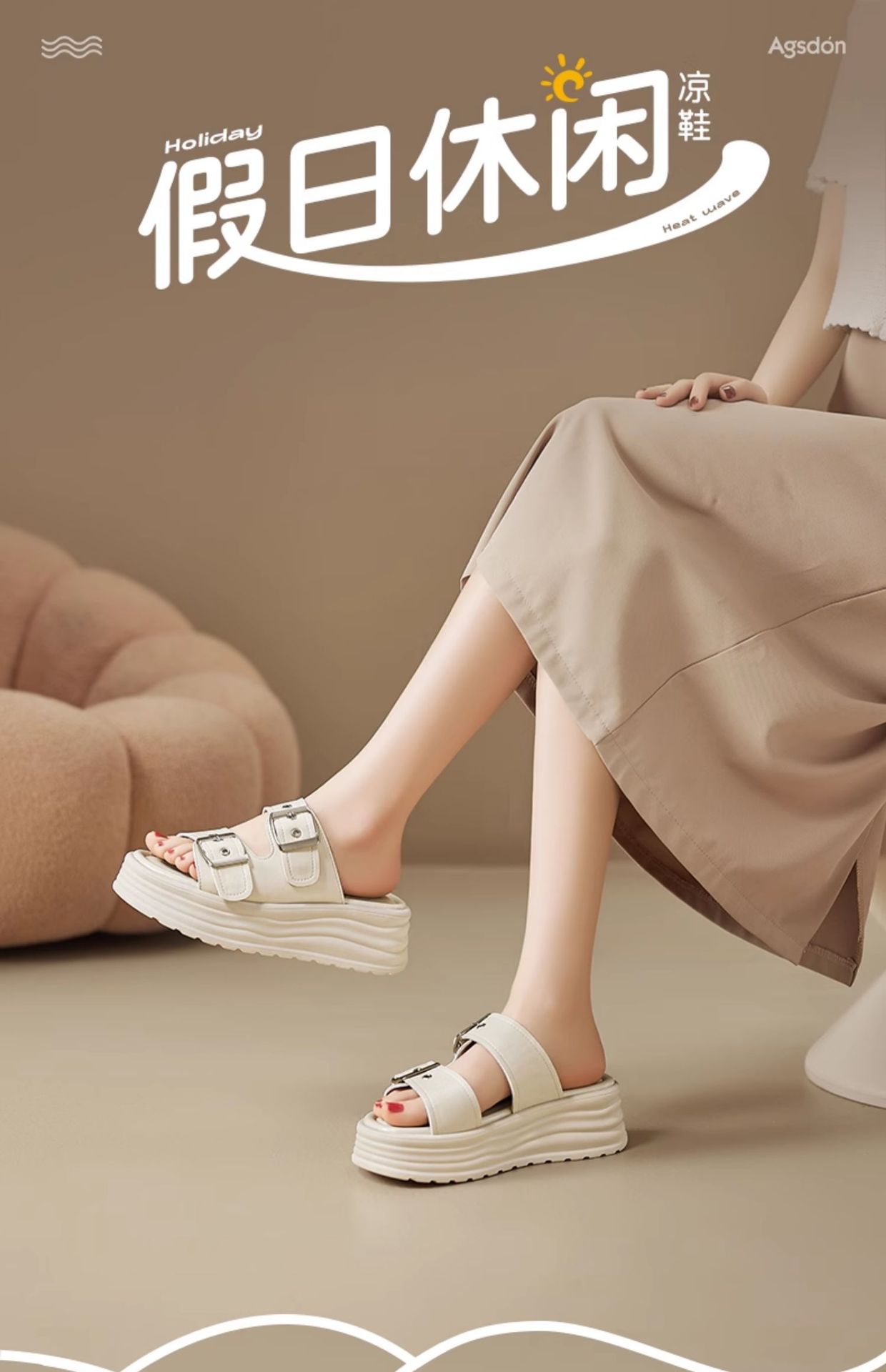 Augustion zapatillas de suela gruesa para mujer en verano 2025 nuevo estilo casual bizcocho playa de fondo suave con falda sandalias
