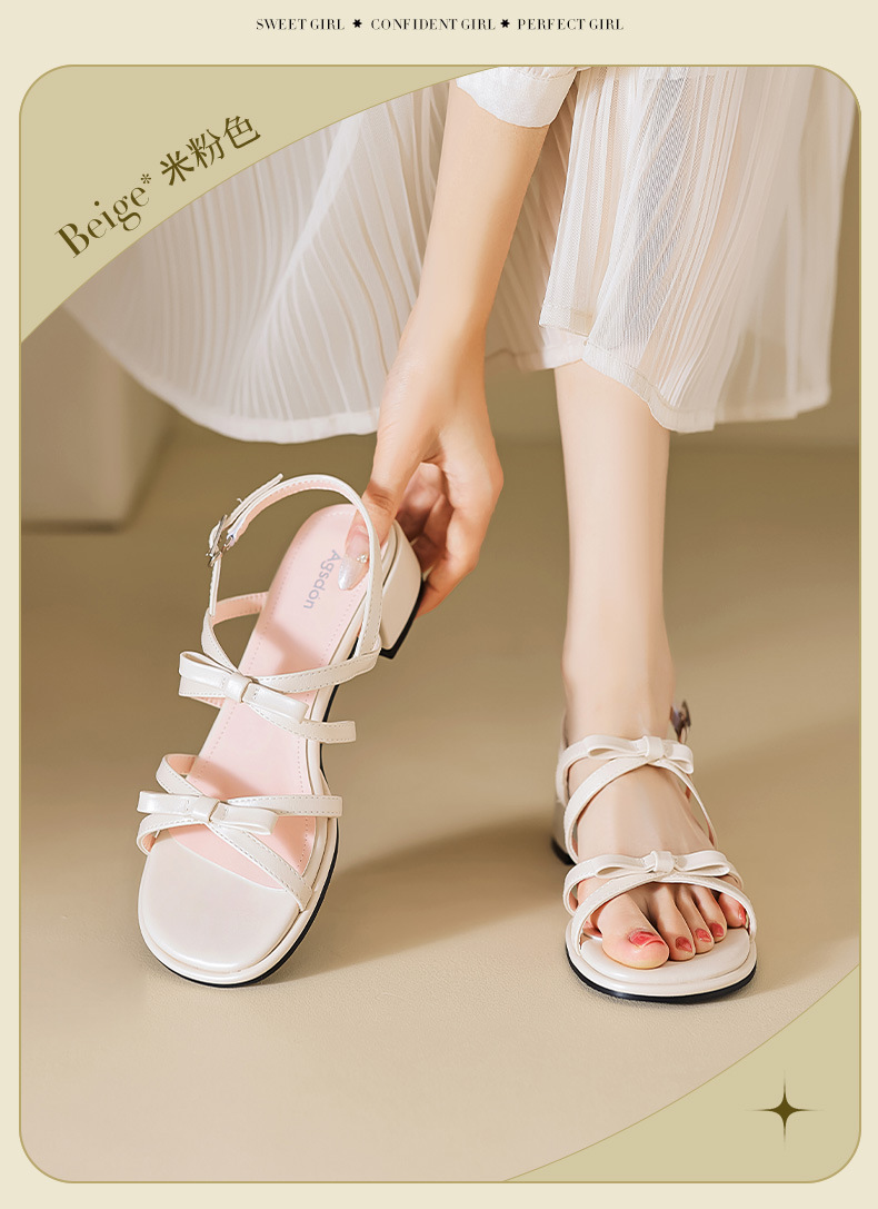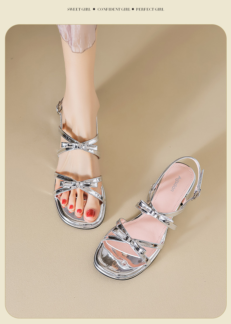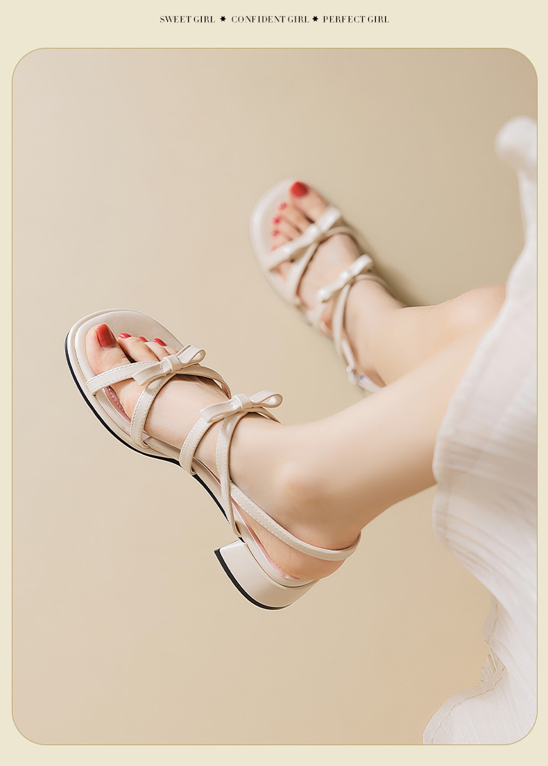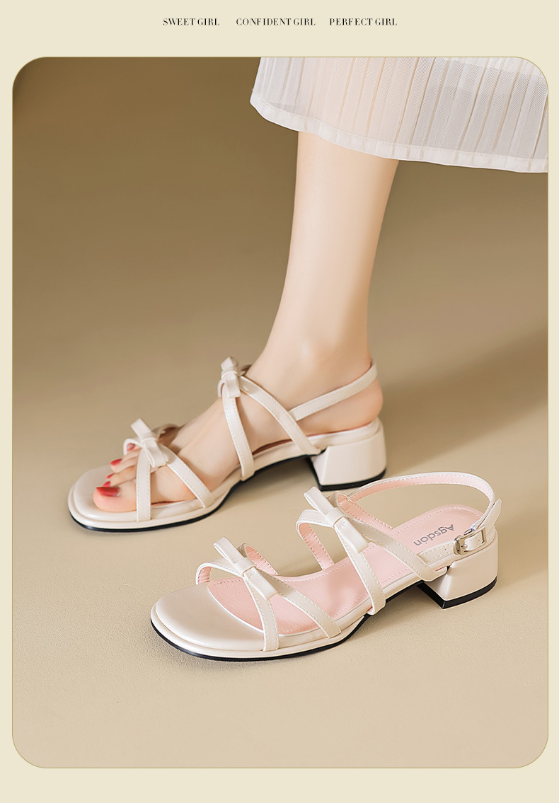 Sandalias de tacón grueso Augu Shiden para mujer, nuevo estilo francés de verano 2025, adecuadas para usar con faldas, zapatos individuales con lazo estilo hada.