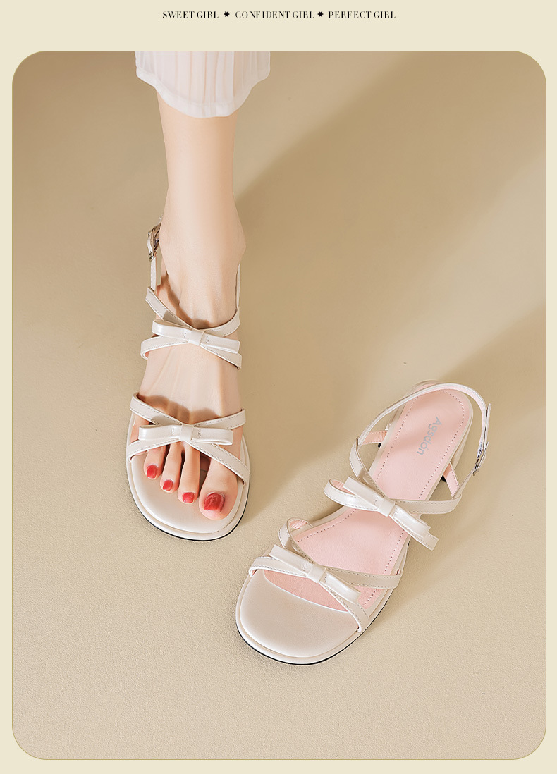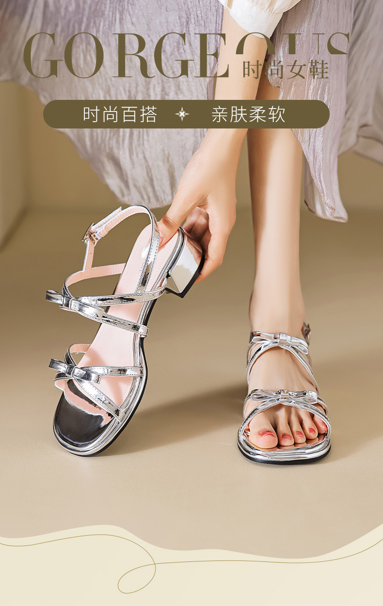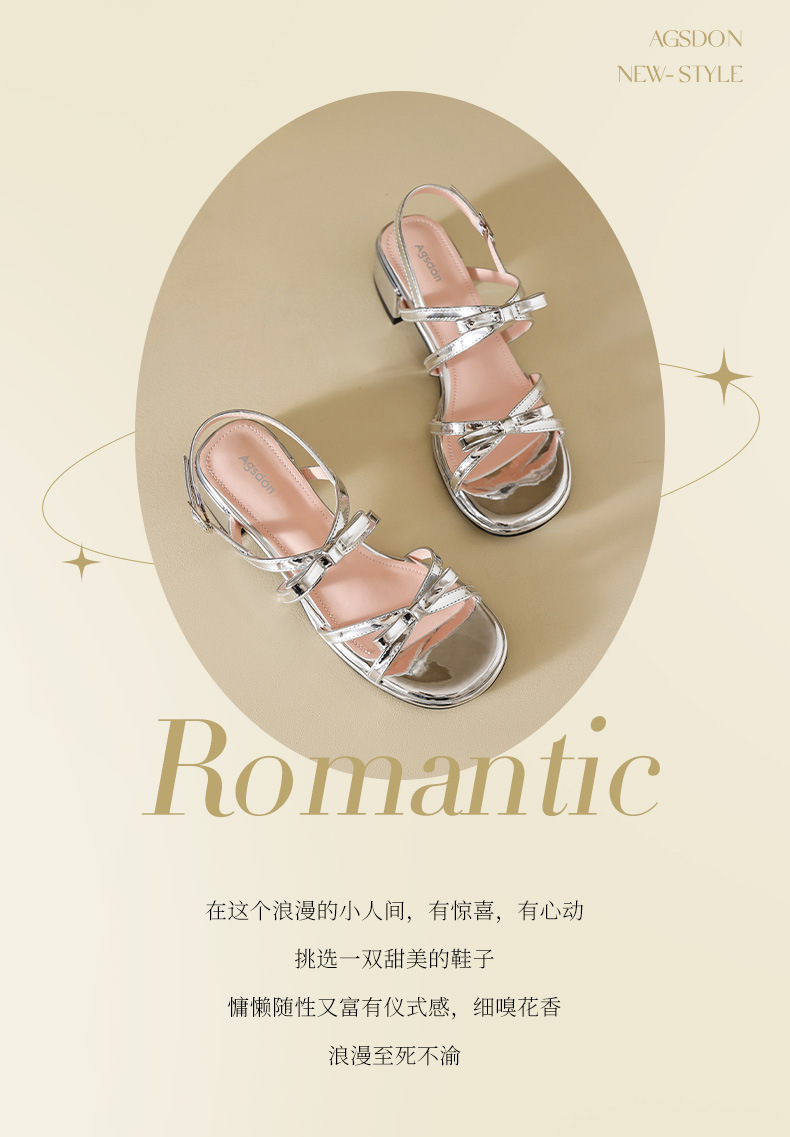 Sandalias de tacón grueso Augu Shiden para mujer, nuevo estilo francés de verano 2025, adecuadas para usar con faldas, zapatos individuales con lazo estilo hada.