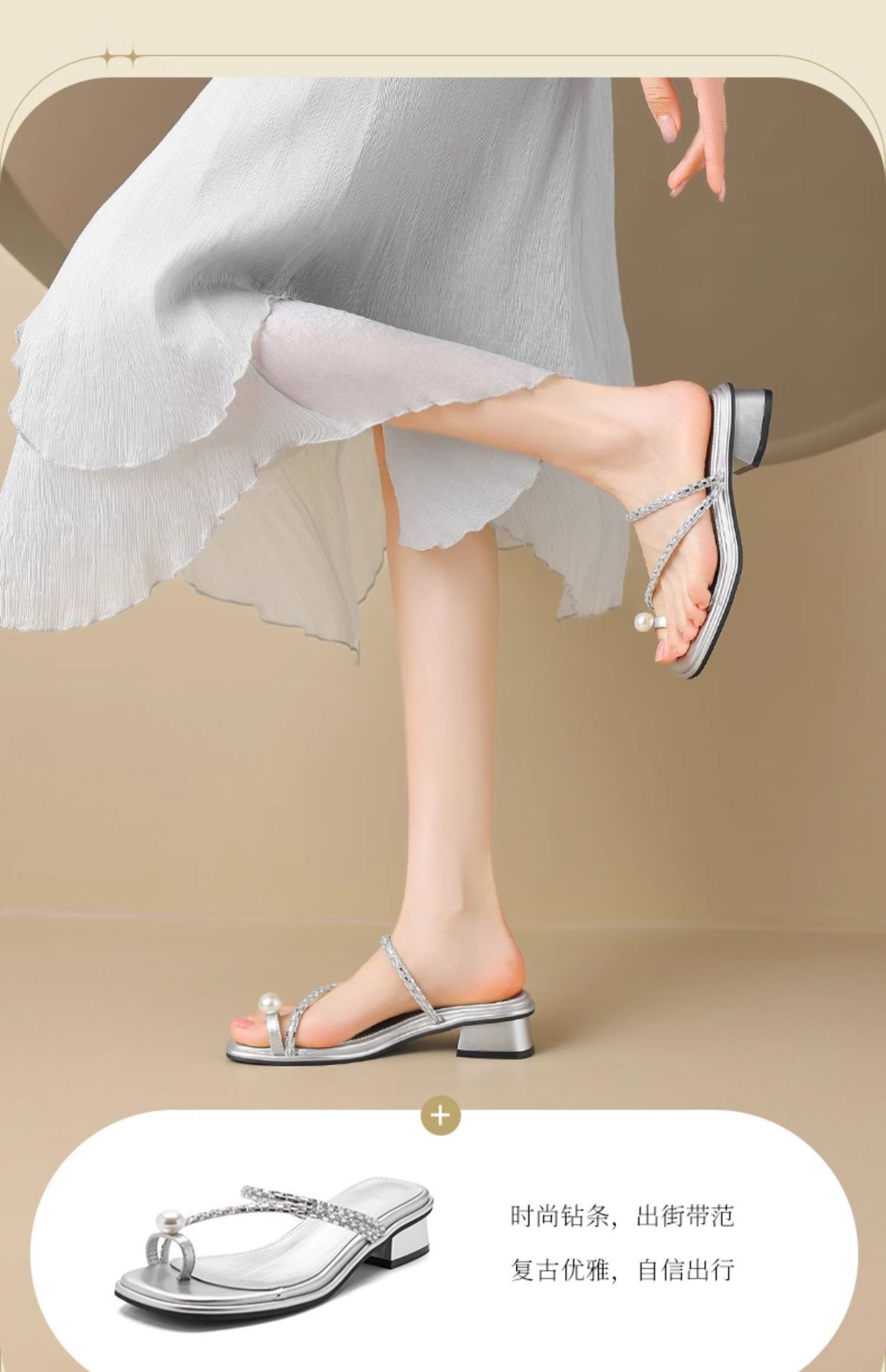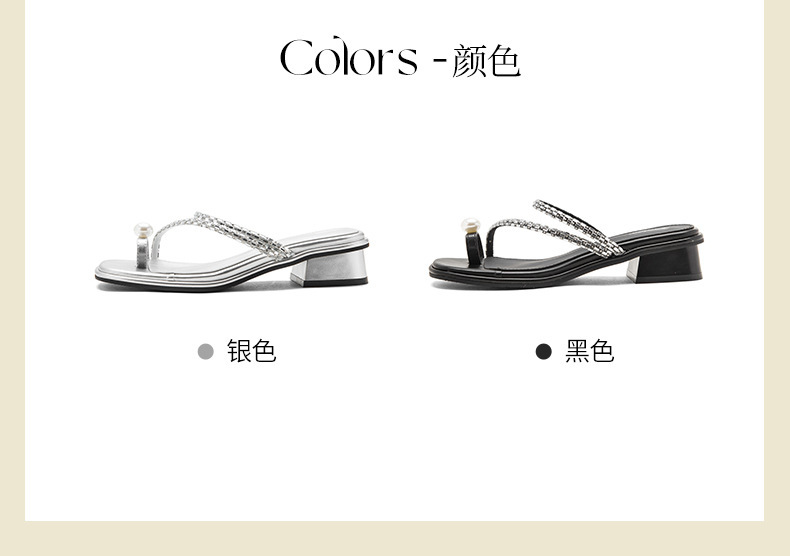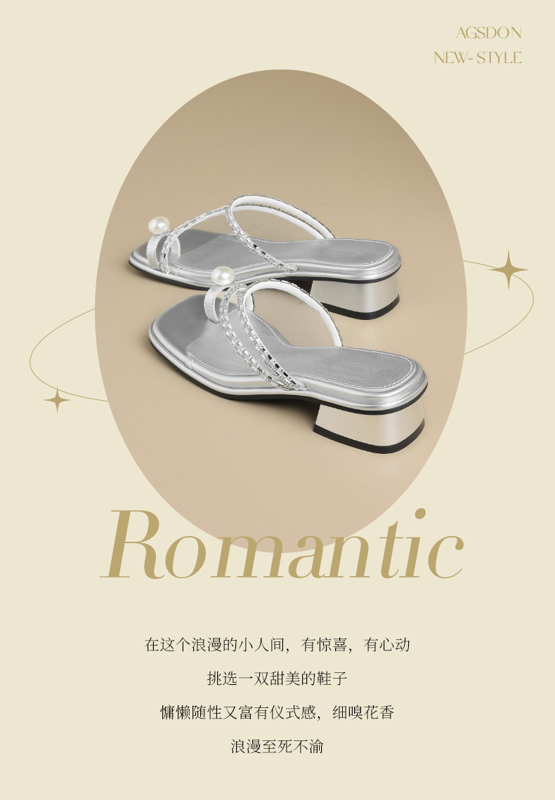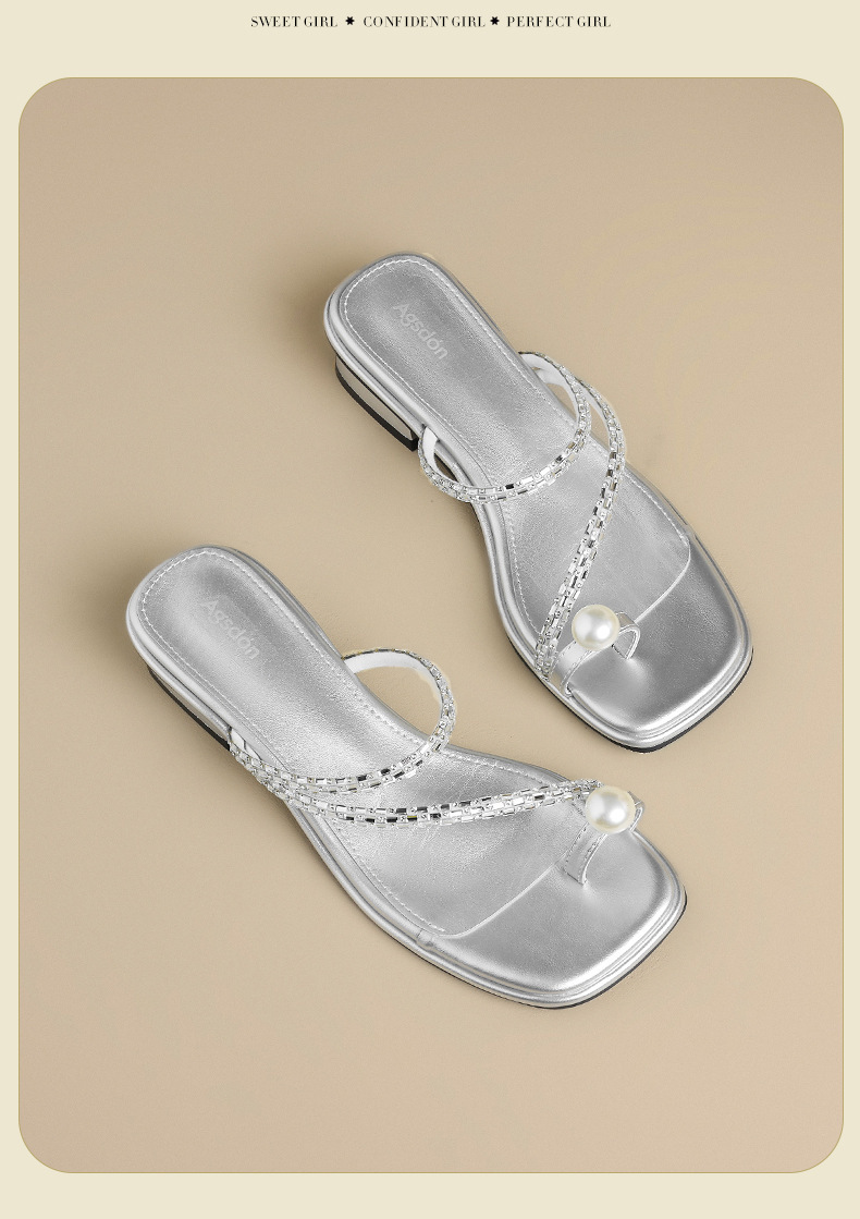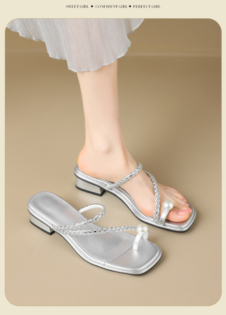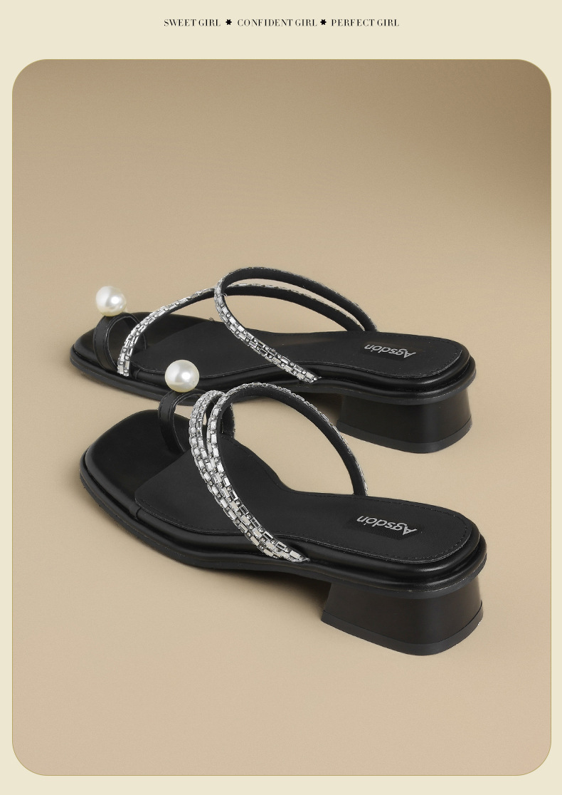Augustion zapatillas de tacón grueso para mujer en verano 2025 nuevo estilo francés con falda sandalias de chanclas de perlas de diamantes de imitación