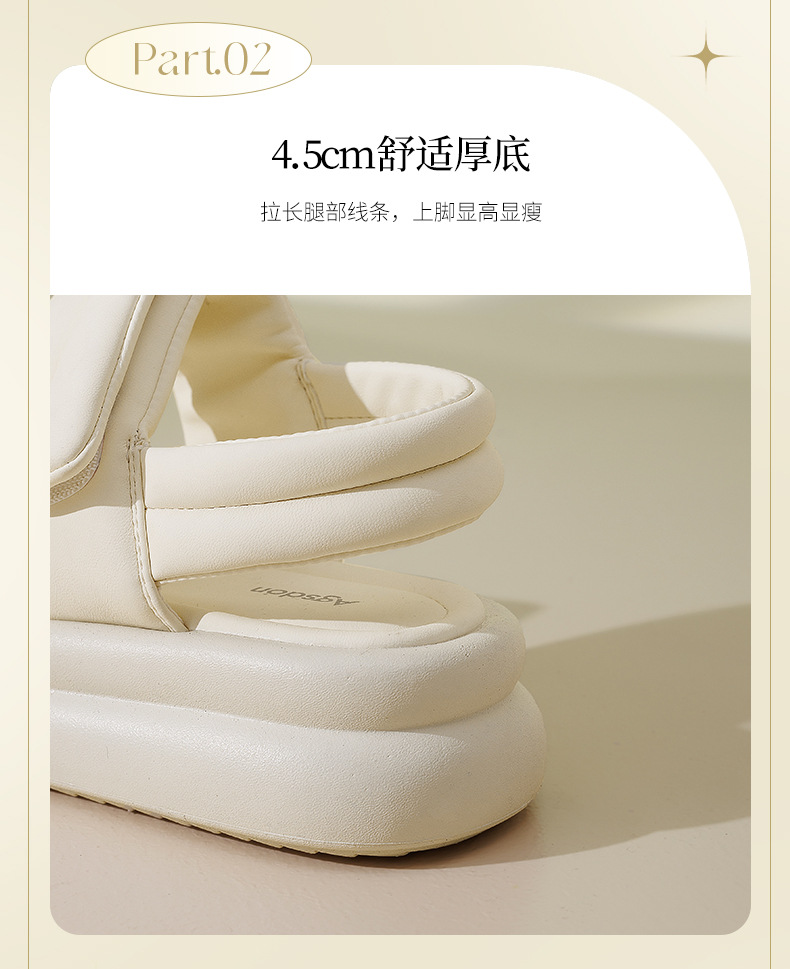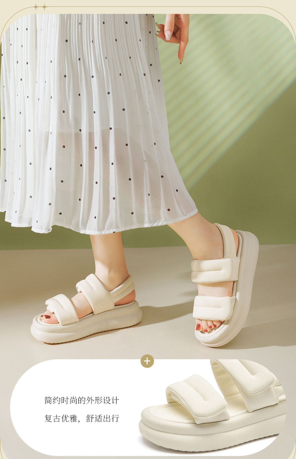 El mismo verano de nubes de Su Yinyin ~ Sandalias de pan de burbuja de plataforma casual con cinturón cruzado de piel de oveja